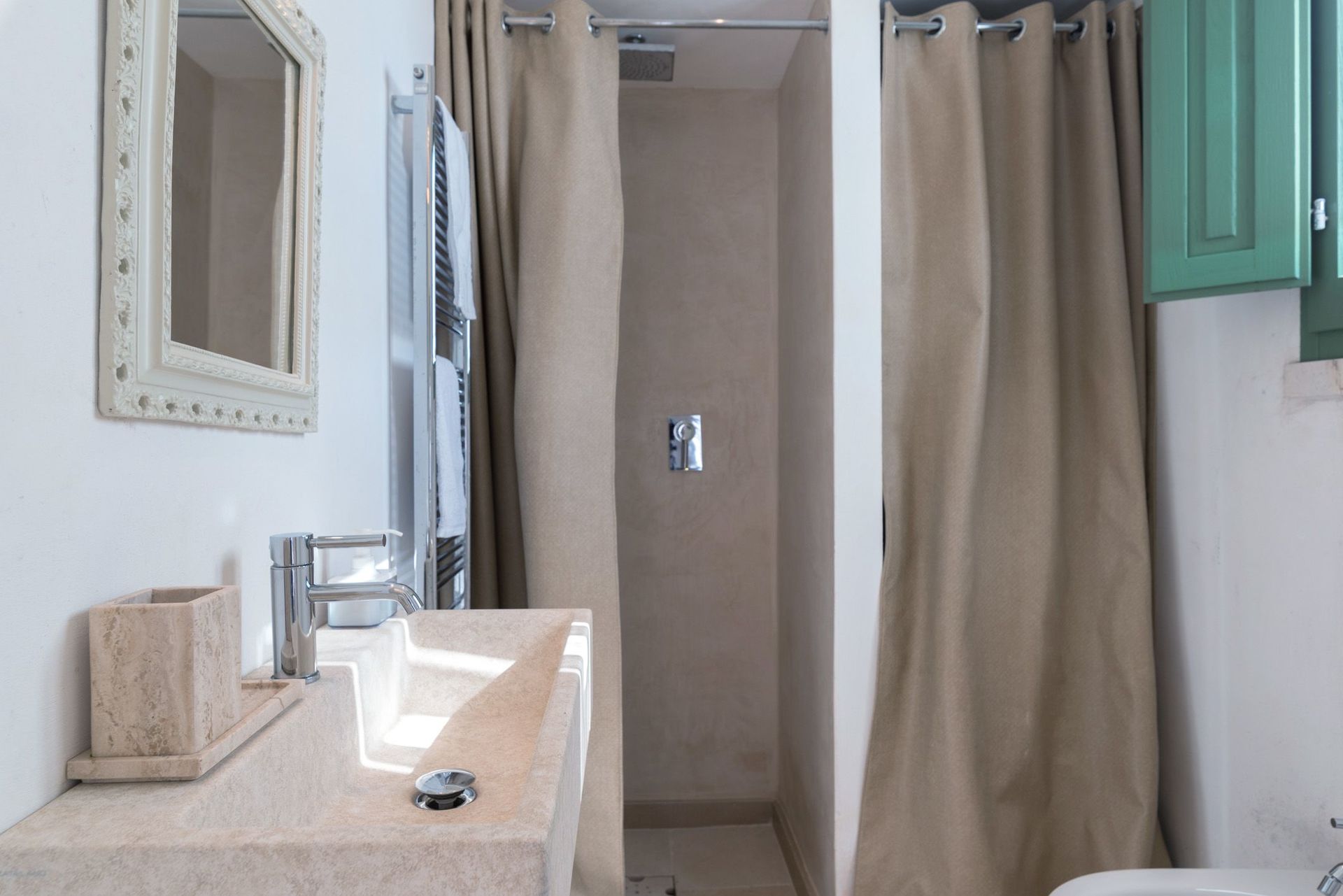 This quaint Trulli attached with access from the outside, has seating for two, small kitchenette with electric two-ringed hob, kettle, and fridge. To the left there is a fantastic bathroom, with sink bidet and walk in shower, which is big enough for two, seating in the shower, and lighting under the stone archway ensures you can relax fully during your stay. Modern, with a mix of old, very tastefully done. Every inch has been utilized which makes this Trullo unique. On the same level you go through to the double bedroom with bedside cabinets, chest of drawers and conical roof. There is also a shower, and en-suite with sink, bidet and toilet. The third Trulli has an entrance barrel ceilings cream sofa seating for 8 people, with table and chairs for 4/6. Open fireplace with kitchen Microwave and gas hob extractor fan stone sink. Kitchen shelving and fridge. On the left, there is a bathroom with bidet shower and curtain. Down two steps to a double bedroom, with drawers, open area for clothes, which is designed to utilize all the space, with every arch featuring ether storage or shelves. Beautiful ceilings throughout. This part of the Trullo has a modern feel, with featured fireplace, table and chairs for 4 people. Small kitchen to the right with Fridge Freezer marble sink oven 2 hob stove - portable. Through to the bedroom, with shower with glass doors, double bed with barrel ceiling. Good sized bathroom, sink, and bidet, very light and bright. This room opens up onto the gardens and pool. The next room has patio doors and accessed from the garden.