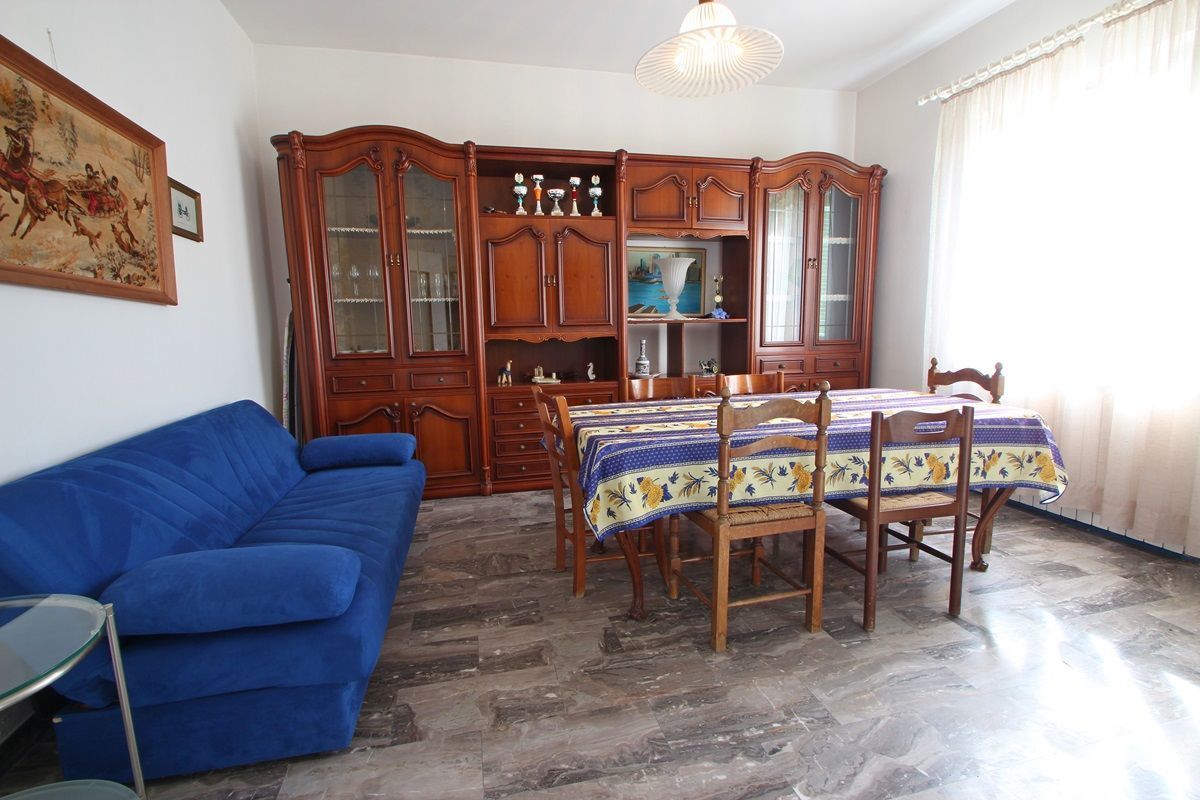Living room with sofa bed for two people, dining table and TV with Italian and foreign channels.