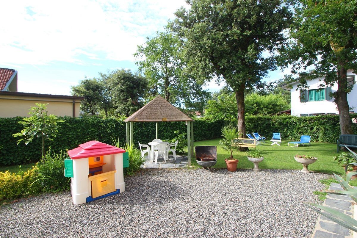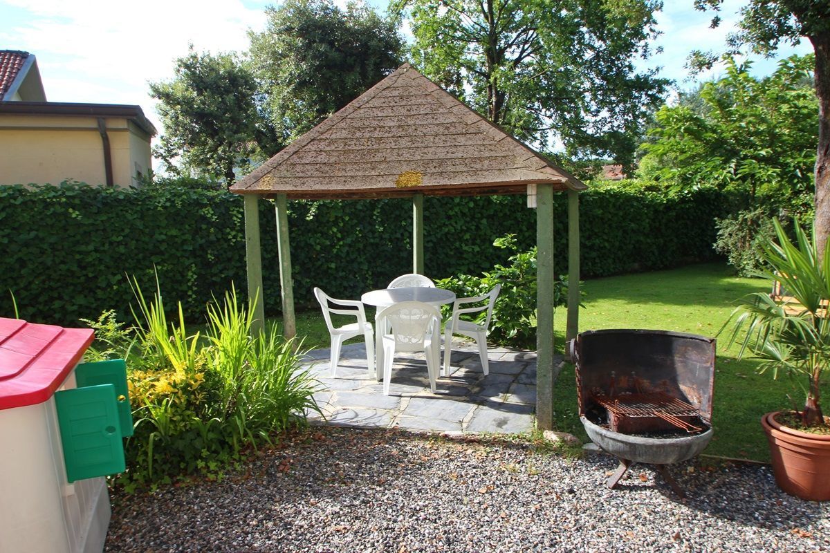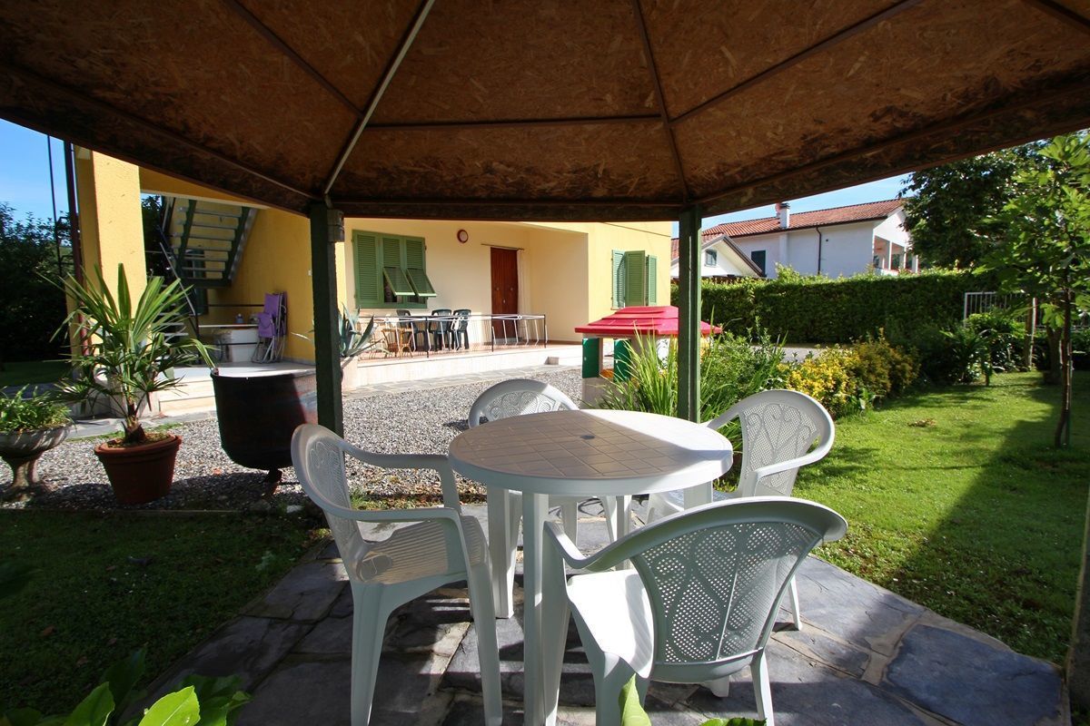 The entire garden, about 500 square meters, which surrounds the house is completely available for both apartments and includes a gazebo with seating and table, barbecue, sunbeds and deck chairs.