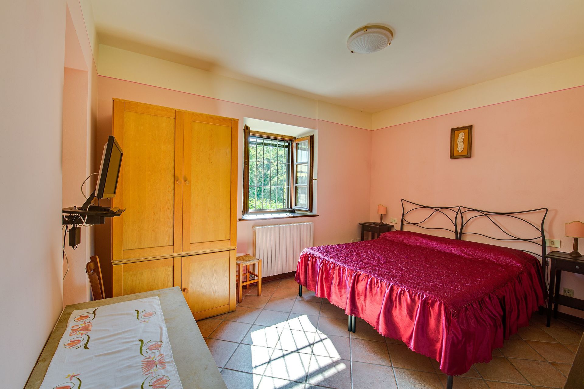 Når I ankommer, vil I blive modtaget af ejeren eller repræsentanten og I vil finde en skøn ren og velholdt ejendom perfekt til en fredelig ferie i Toscana. Til jeres store nydelse vil I finde en privat have, hvor I kan slappe af og nyde en kold drik efter en hektisk dag med museumsbesøg.Den store gevinst ved at leje en feriebolig i stedet for flere hotelværelser er muligheden for at slappe af med familie og venner efter en travl dag. Nyd en middag sammen akkompagneret med lidt lokal vin for at afslutte dagen. Der er et køkken inkluderet mikroovn og køleskab, samt, , samt masser af service og bestik til op til seks personer.