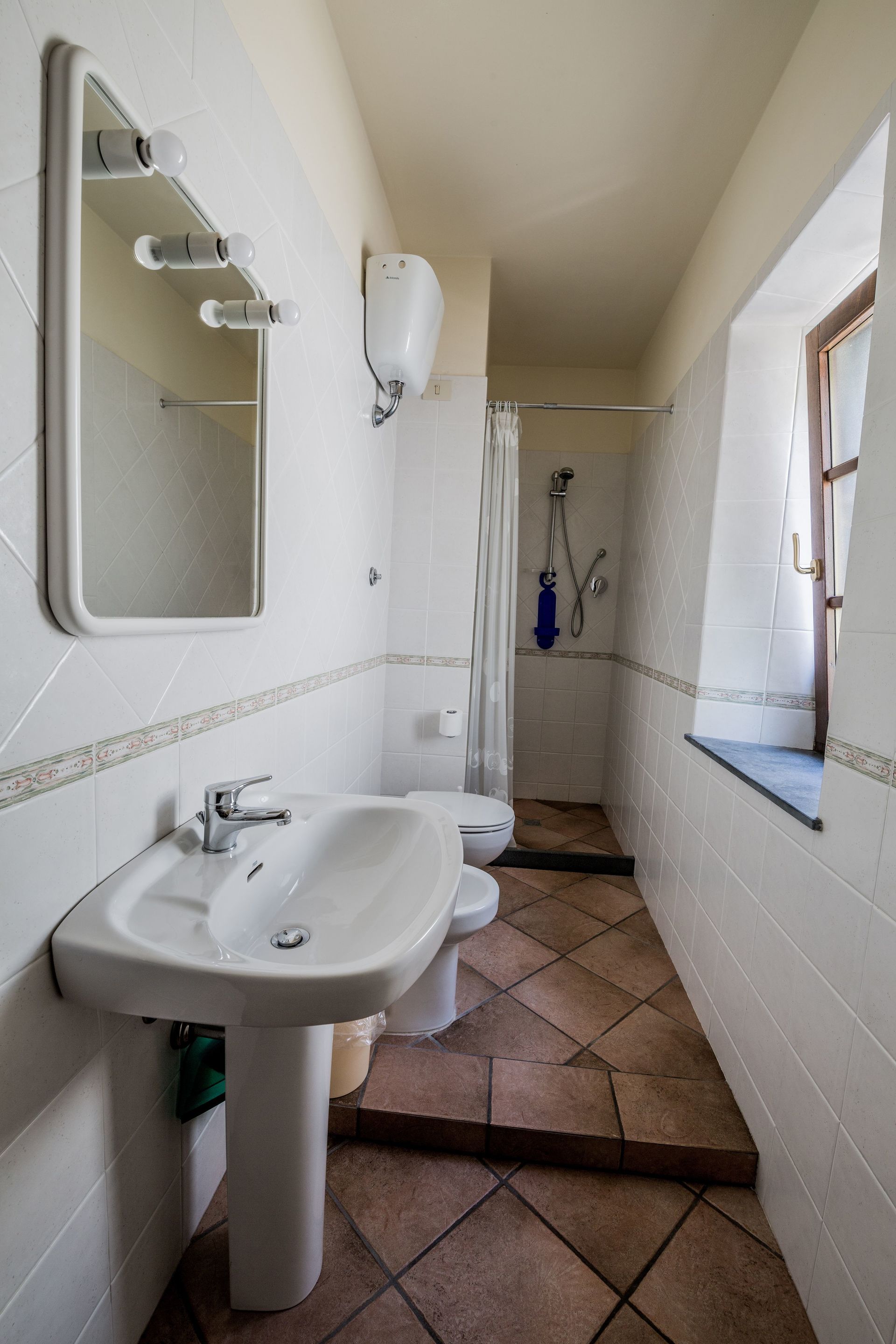 Soveværelse med bad 2: dobbeltseng, WIFI internet, tv, vask, wc, bidet, bruser.