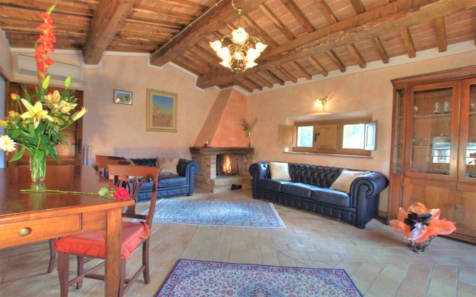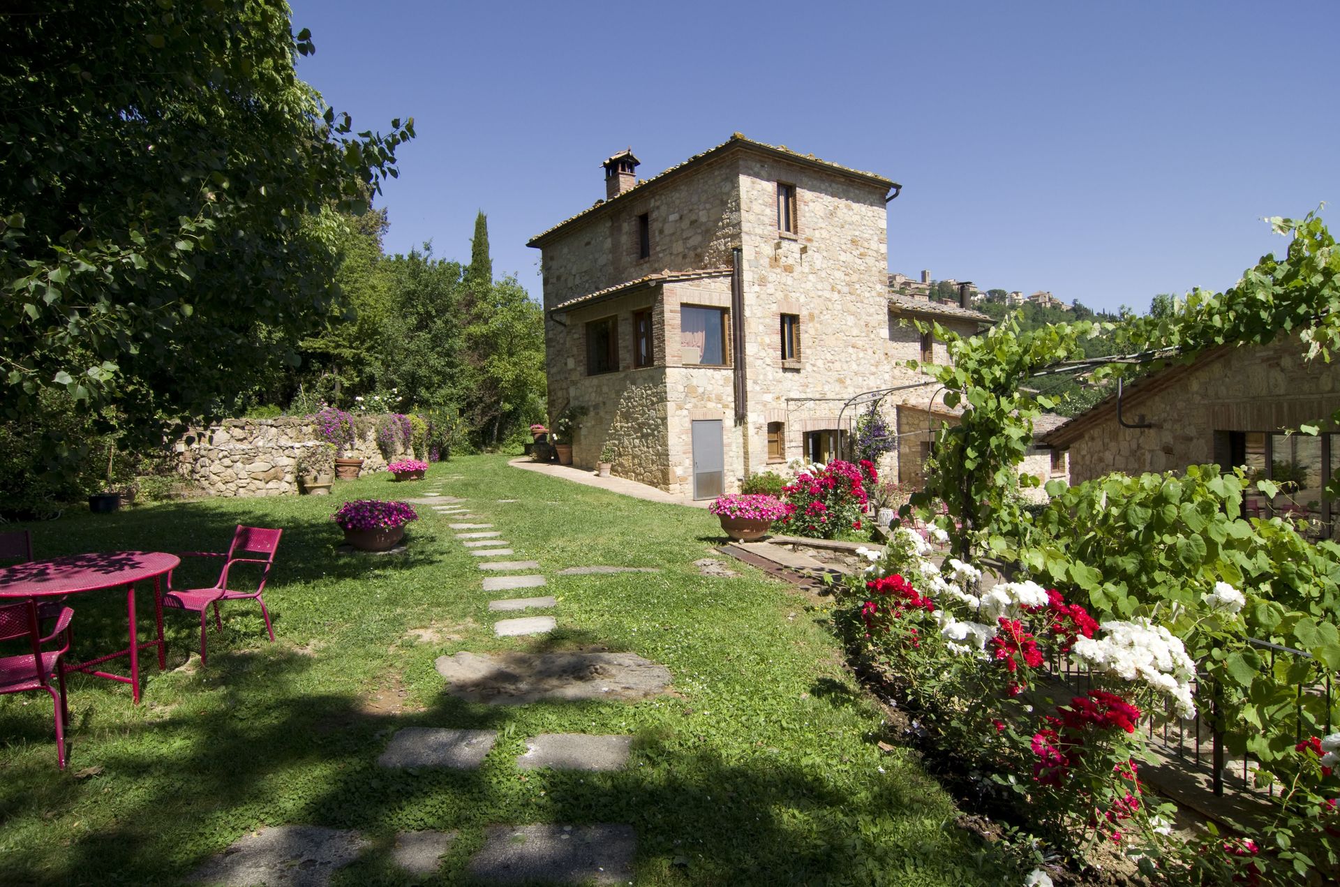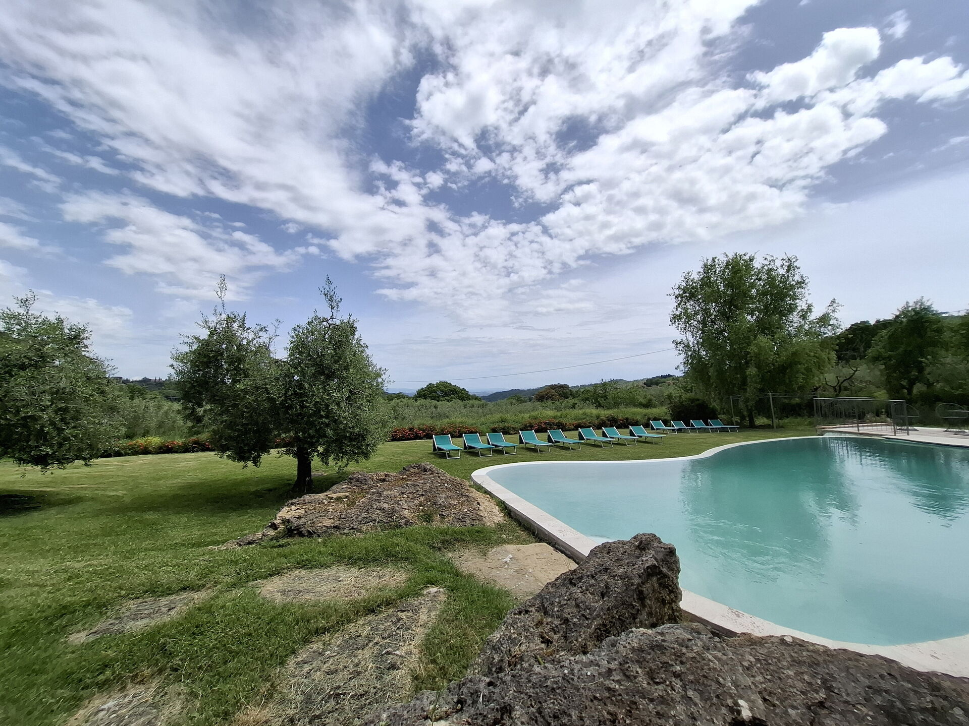 Ved ankomst vil I møde en flot ren velholdt ejendom med udsigt over bakkerne perfekt til rolig ferie i Toscana. Efter en hektisk dag med shopping, er det dejligt at nyde lidt tid med venner og familie ved kanten af poolen med et glas vin - det er en perfekt måde at slappe af på sidst på dagen. Udenfor vil I finde gårdhave og grill. Hvis I nyder at lave mad til familie og venner så er der et veludstyret køkken inkluderet kaffemaskine, mikroovn, brødrister, komfur og køleskab, samt, , samt masser af service og bestik til op til 14 personer.