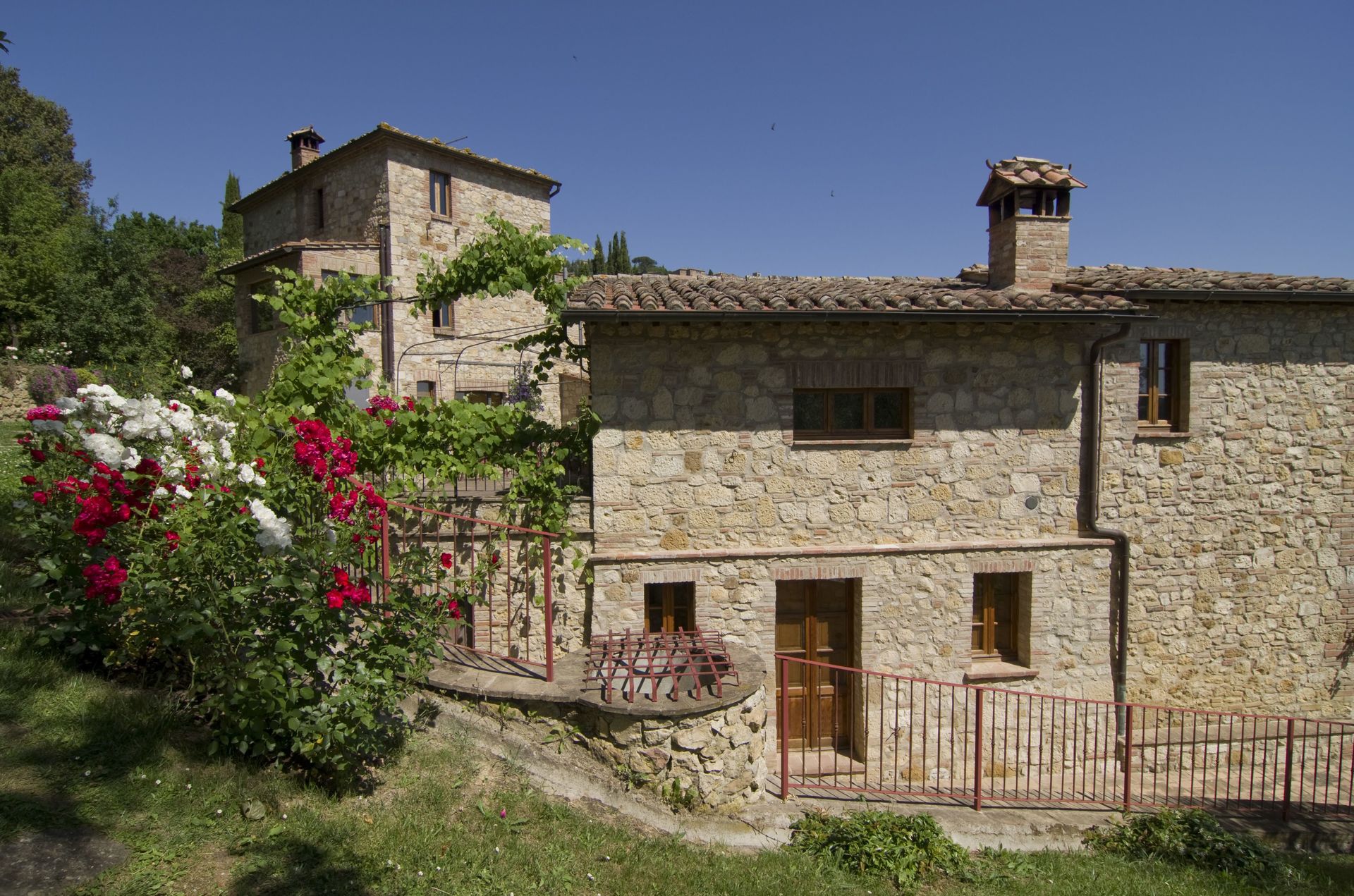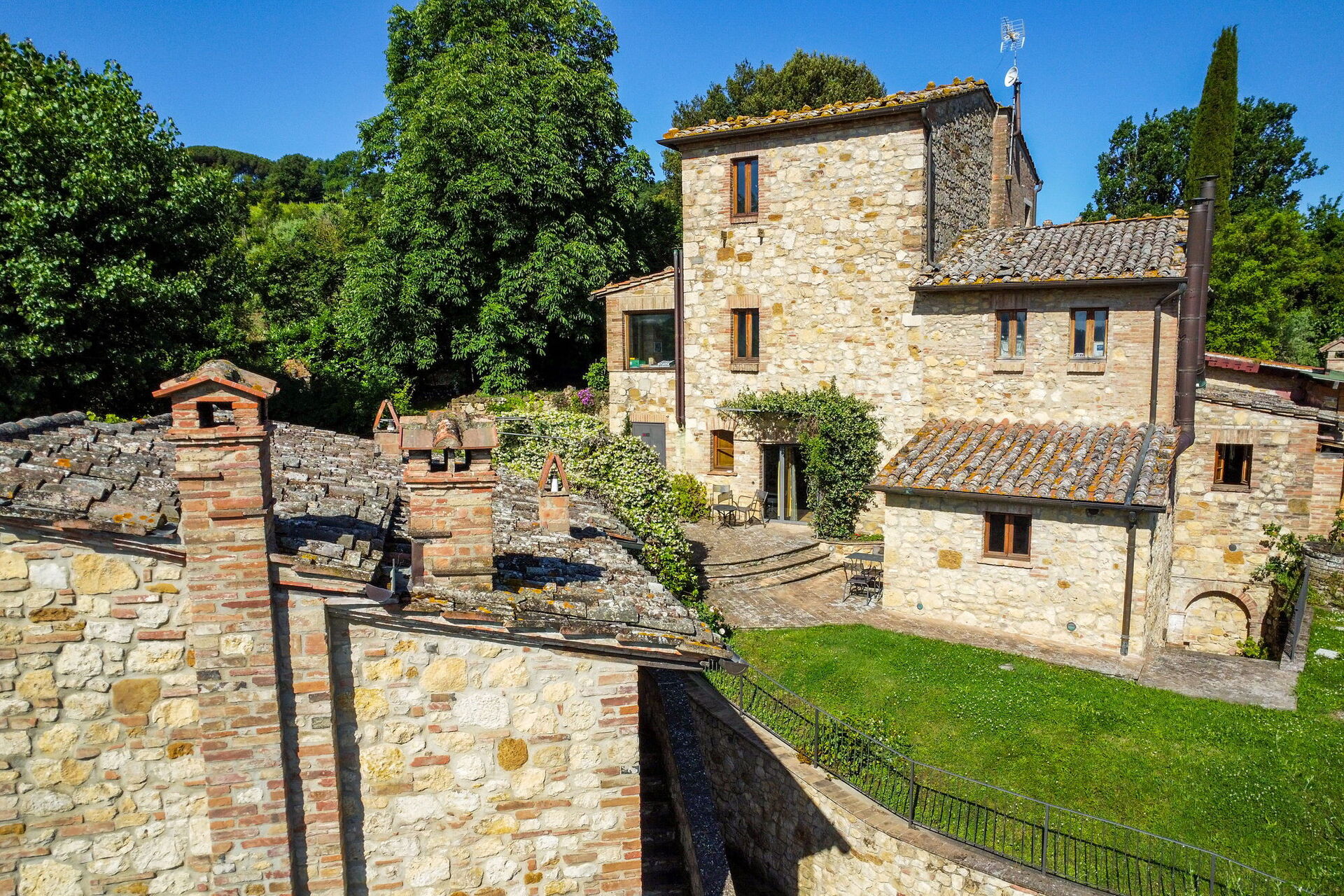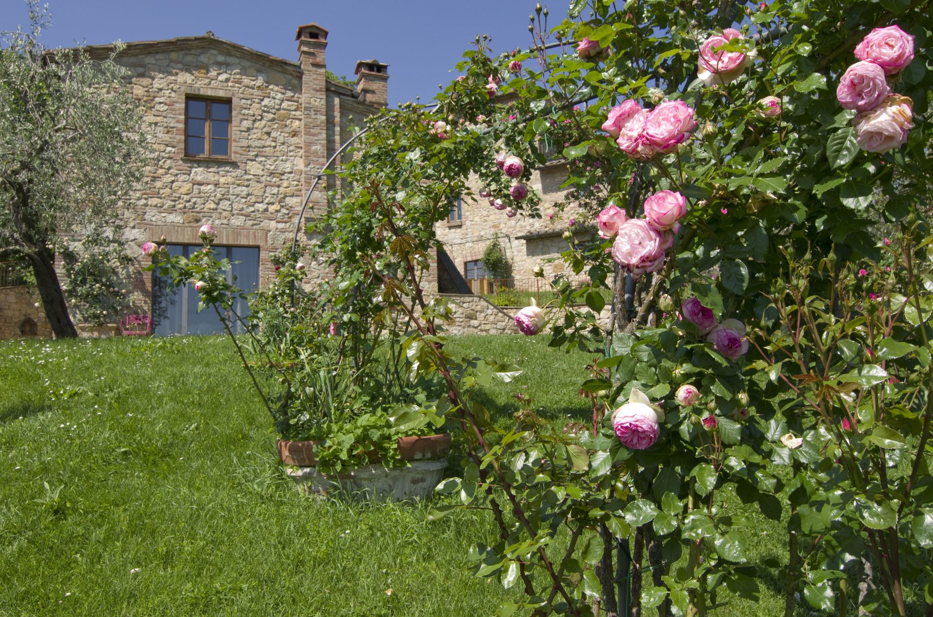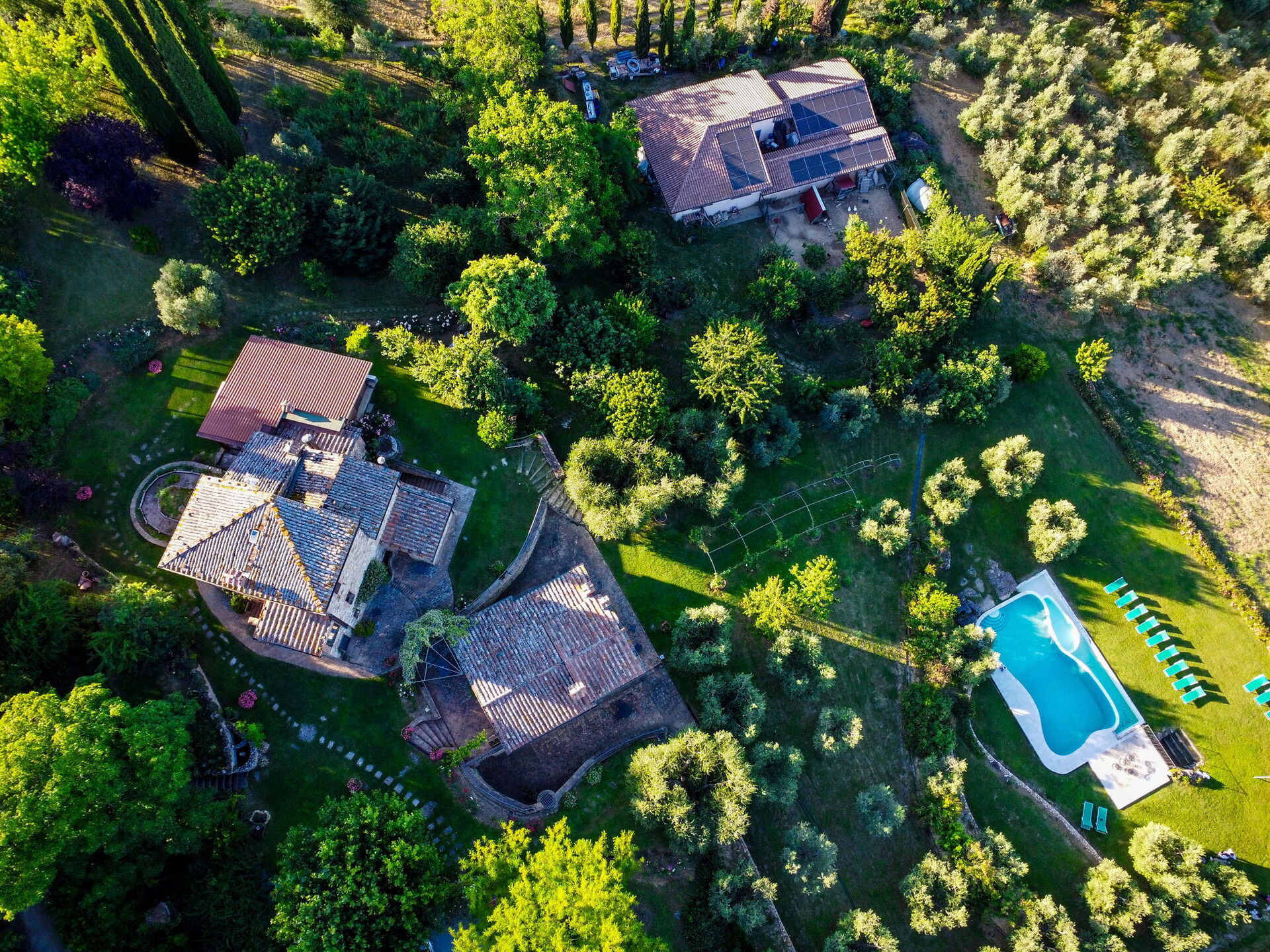 Ved ankomst vil I møde en flot ren velholdt ejendom med udsigt over bakkerne perfekt til rolig ferie i Toscana. Efter en hektisk dag med shopping, er det dejligt at nyde lidt tid med venner og familie ved kanten af poolen med et glas vin - det er en perfekt måde at slappe af på sidst på dagen. Udenfor vil I finde gårdhave og grill. Hvis I nyder at lave mad til familie og venner så er der et veludstyret køkken inkluderet kaffemaskine, mikroovn, brødrister, komfur og køleskab, samt, , samt masser af service og bestik til op til 14 personer.