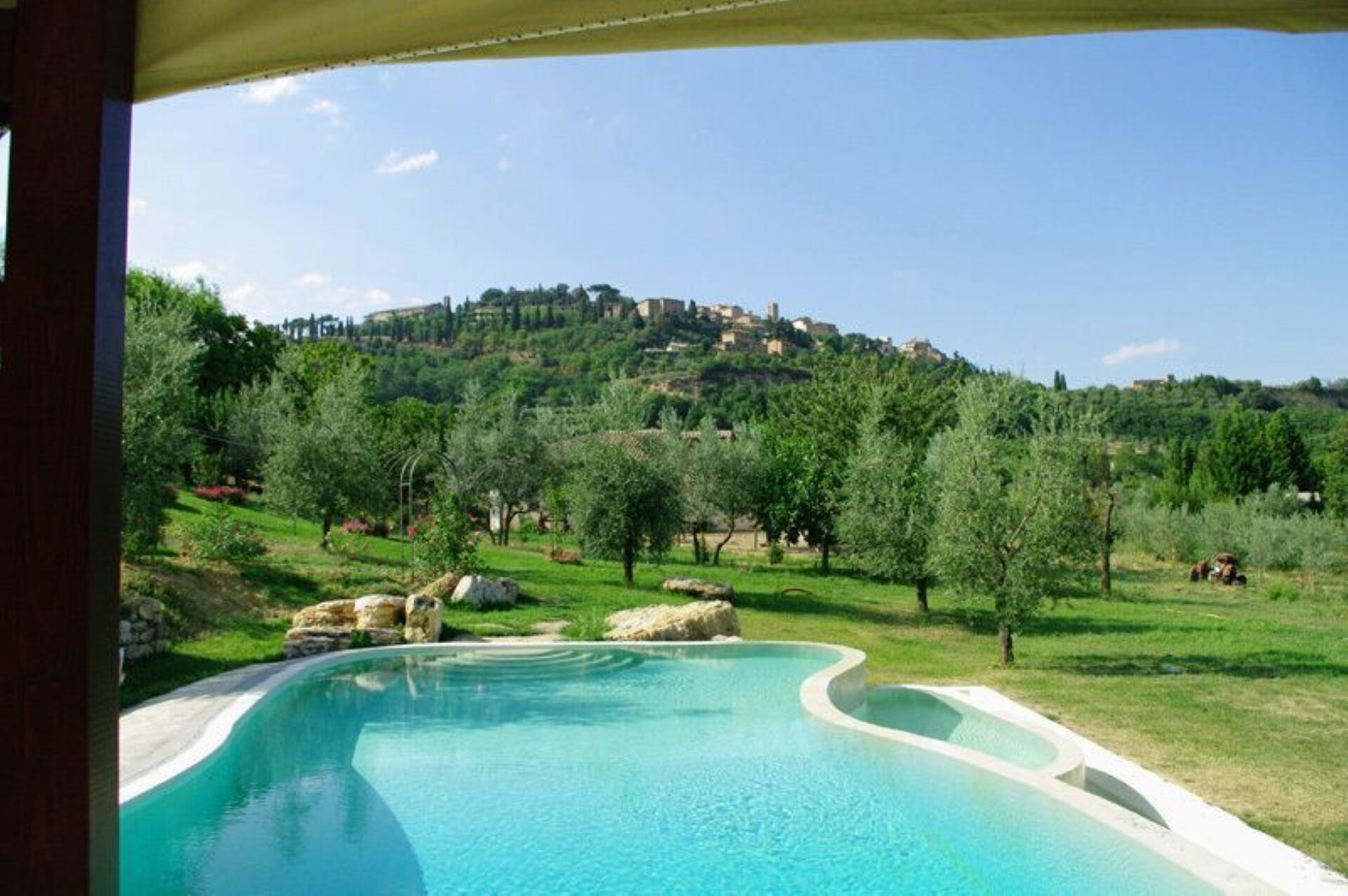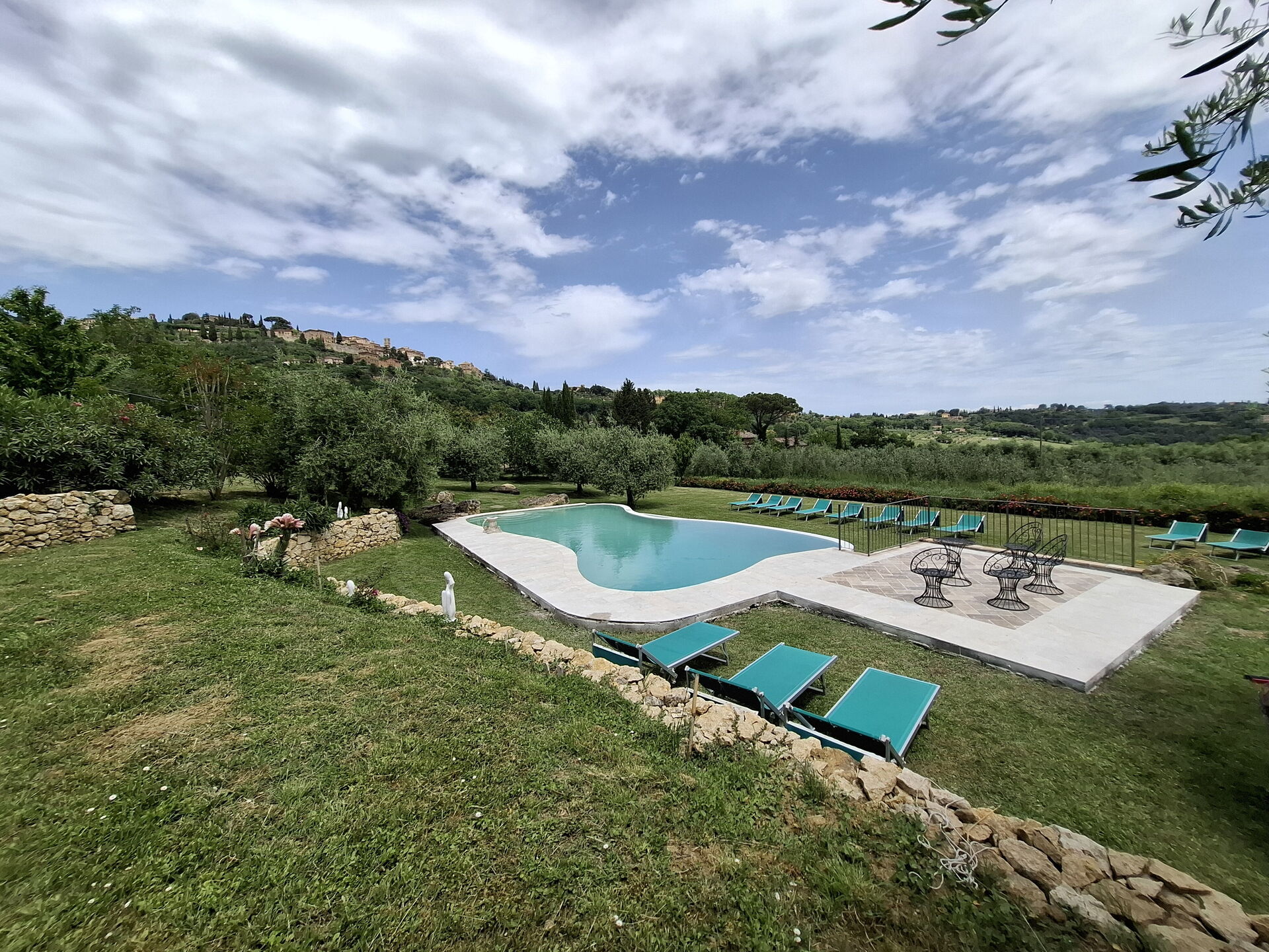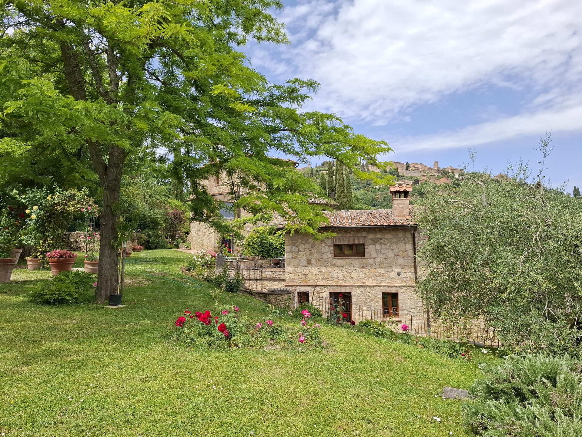 What a wonderful spot to spend 5 days in Tuscany! Our extended family of 13 rented the entire villa. The villa is lovely, the pool and house has a wonderful view of the countryside and the hilltop town on Montepulciano. The owners gave the children (age 11 to 20, not really a child) a few tours of the farm and brought us fresh produce (zucchini, lettuce, onion) one day that we used for an amazing lunch of local cheese, bread and wine in their screened dining room. The first evening and morning we had our dinner and breakfast cooked for us. We all agreed the dinner, a multi course feast, was one of the best meals we had during our 10 day visit to Italy! The garden, nicely labeled, was lovely. We visited Sienna, Pienza, Arezzo, Cortona and a number of other villages from the villa. If I had to give one regret, it would be it is just a bit too far south to comfortably visit Florence, Lucca, etc. Also, one small basement room was a bit damp due to a small leak. [Owner reply: The leak was fixed immediately and the problem was resolved]