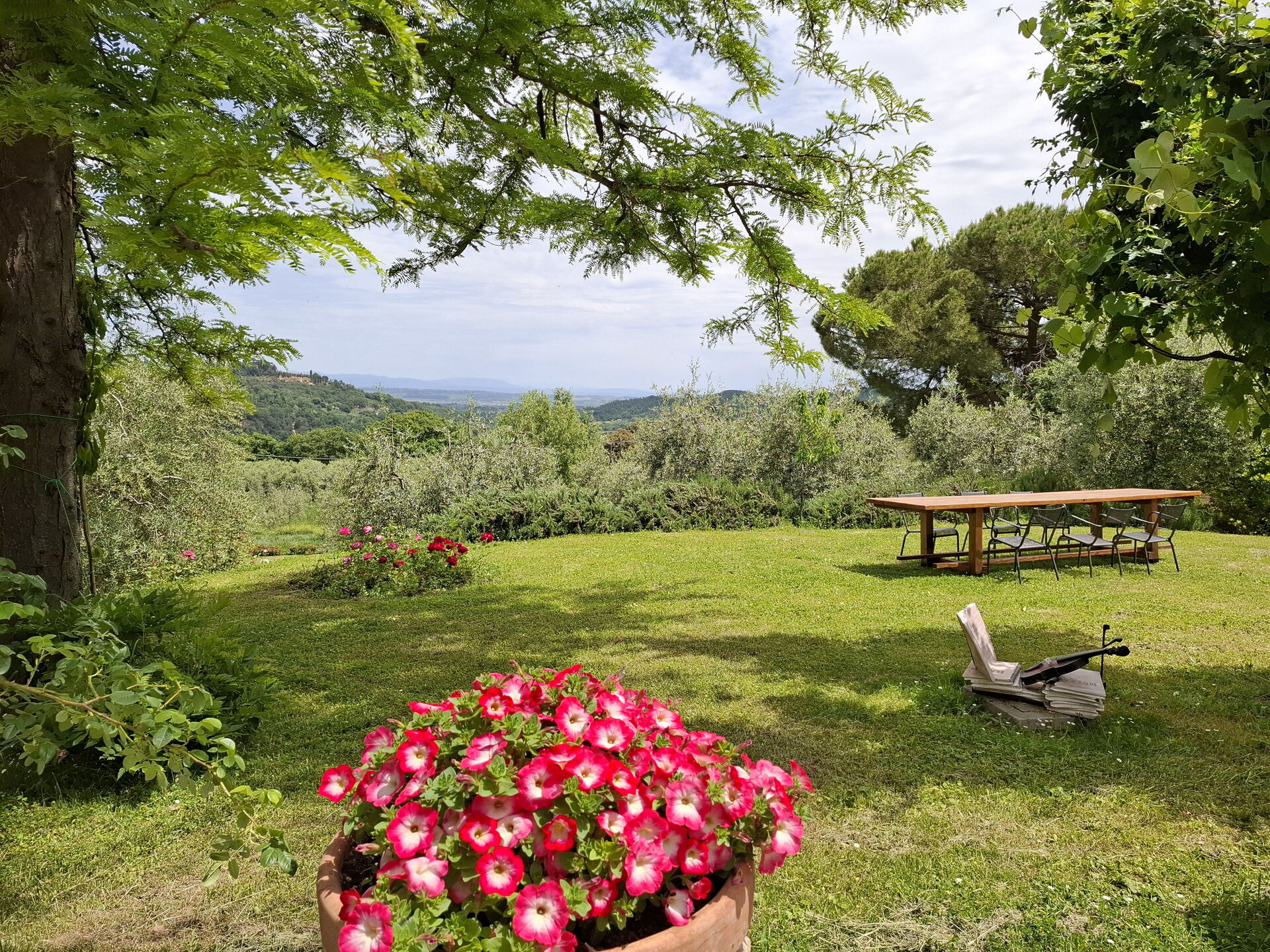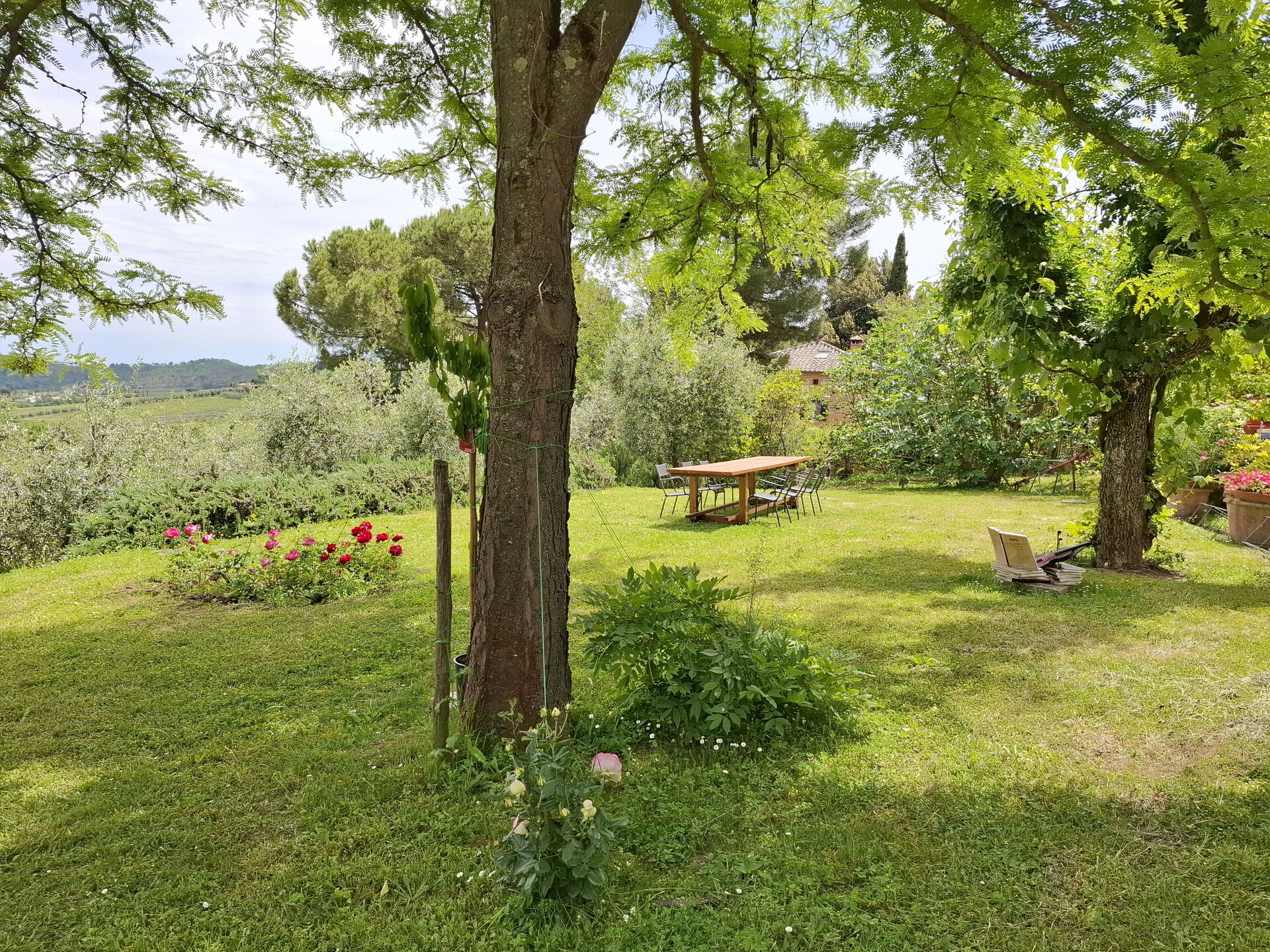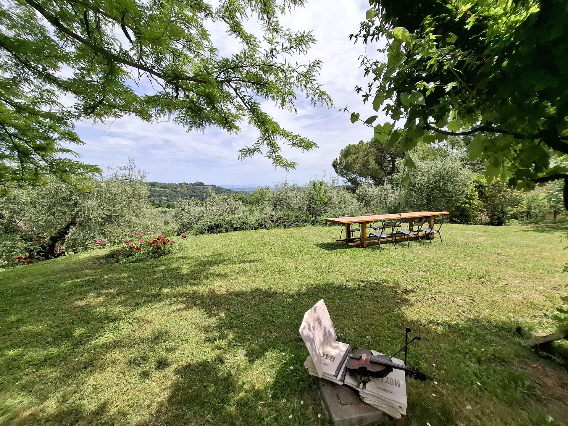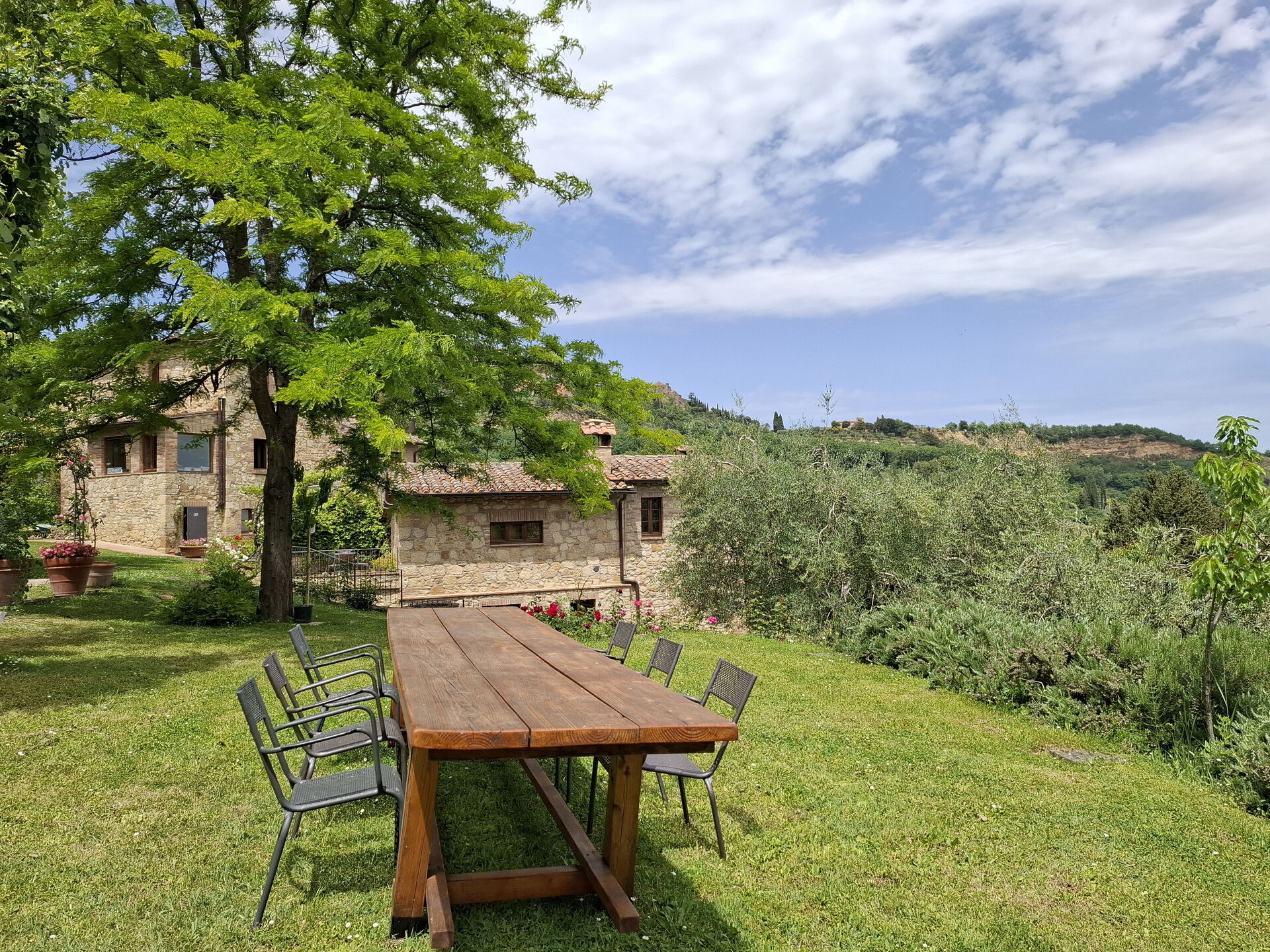 What a wonderful spot to spend 5 days in Tuscany! Our extended family of 13 rented the entire villa. The villa is lovely, the pool and house has a wonderful view of the countryside and the hilltop town on Montepulciano. The owners gave the children (age 11 to 20, not really a child) a few tours of the farm and brought us fresh produce (zucchini, lettuce, onion) one day that we used for an amazing lunch of local cheese, bread and wine in their screened dining room. The first evening and morning we had our dinner and breakfast cooked for us. We all agreed the dinner, a multi course feast, was one of the best meals we had during our 10 day visit to Italy! The garden, nicely labeled, was lovely. We visited Sienna, Pienza, Arezzo, Cortona and a number of other villages from the villa. If I had to give one regret, it would be it is just a bit too far south to comfortably visit Florence, Lucca, etc. Also, one small basement room was a bit damp due to a small leak. [Owner reply: The leak was fixed immediately and the problem was resolved]