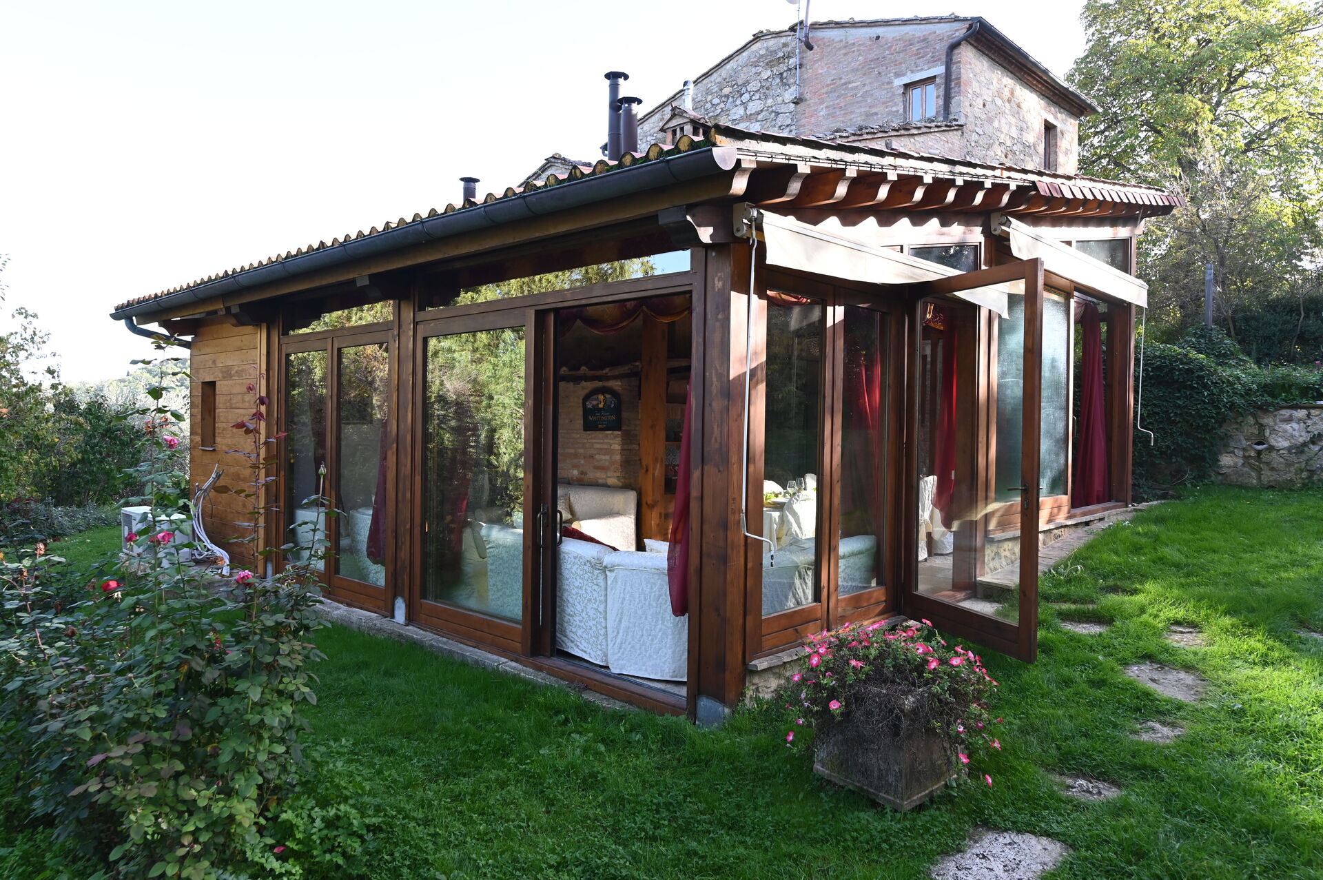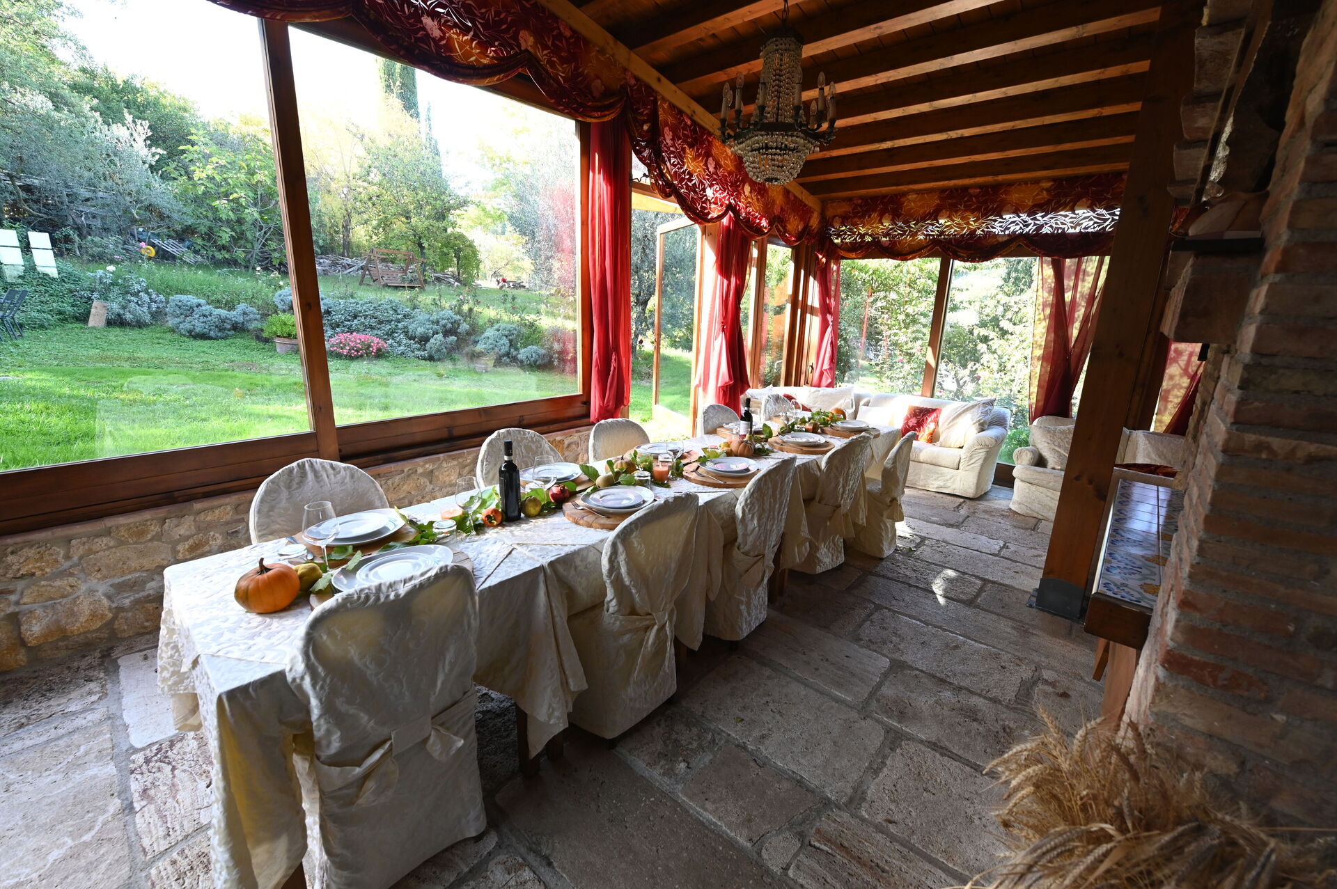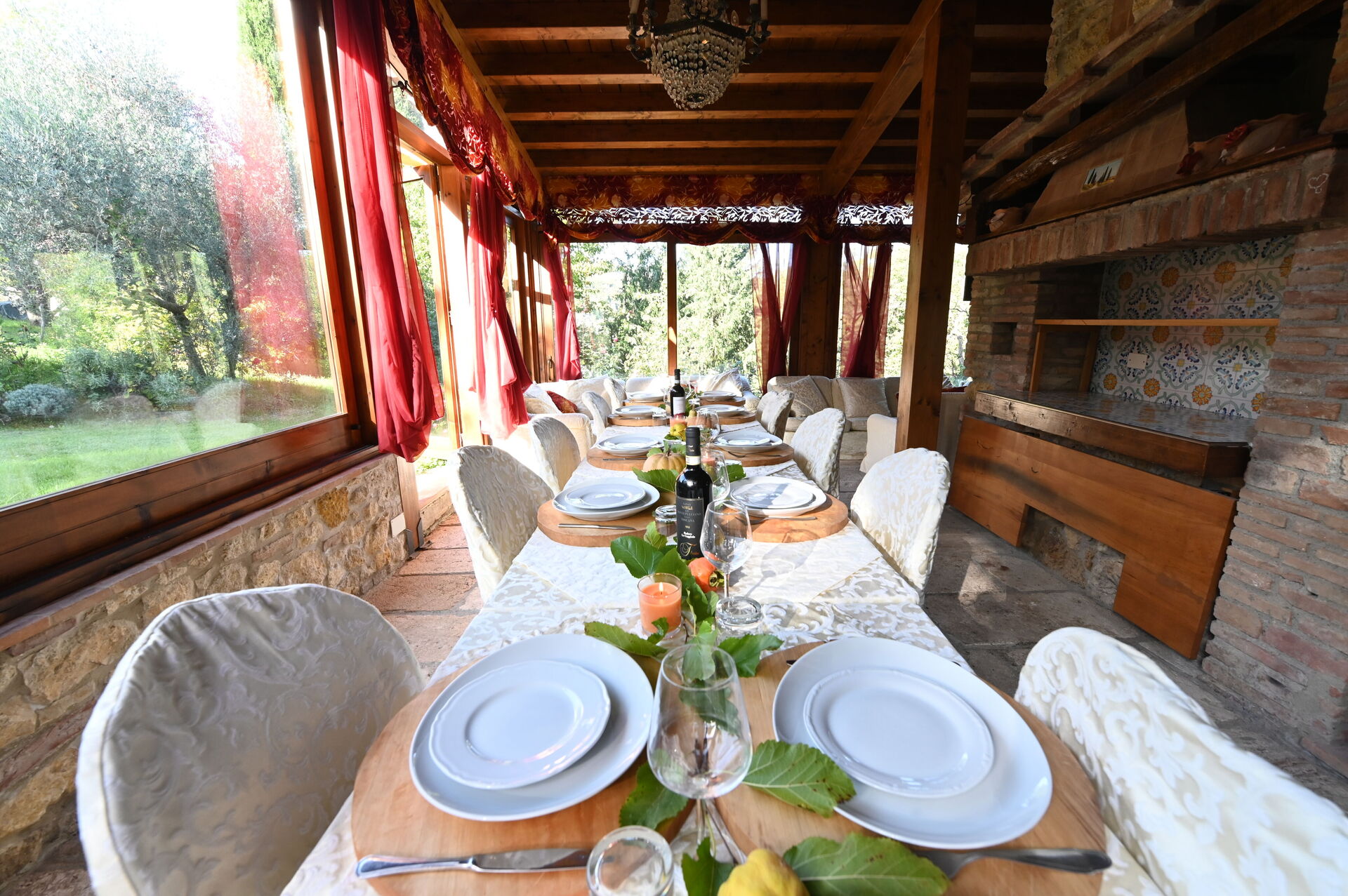 Der er også en ekstern grill, udstyret med træovn og picnicområde.