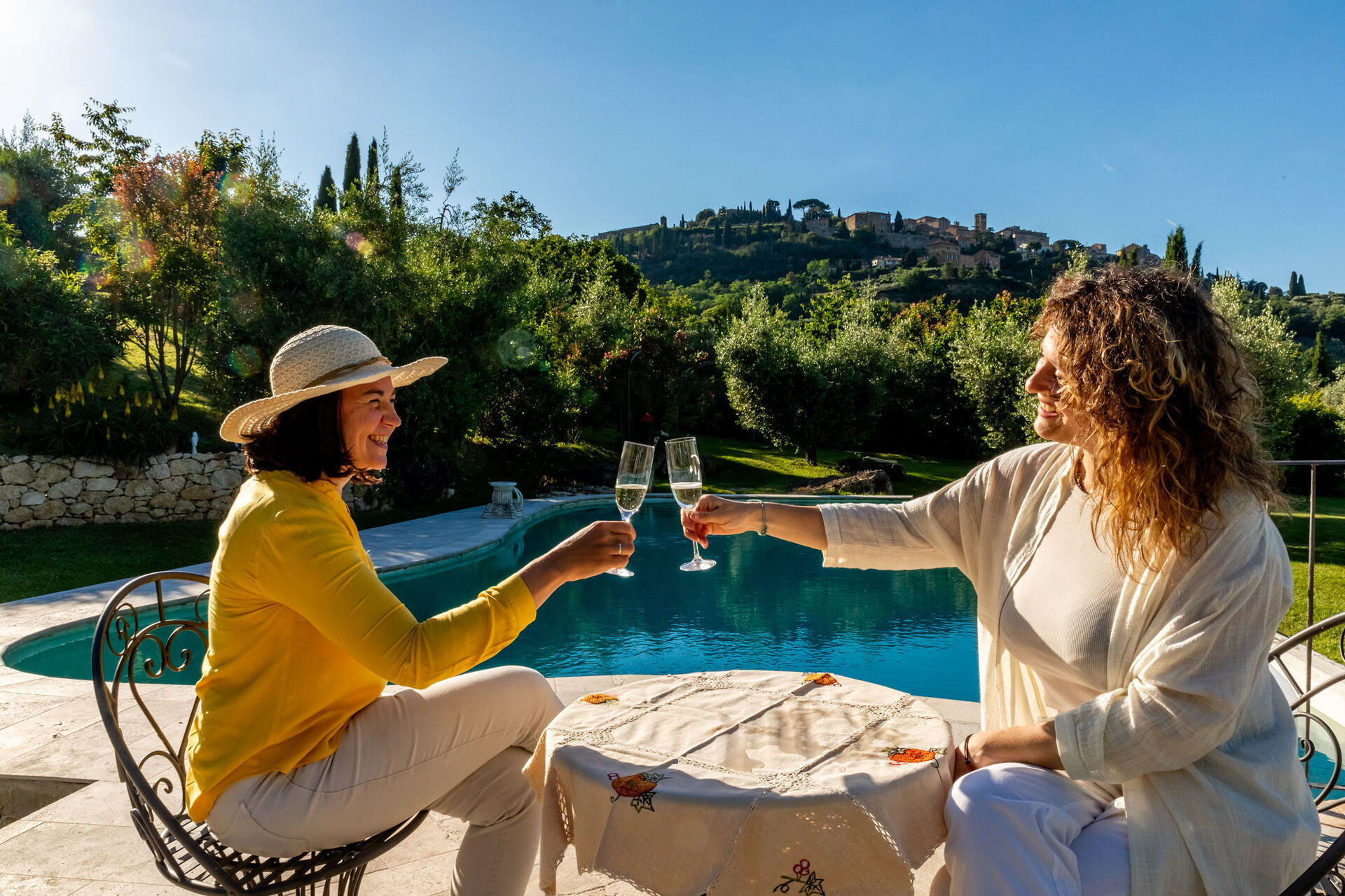 We had the most amazing time staying at Villa Ardene with 14 of our closest family members! The location was very important to us as it is a very short drive (or uphill walk) into the lovely town of Montepulciano. Bendetta hosted a wonderful Rehersal Dinner for 30+ people & it was the best food we had in Tuscany! The pool was amazing with a beautiful view of town. We would reccomend 100x over! THANK YOU!