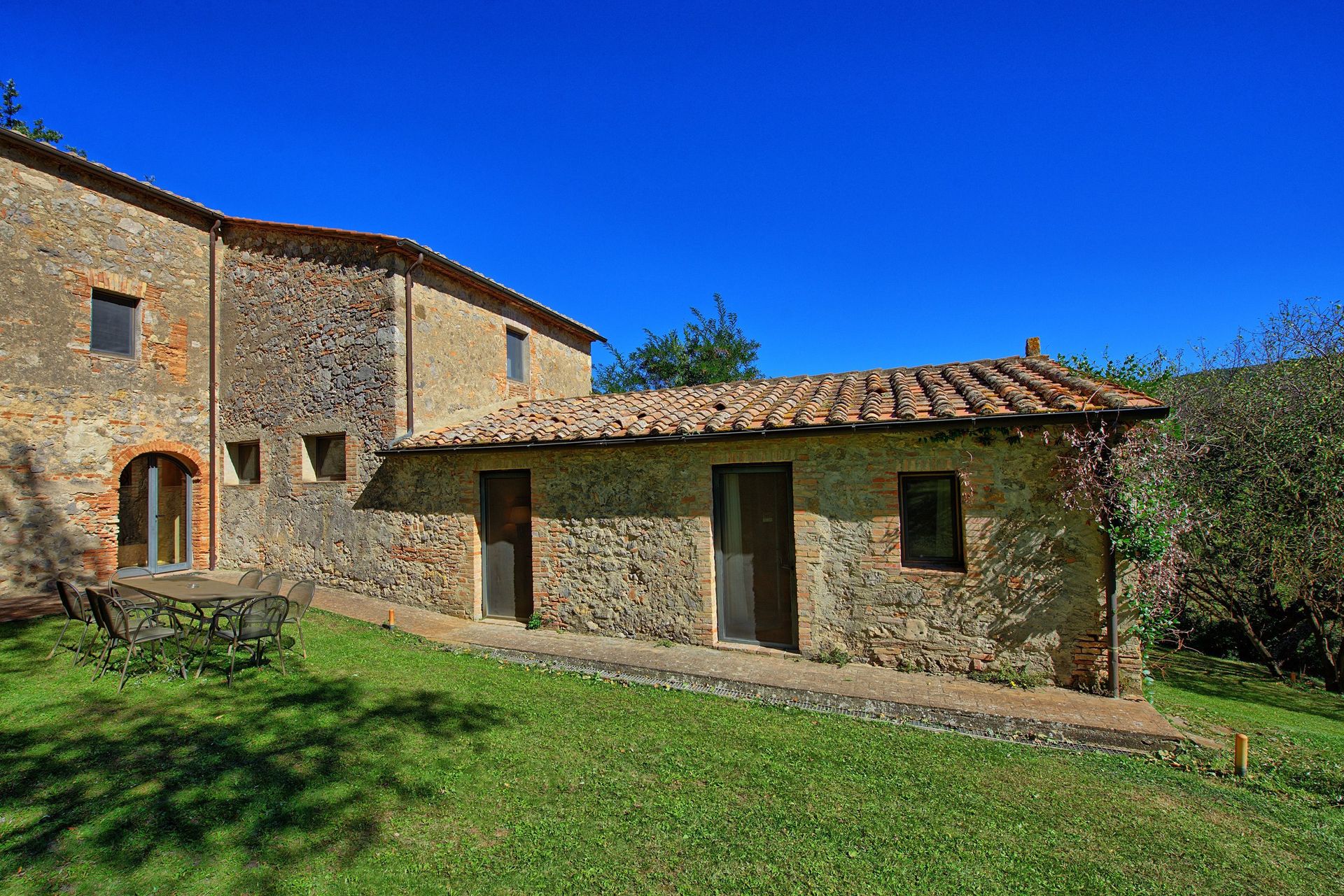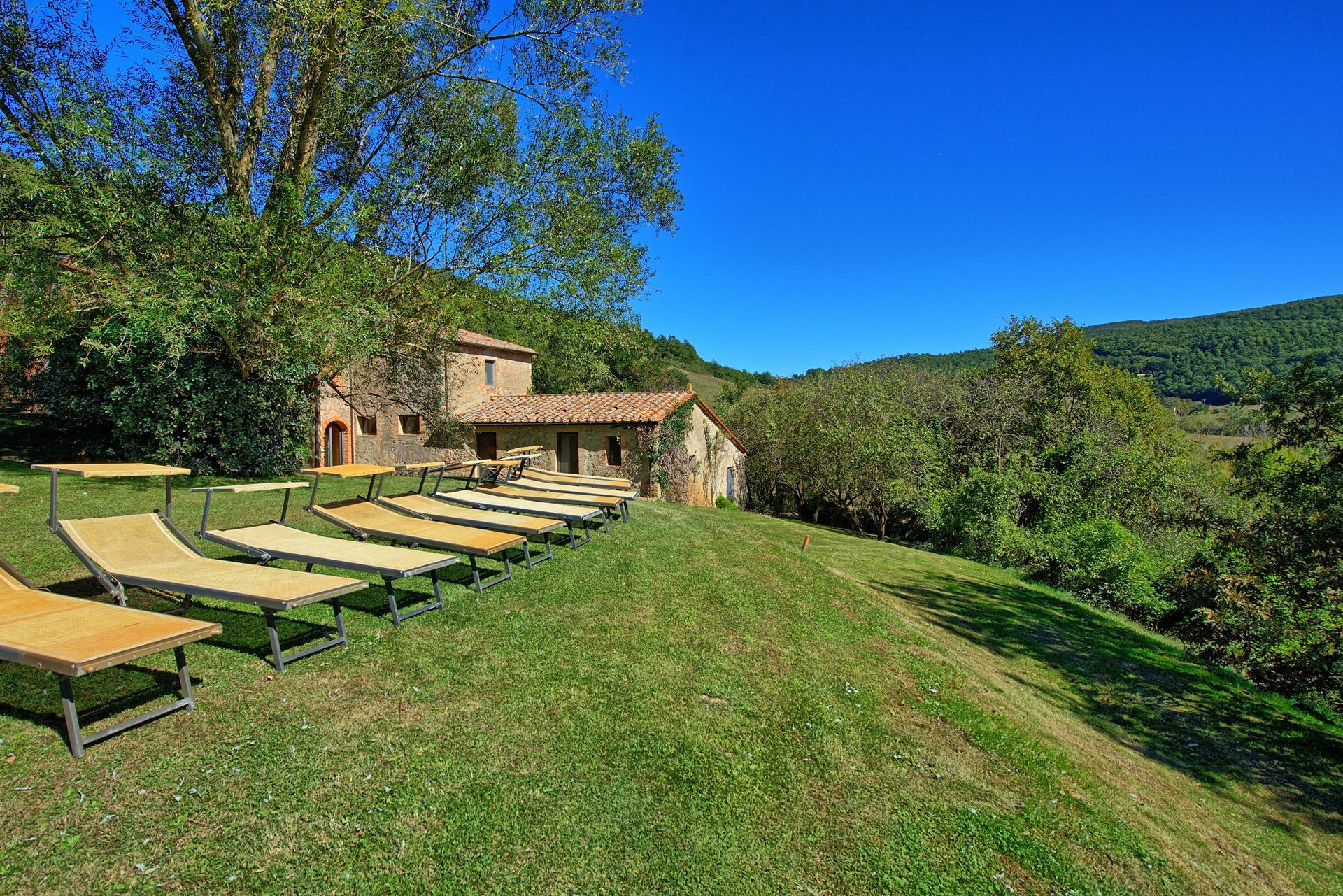 Feriehuset er en del af en større ejendom på ca. 800 hektar med et gammelt kloster fra 1100-tallet, og ruinerne af Moiane Slot er inden for gåafstand fra villaen. Ejendommen ligger i smukke det Val d'Orcia området i Siena provinsen.