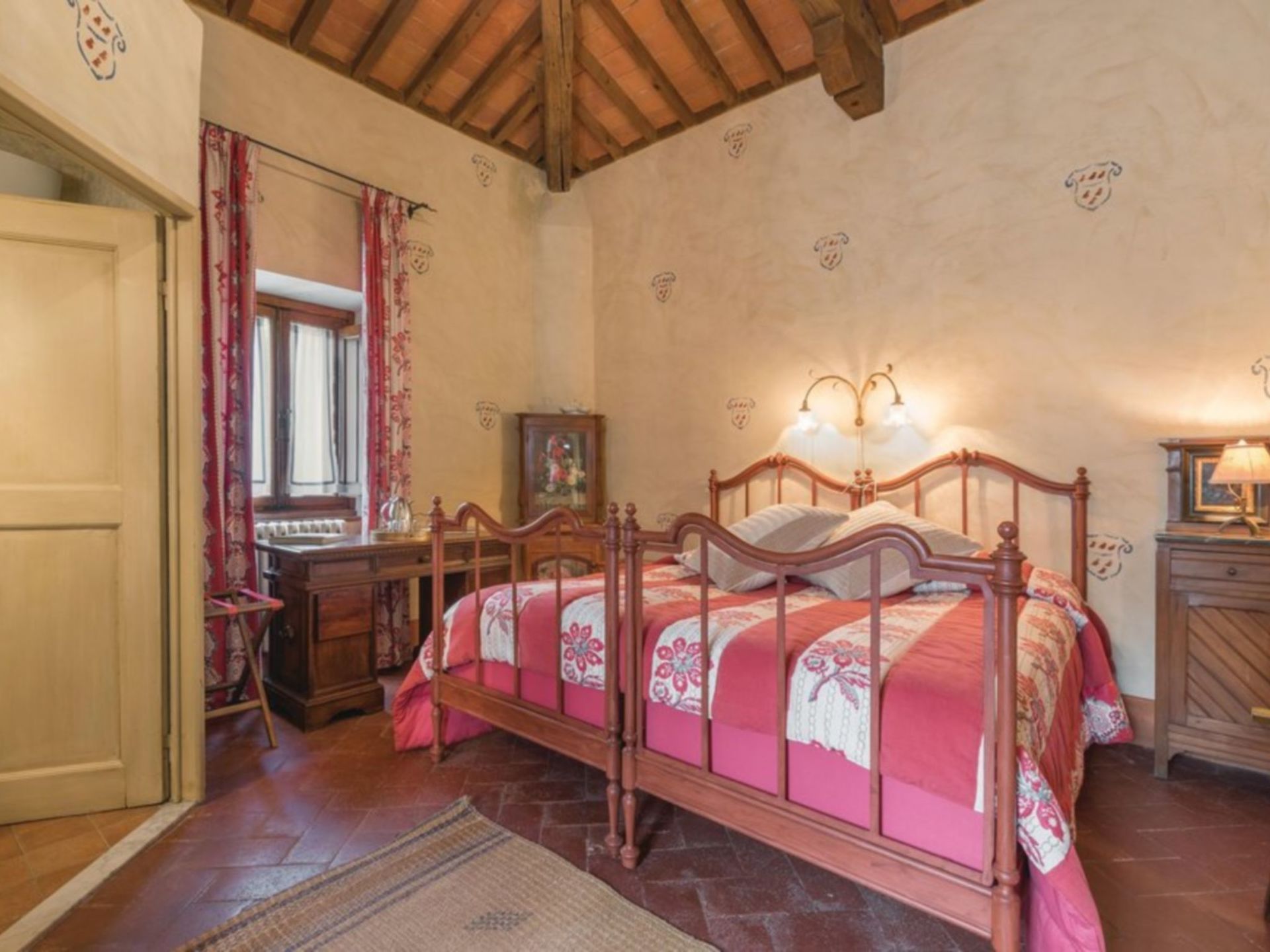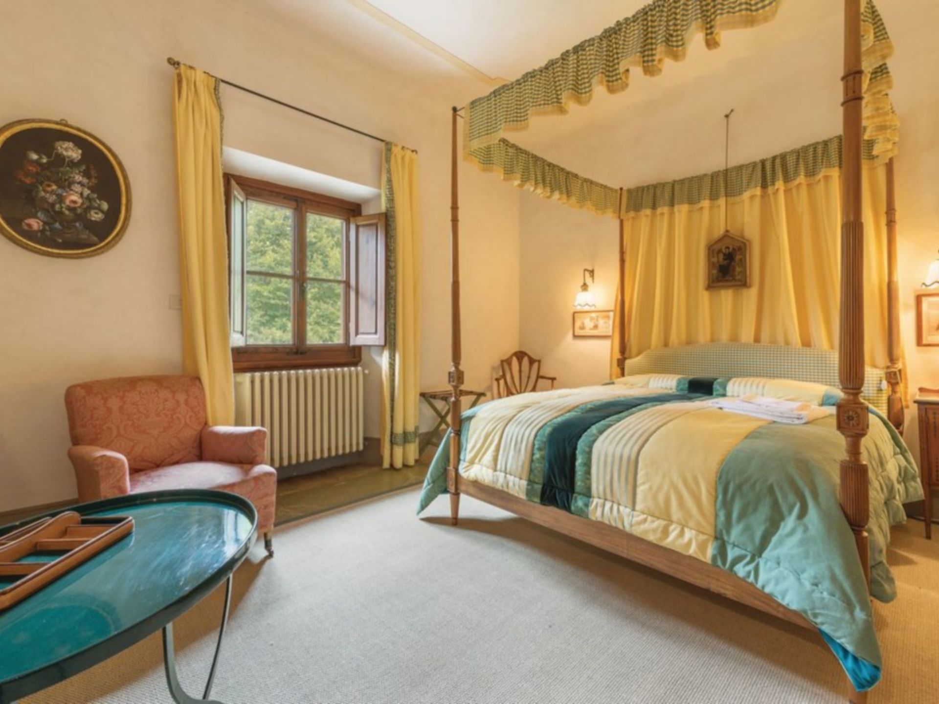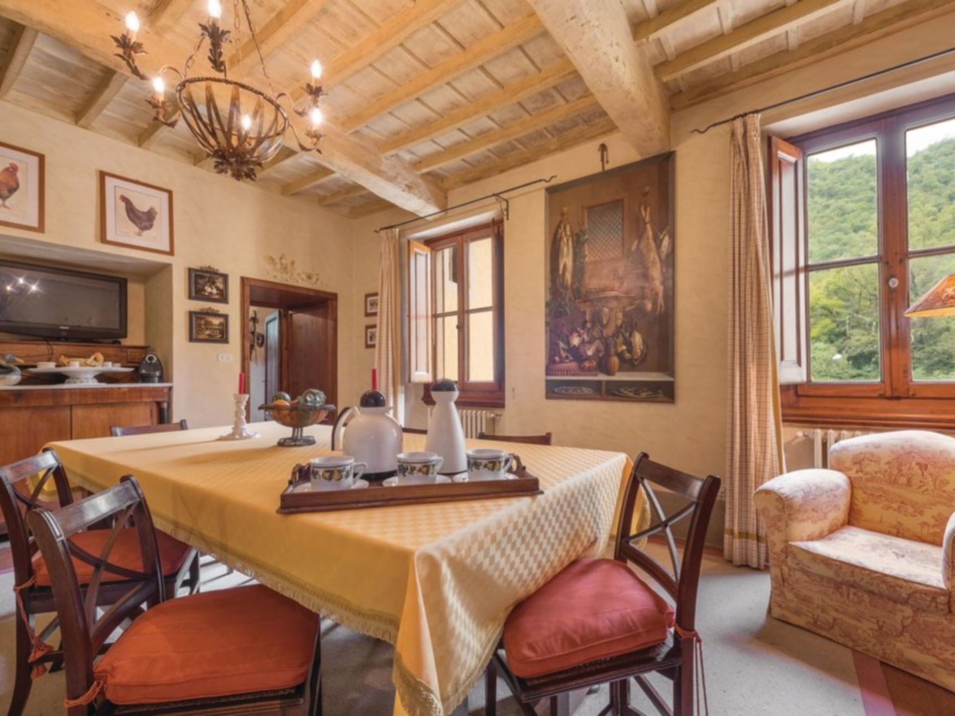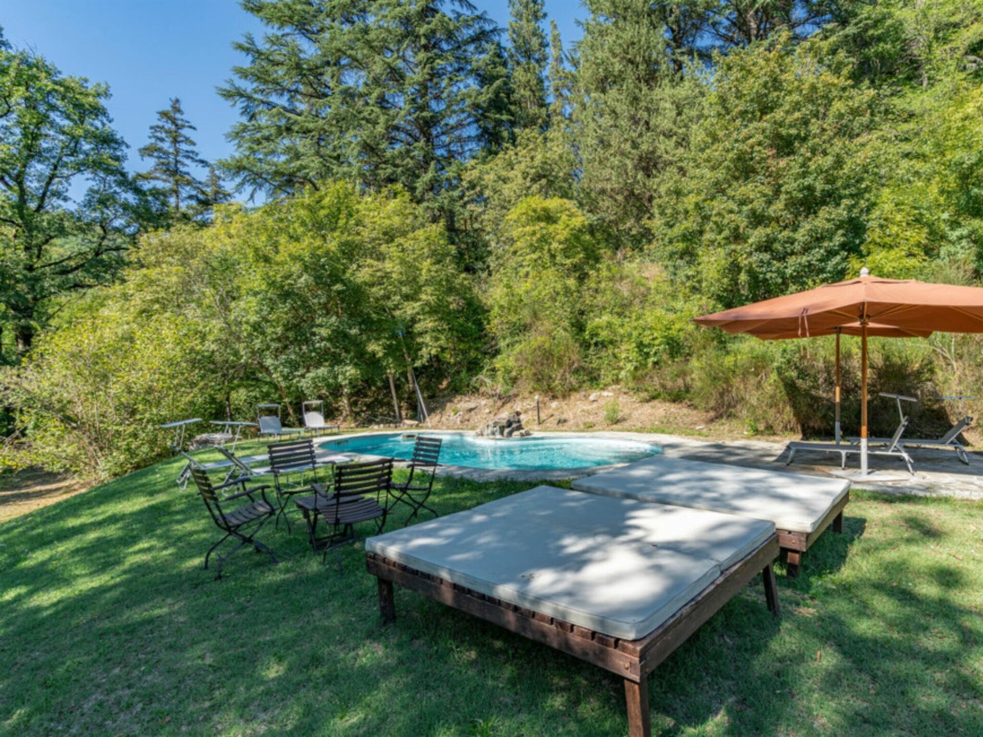 Amazing property. Has the wow factor! It’s huge! Lovely pool a couple of minutes walk from house. Caretaker shares entrance to accommodation and lives on site. The villa is in a hamlet about 40 minutes drive from Florence and about 10 minutes drive to nearest town / shop.