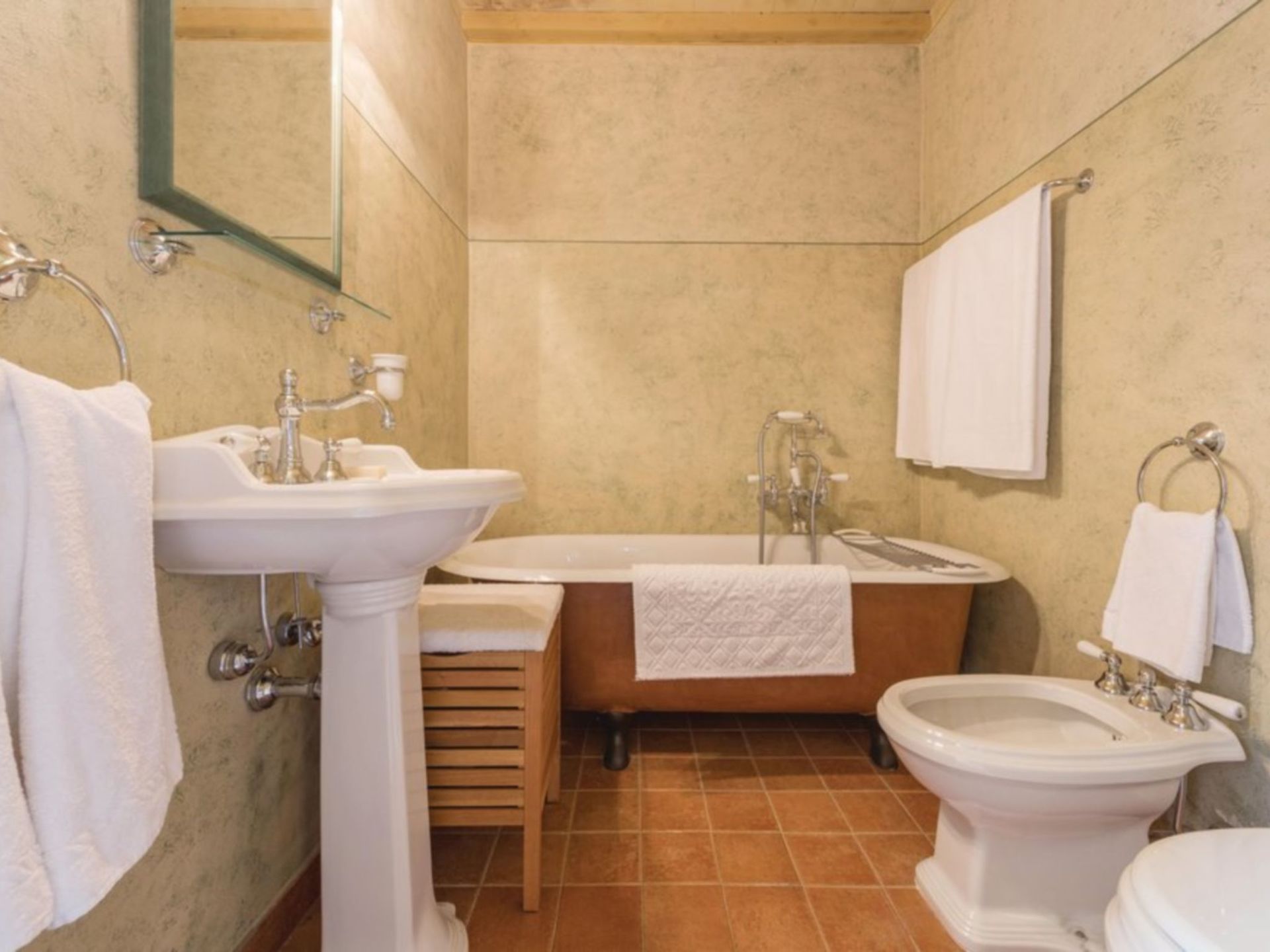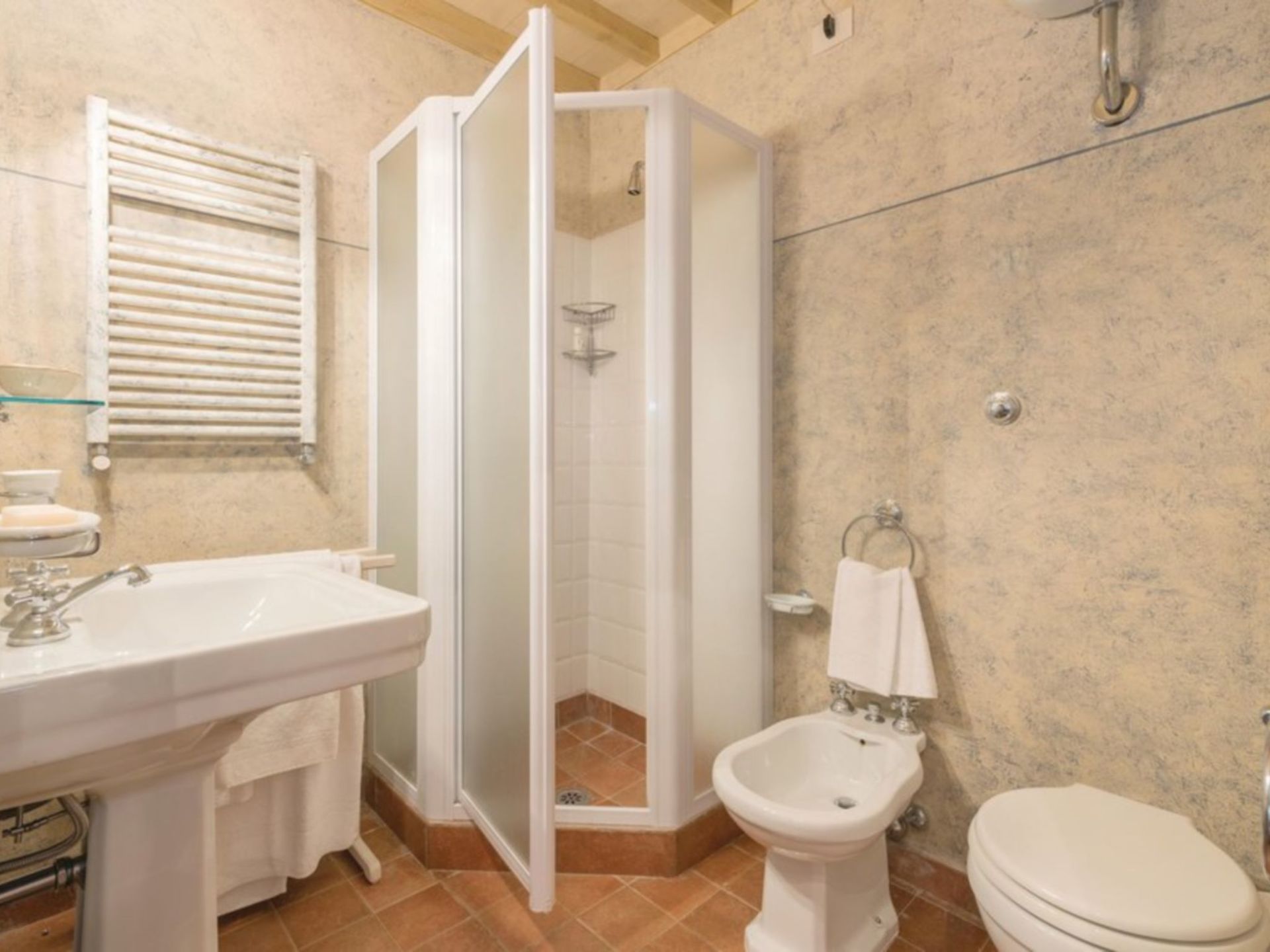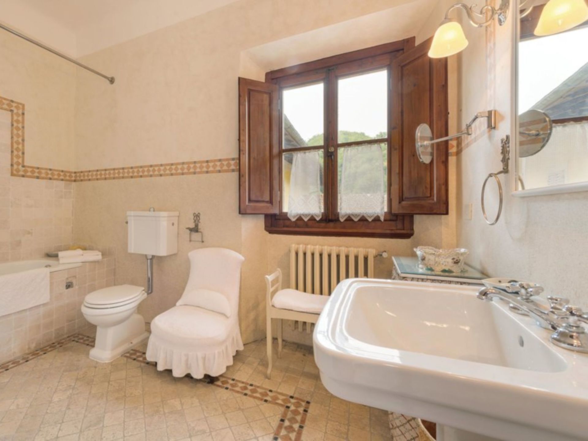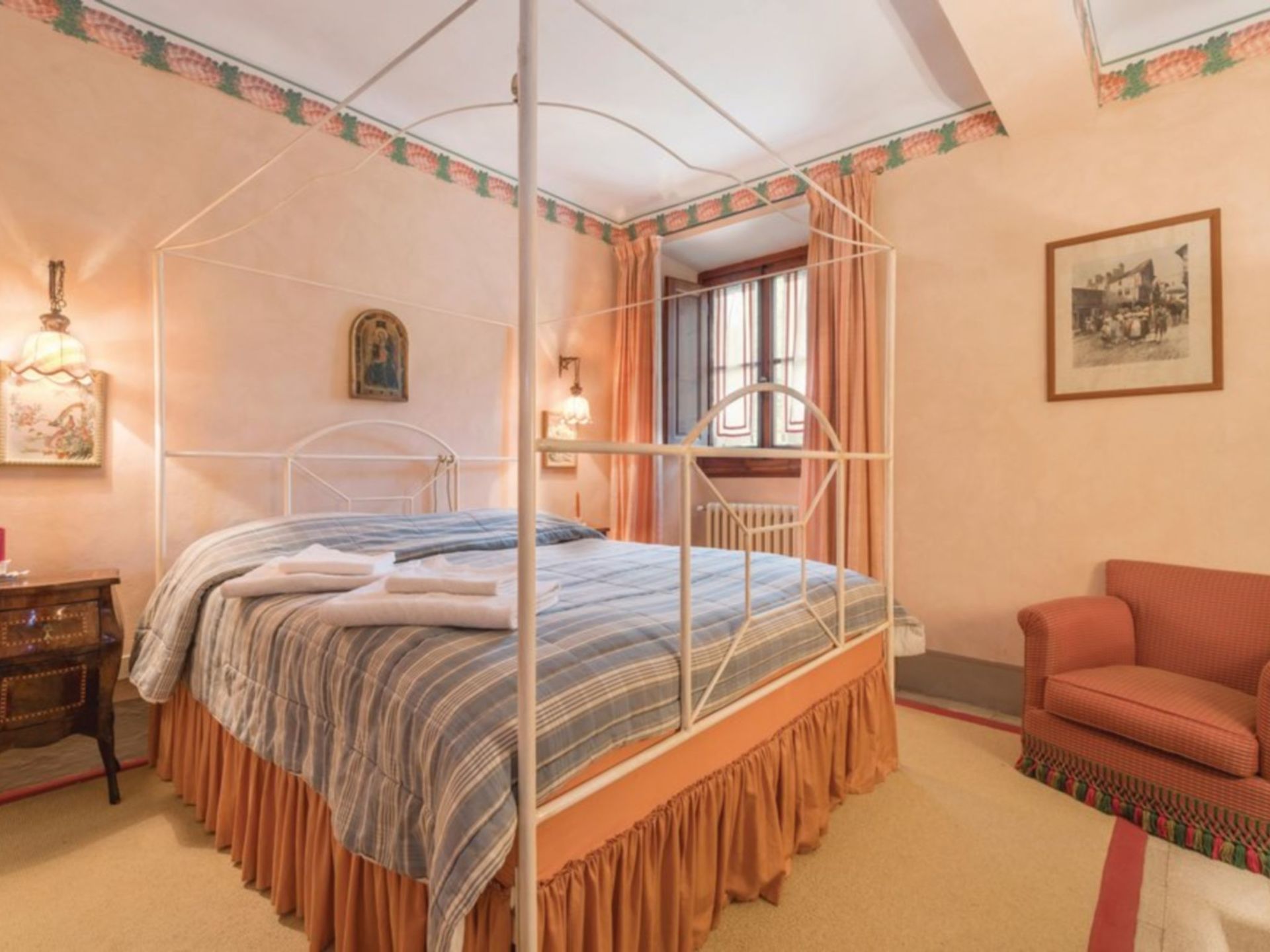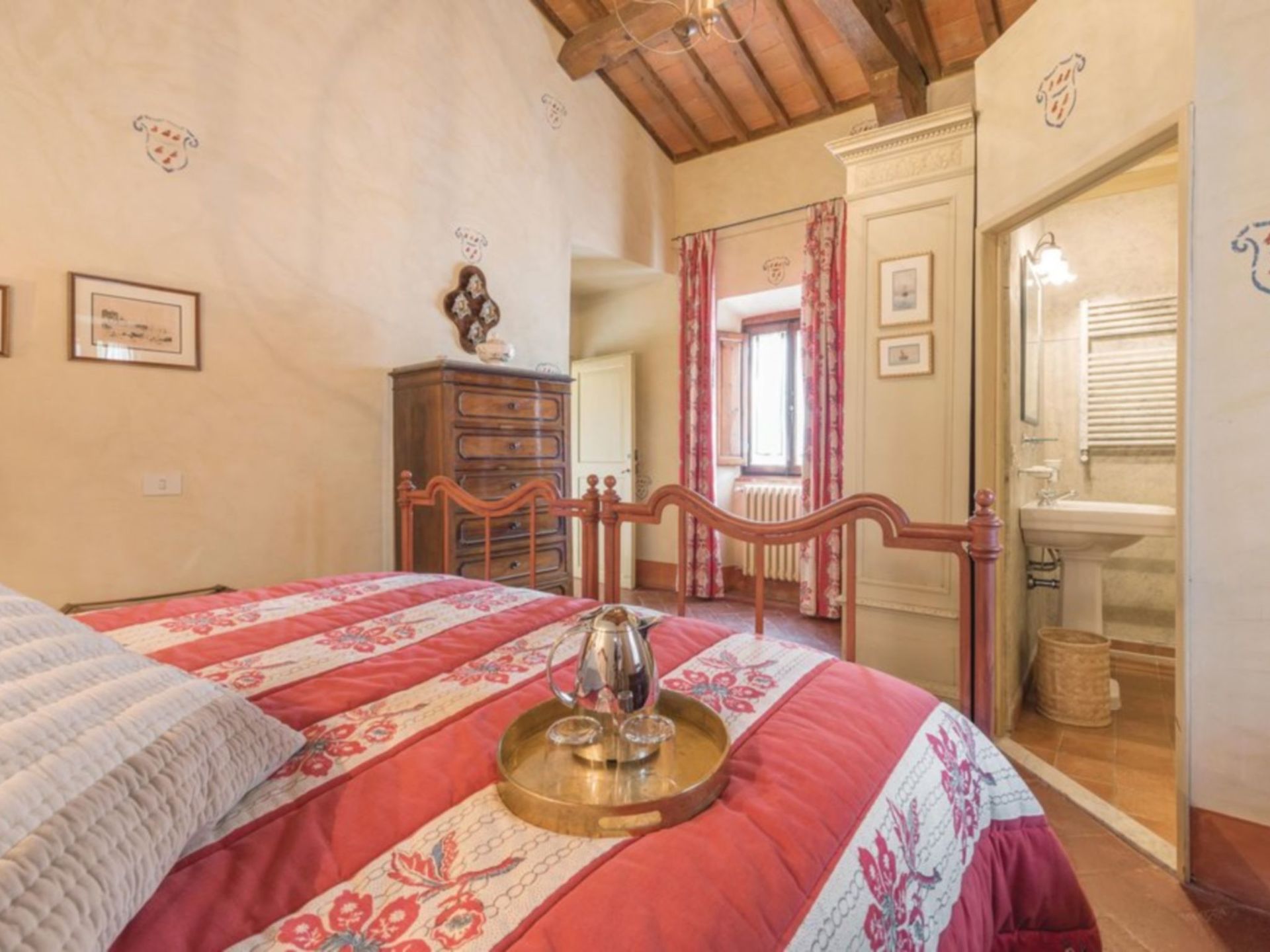 Amazing property. Has the wow factor! It’s huge! Lovely pool a couple of minutes walk from house. Caretaker shares entrance to accommodation and lives on site. The villa is in a hamlet about 40 minutes drive from Florence and about 10 minutes drive to nearest town / shop.