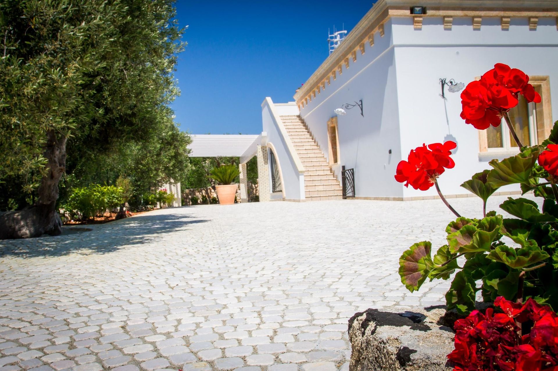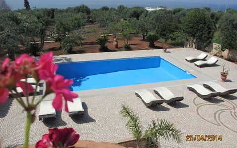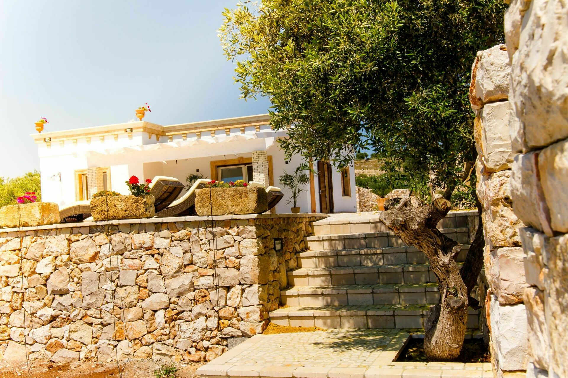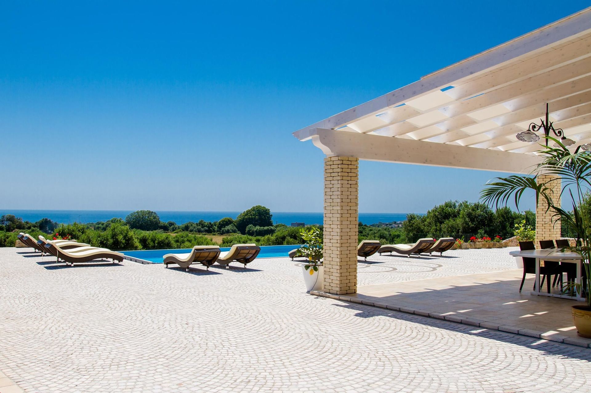 Located in the town of Santa Maria di Leuca, the stunning villa sits inside a large garden and overlooks panoramic sea views.