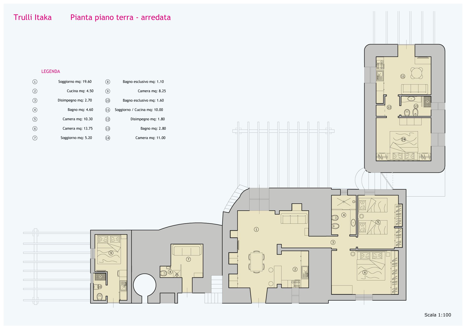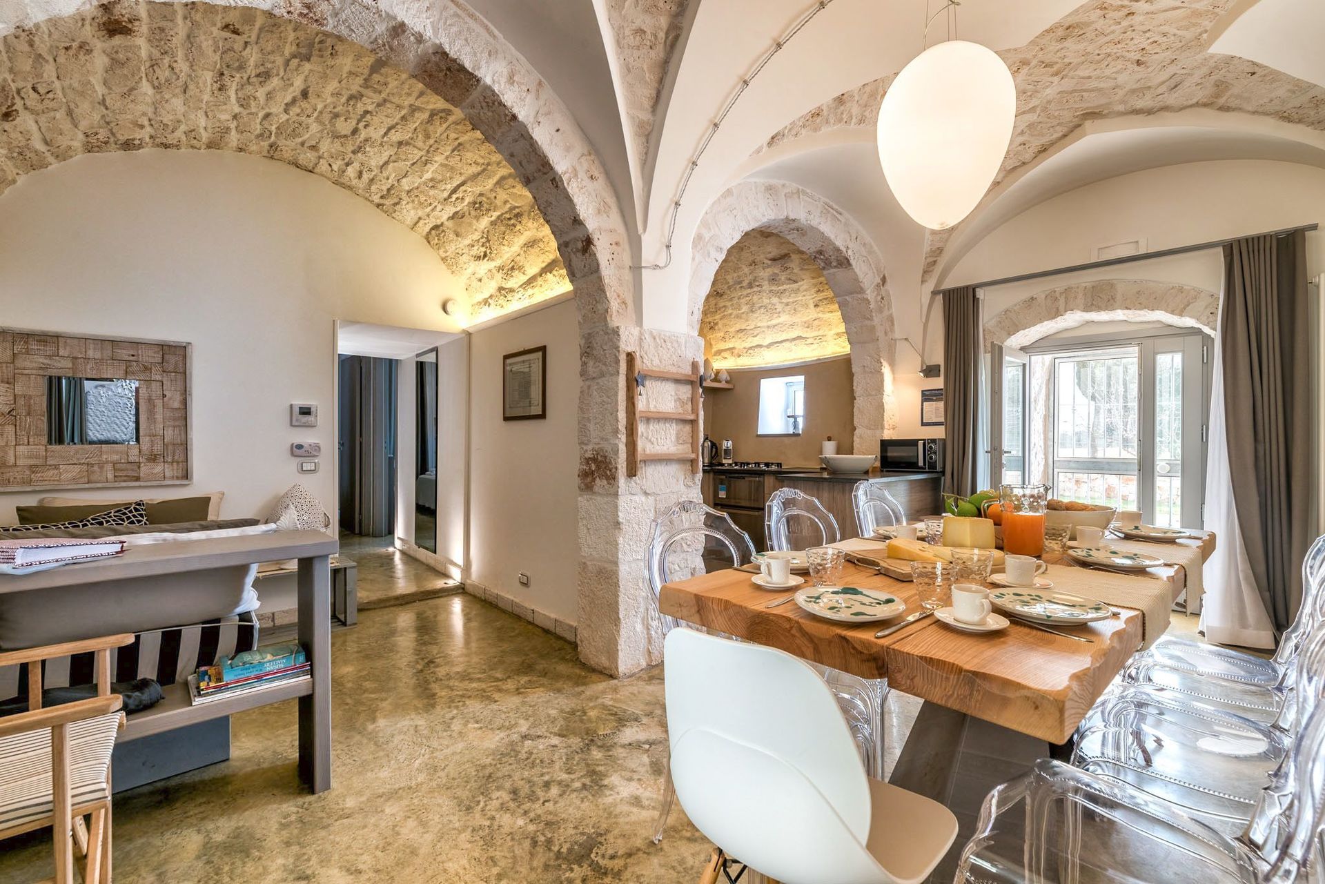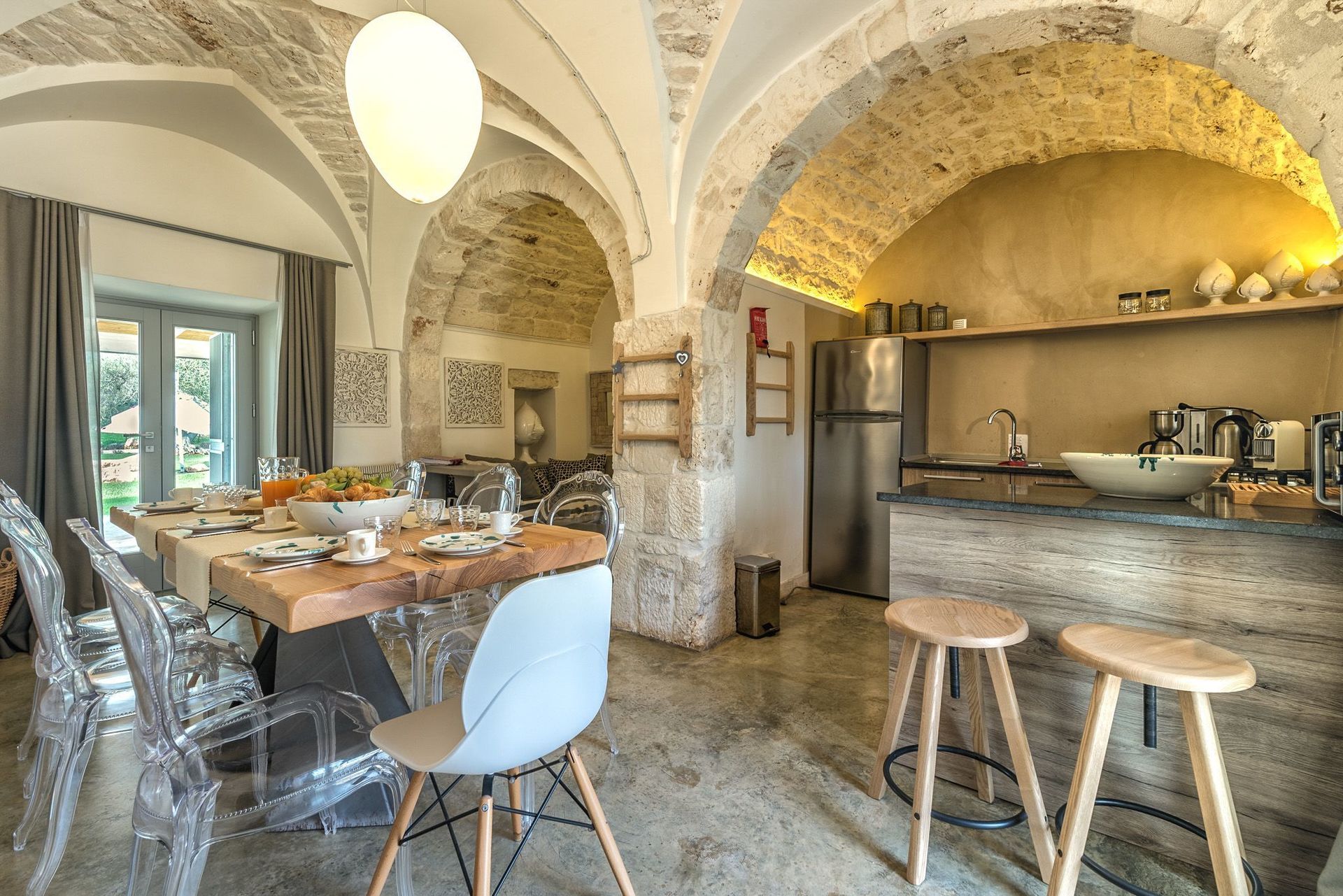 With four cozy bedrooms and as many bathrooms, as well as two fully equipped kitchens, Trulli Itaka offers an ideal retreat for groups of up to eight people, while allowing some privacy thanks to the three facilities with independent access.
