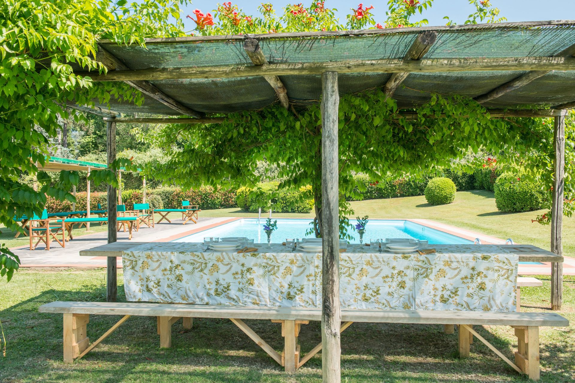 Når I ankommer, vil I blive modtaget af ejeren eller repræsentanten og I vil finde en flot ren og velholdt ejendom med udsigt over bakkerne ideel til en fredelig ferie i Toscana. Til jeres store nydelse vil I finde en privat pool, hvor I kan køle ned, mens I nyder en dejlig kold drik efter en travl dag med shopping. At spise med venner og familie er en kæmpe del af den toskanske kultur. Benyt det velekviperede køkken til madlavning med lokale produkter, når du er på ferie. Køkkenet indeholder kaffemaskine, mikroovn, brødrister, komfur og køleskab, samt, masser af service og bestik til op til 12 personer. Spis 'al fresco' som en ægte toskaner. Den fuldt møblerede balkon er det perfekte sted for at nyde sit måltid, familien og det flotte toskanske vejr.