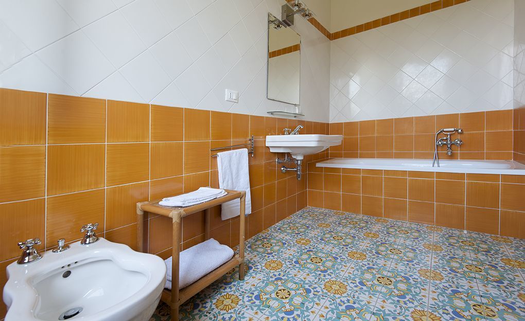 Badeværelse 3: vask, wc, bidet, badekar.