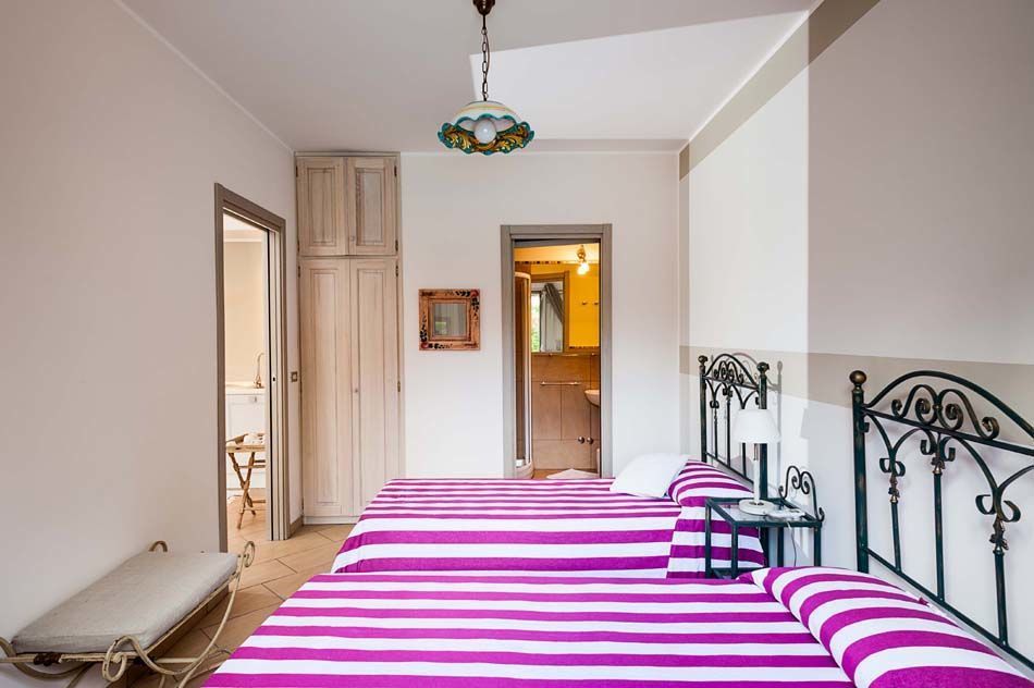 Soveværelse med bad 2: to enkeltsenge, vask, wc, bidet, bruser.