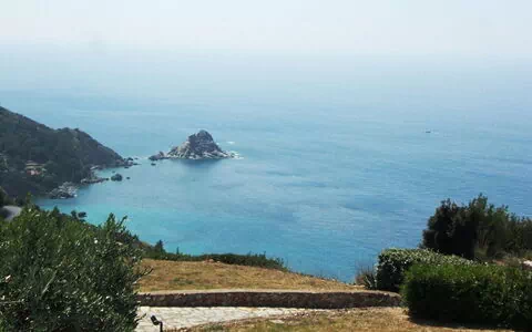 Villaen ligger ca. 200 meter over havets overflade. Klippe-/stenstrande og sandstrande er 3,5 km væk og let tilgængelige i bil. Det er også muligt at gå der til fods, og nedstigningen er ikke noget problem, men opstigningen er lidt mere anstrengende.