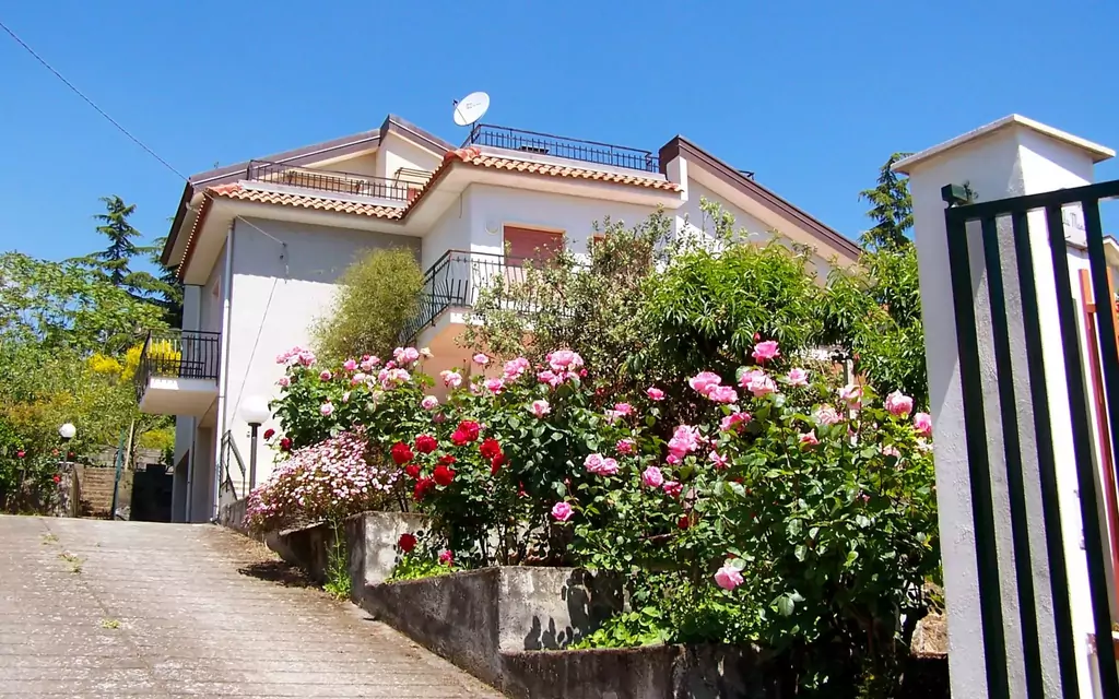 Cosy, comfortable villa "Maria", 600 m a.s.l.. In the hamlet Puntalazzo 10 km from the centre of Mascali, in a quiet, sunny position, 8 km from the sea. Private: property 400 m2 (fenced) with flowers and trees, orchard. Terrace, garden furniture, barbecue, roofed, parking on the premises. Grocery 700 m, supermarket, café 400 m, railway station 8 km, sandy beach 12 km pebble beach 8 km. Nearby attractions: Acireale 22 km, Punto escursioni per l'Etna 22 km, Catania 38 km, Taormina 32 km, Aeroporto Catania 47 km. Please note: car recommended.