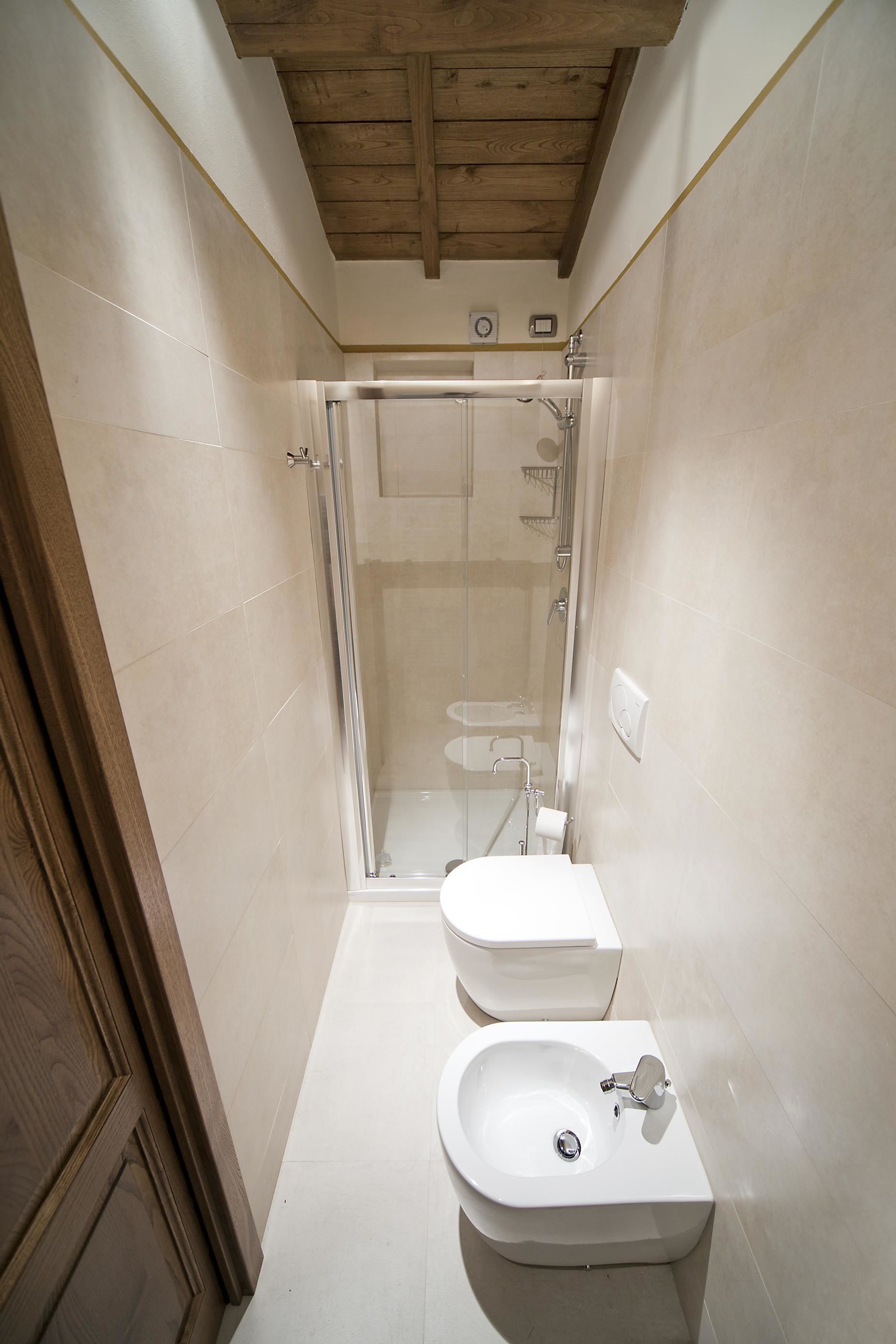 Badeværelse 2: vask, wc, bidet, bruser, hårtørrer.