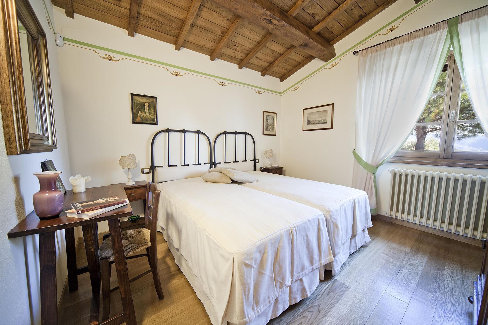 Soveværelse 1: to enkeltsenge, klimaanlæg, skrivebord.
