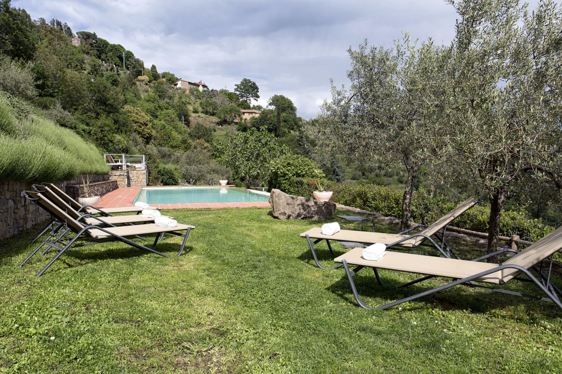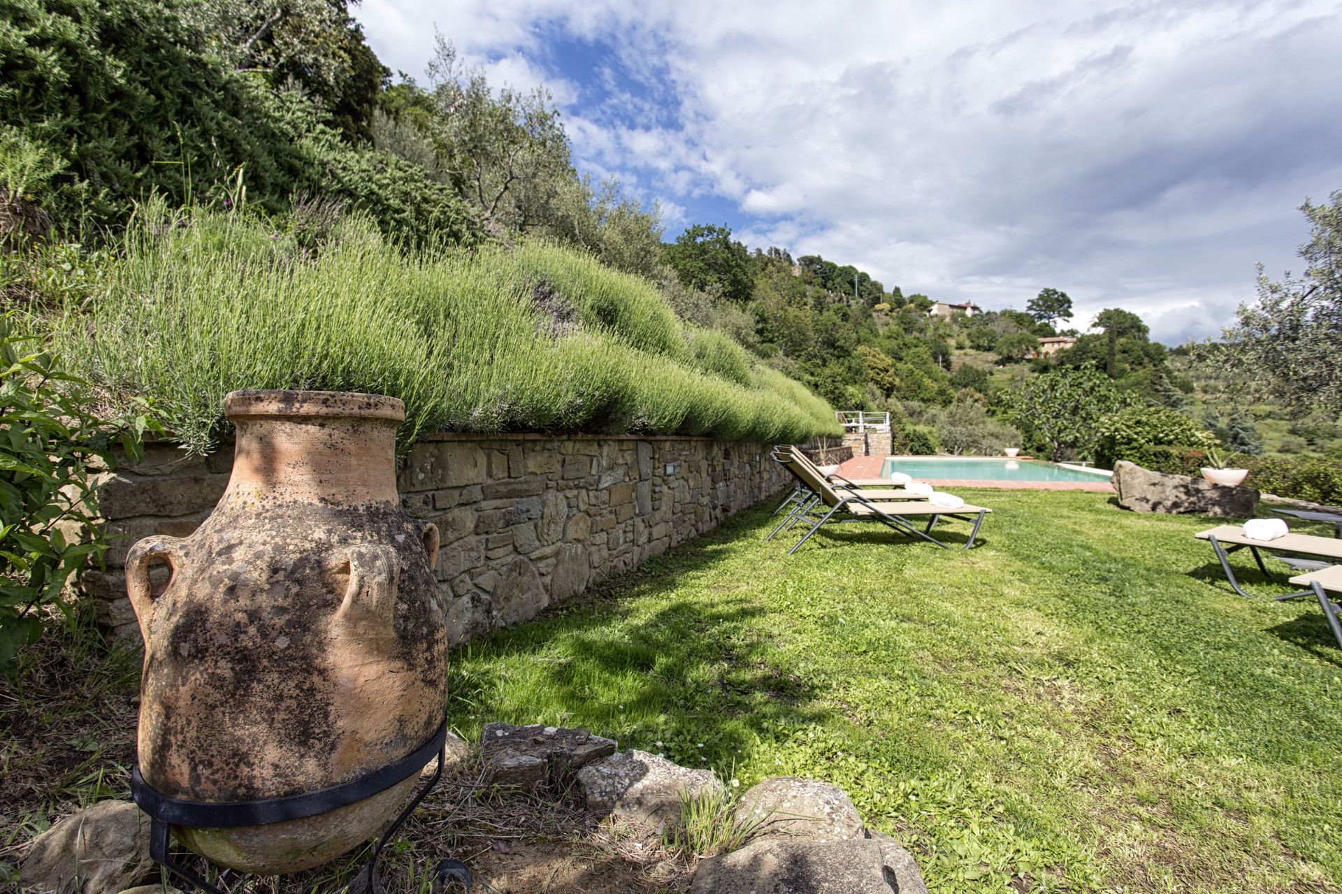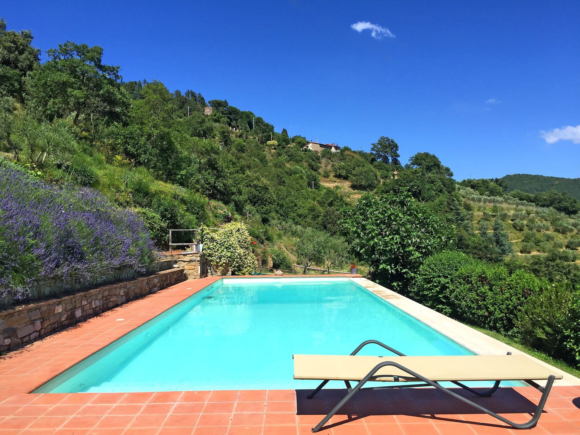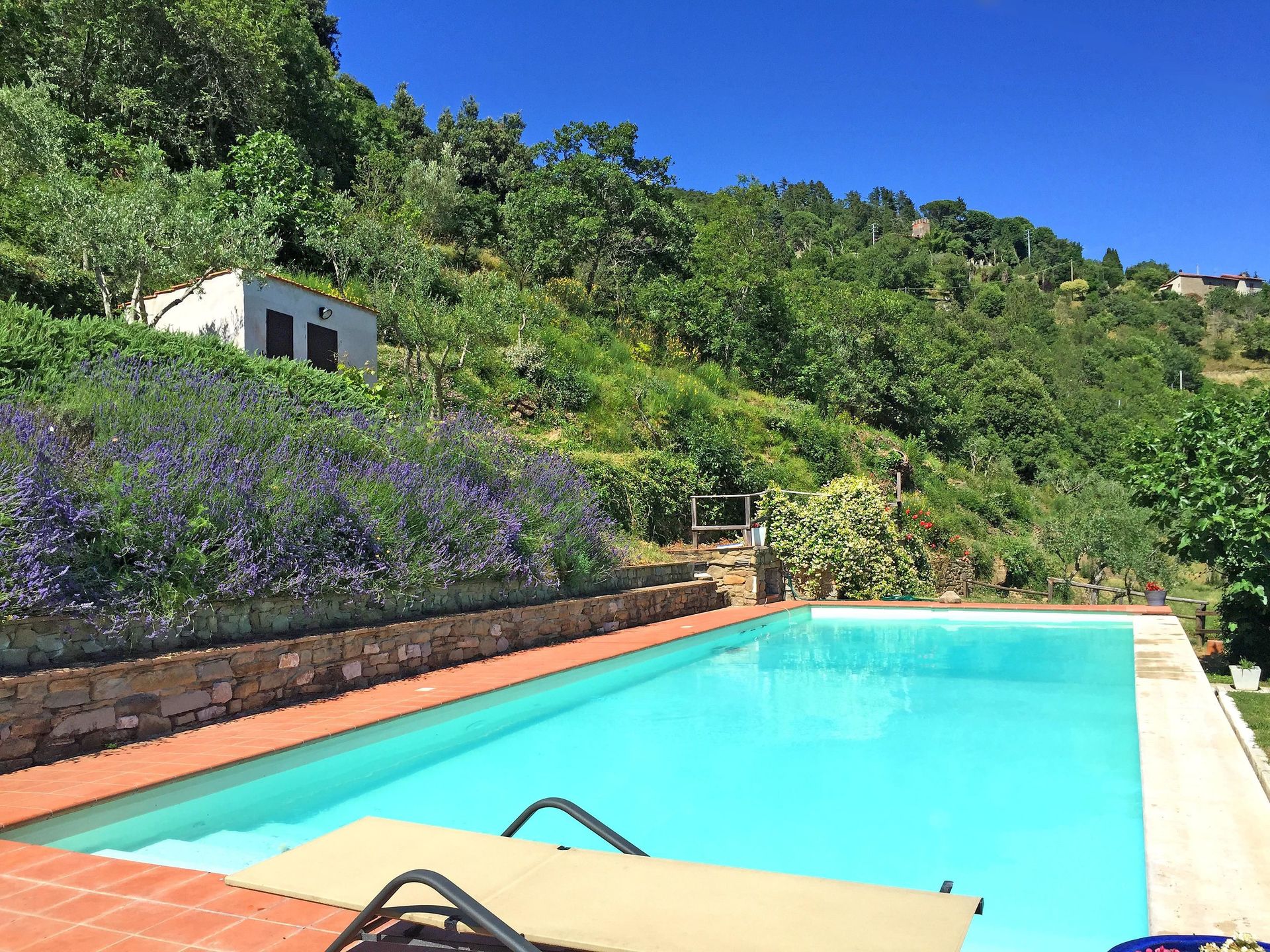Ved ankomst vil I møde en fin ren velholdt ejendom med udsigt over bakkerne og bjergene perfekt til fredelig ferie i Toscana. Efter en hektisk dag med shopping, er det dejligt at nyde lidt tid med venner og familie ved kanten af poolen med et glas vin - det er en perfekt måde at slappe af på sidst på dagen. At spise med venner og familie er en kæmpe del af den toskanske kultur. Benyt det velekviperede køkken til madlavning med lokale produkter, når du er på ferie. Køkkenet indeholder kaffemaskine, mikroovn, brødrister, komfur og køleskab, samt, masser af service og bestik til op til ti personer. Spis 'al fresco' som en ægte toskaner. Den fuldt møblerede terrasse er det ideele sted for at nyde sit måltid, familien og det fine toskanske vejr.