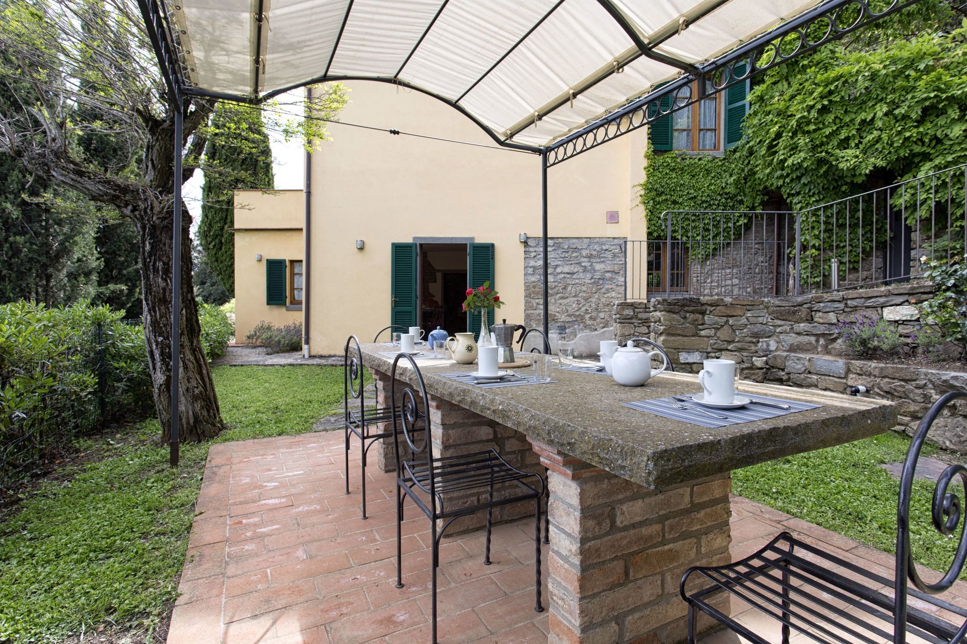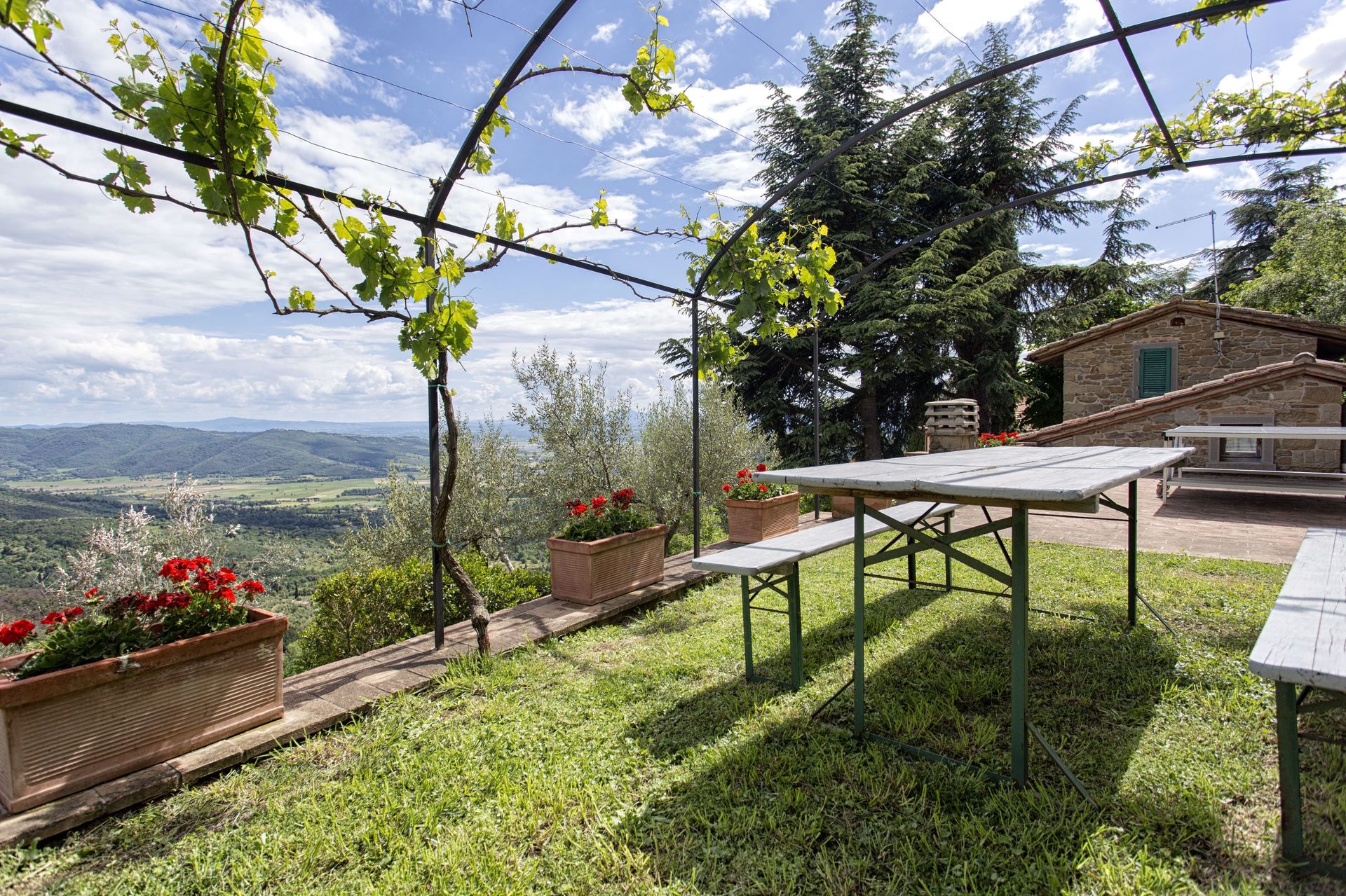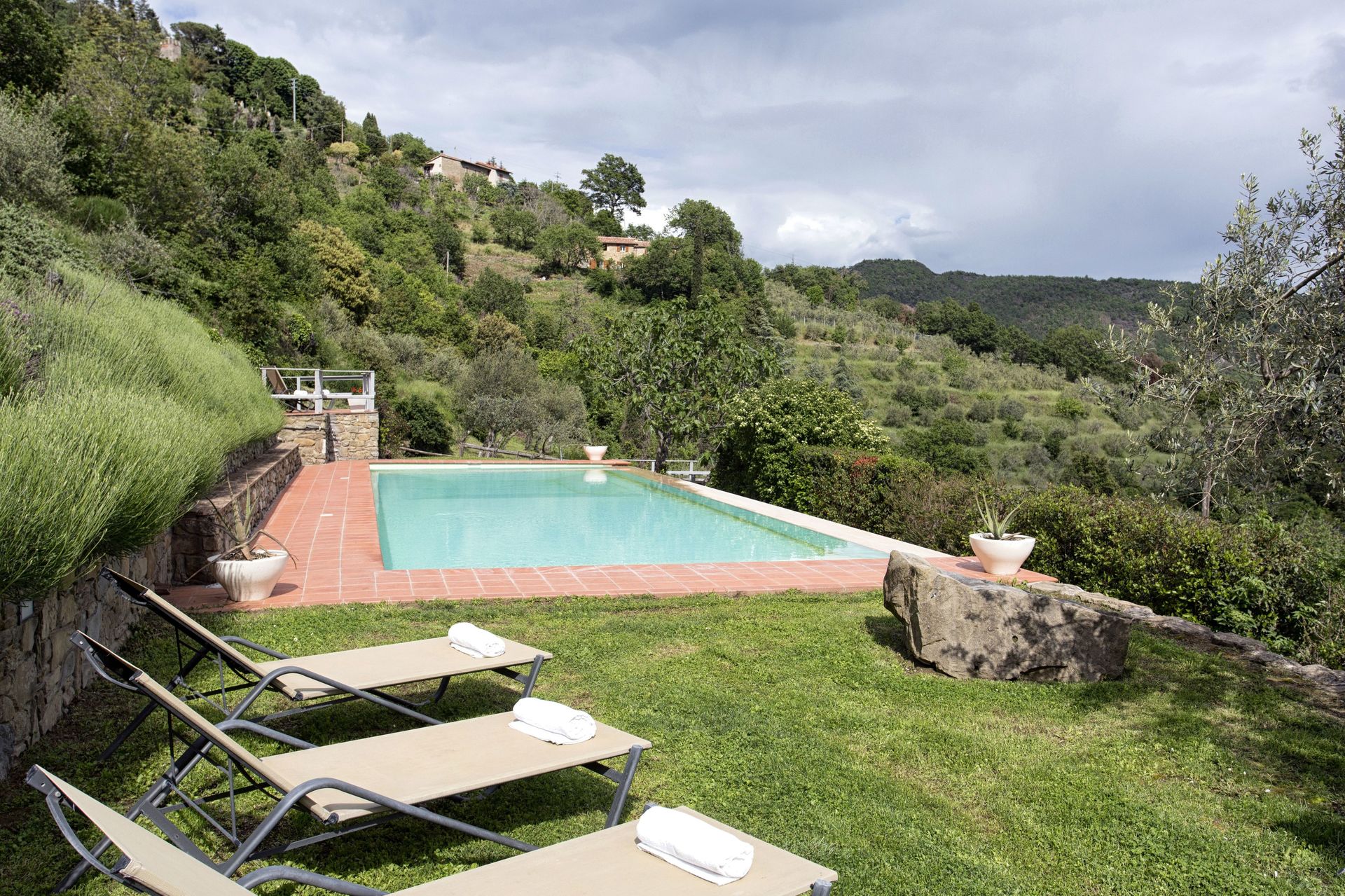 Ved ankomst vil I møde en fin ren velholdt ejendom med udsigt over bakkerne og bjergene perfekt til fredelig ferie i Toscana. Efter en hektisk dag med shopping, er det dejligt at nyde lidt tid med venner og familie ved kanten af poolen med et glas vin - det er en perfekt måde at slappe af på sidst på dagen. At spise med venner og familie er en kæmpe del af den toskanske kultur. Benyt det velekviperede køkken til madlavning med lokale produkter, når du er på ferie. Køkkenet indeholder kaffemaskine, mikroovn, brødrister, komfur og køleskab, samt, masser af service og bestik til op til ti personer. Spis 'al fresco' som en ægte toskaner. Den fuldt møblerede terrasse er det ideele sted for at nyde sit måltid, familien og det fine toskanske vejr.
