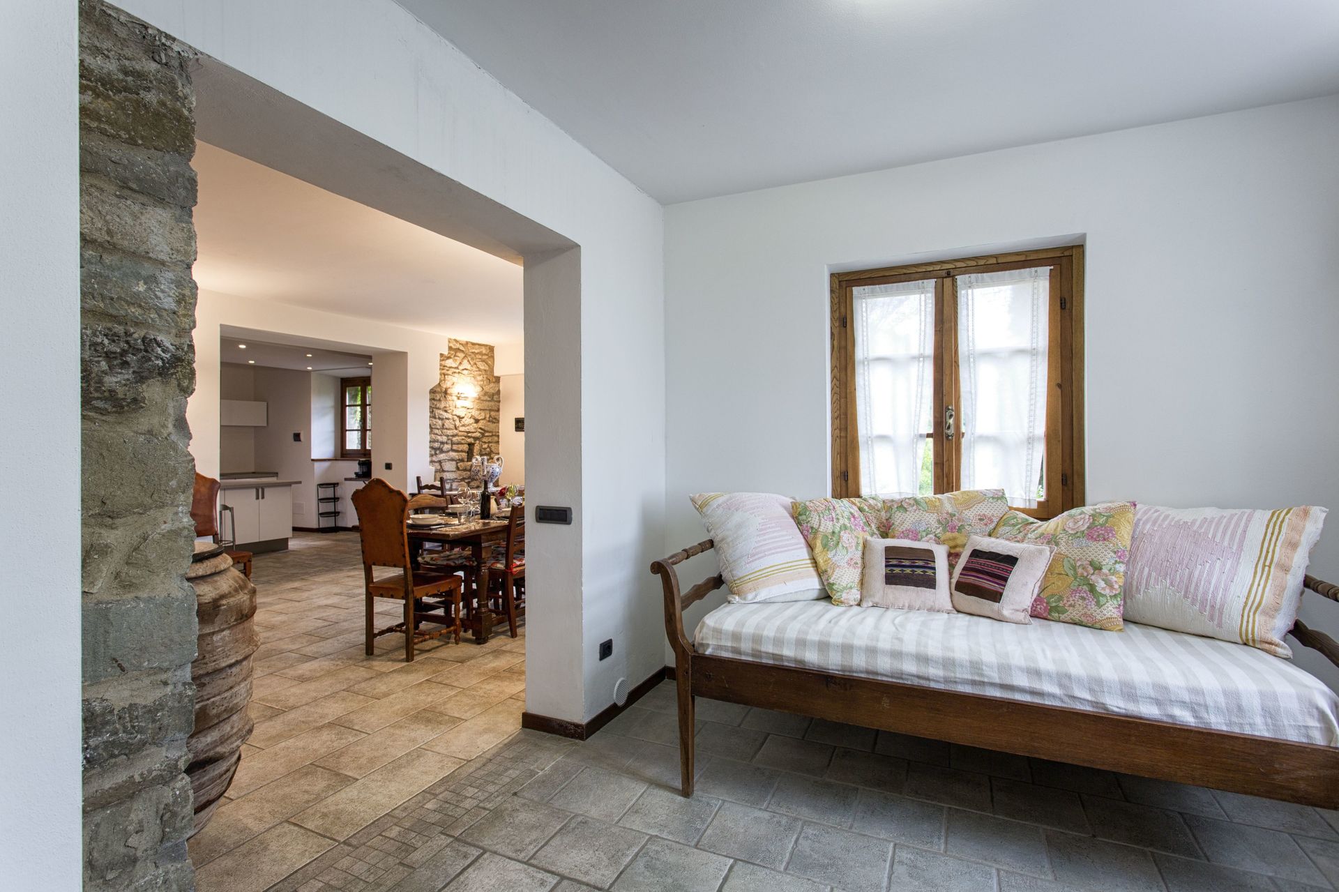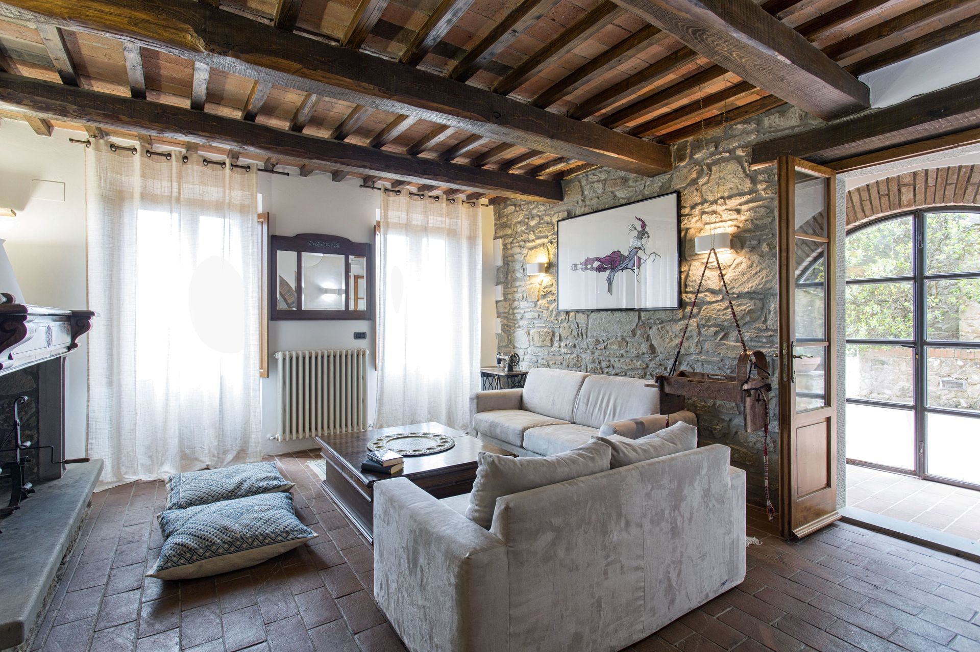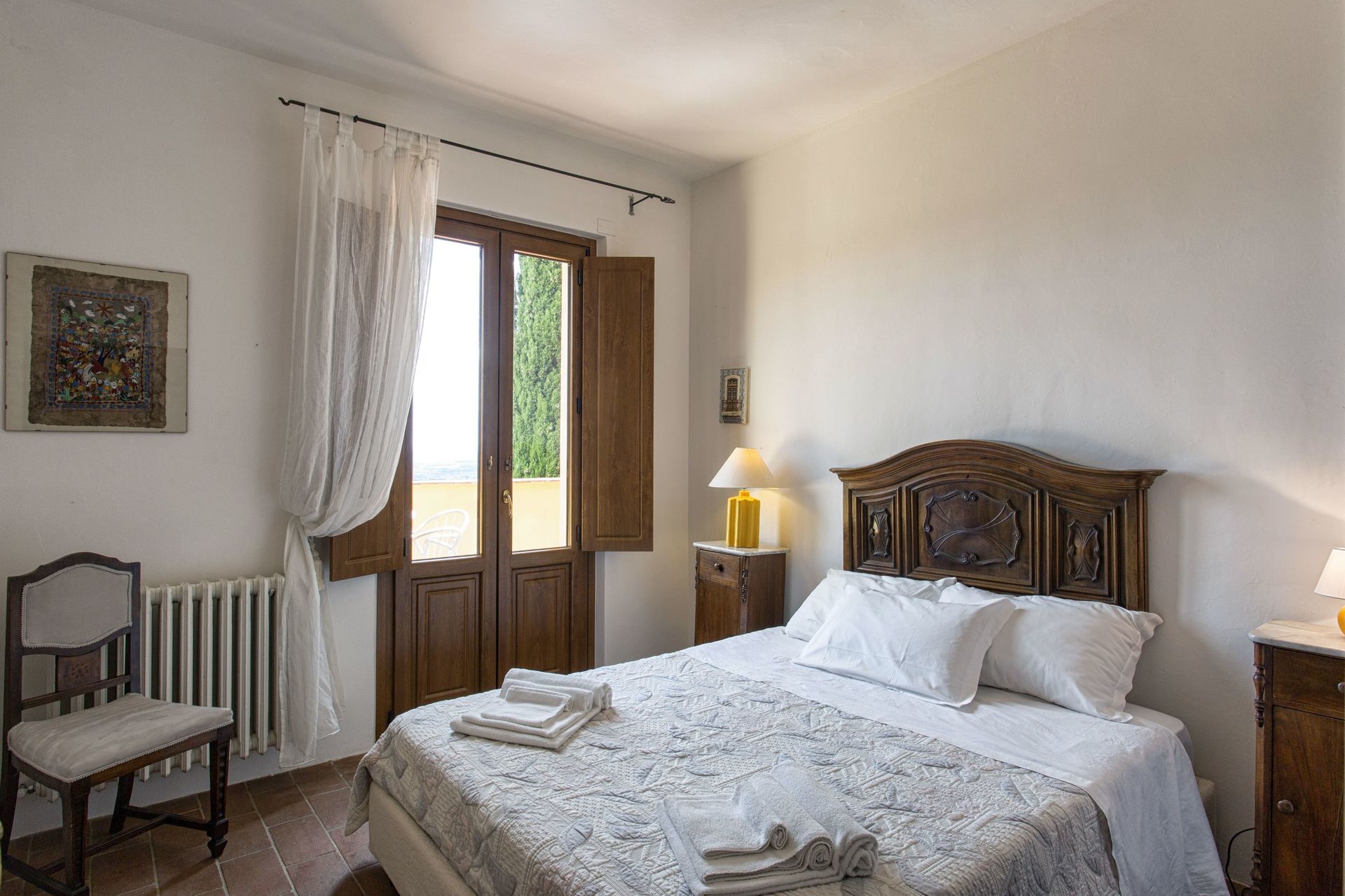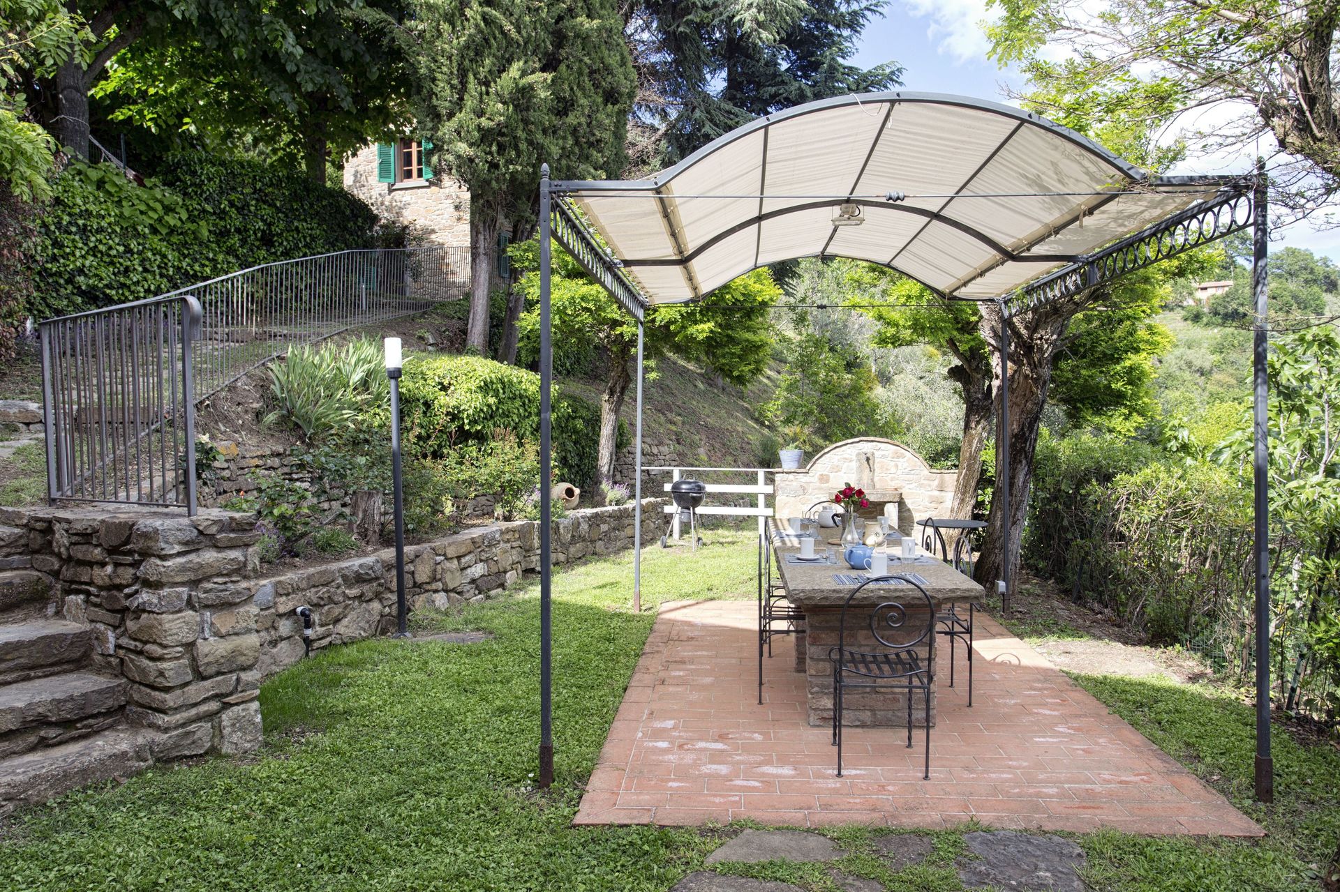 Ved ankomst vil I møde en fin ren velholdt ejendom med udsigt over bakkerne og bjergene perfekt til fredelig ferie i Toscana. Efter en hektisk dag med shopping, er det dejligt at nyde lidt tid med venner og familie ved kanten af poolen med et glas vin - det er en perfekt måde at slappe af på sidst på dagen. At spise med venner og familie er en kæmpe del af den toskanske kultur. Benyt det velekviperede køkken til madlavning med lokale produkter, når du er på ferie. Køkkenet indeholder kaffemaskine, mikroovn, brødrister, komfur og køleskab, samt, masser af service og bestik til op til ti personer. Spis 'al fresco' som en ægte toskaner. Den fuldt møblerede terrasse er det ideele sted for at nyde sit måltid, familien og det fine toskanske vejr.