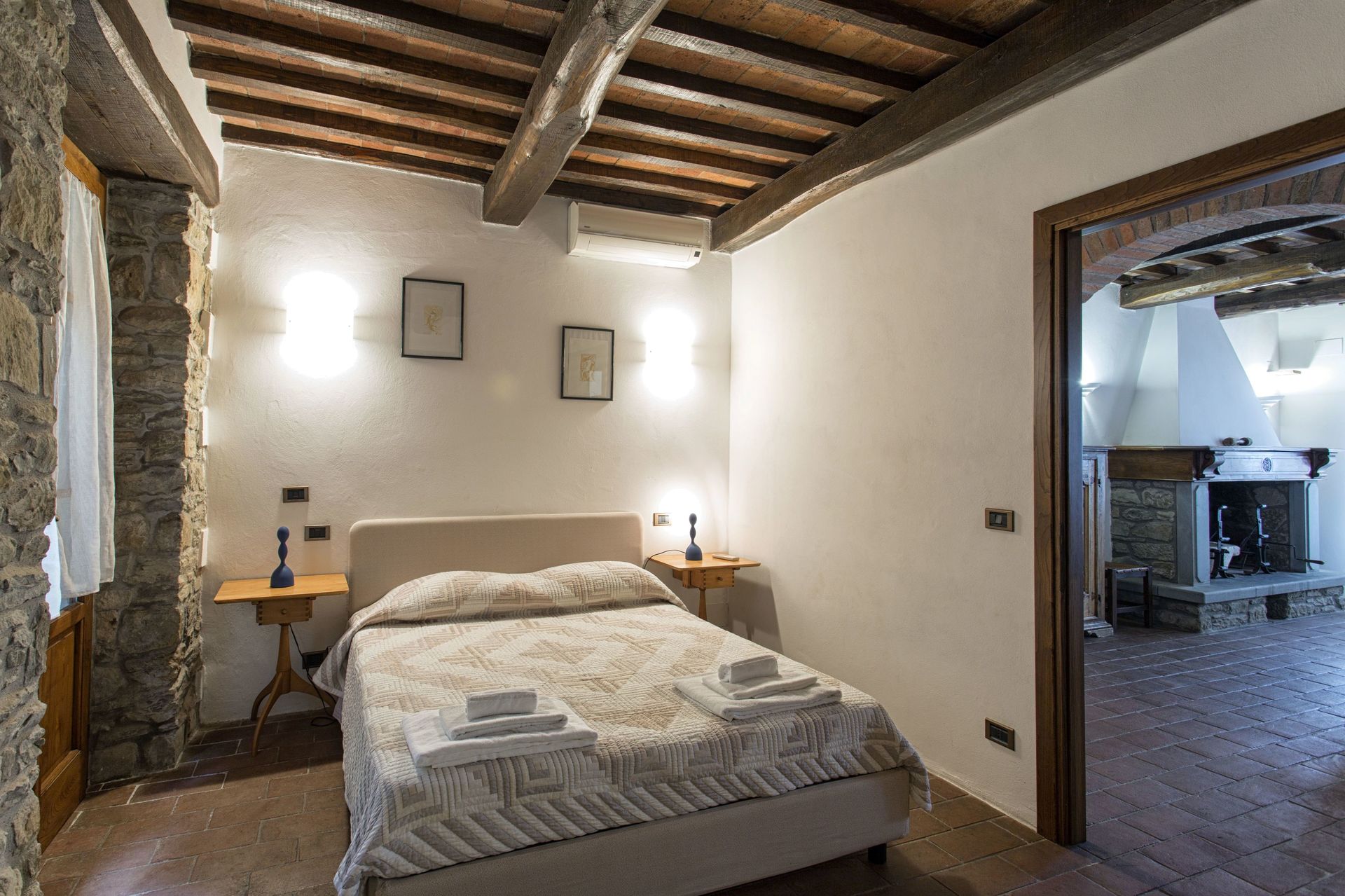 Stue: sofa (personer: 4), kamin, dobbelt sovesofa, klimaanlæg, udgang til terrasse.