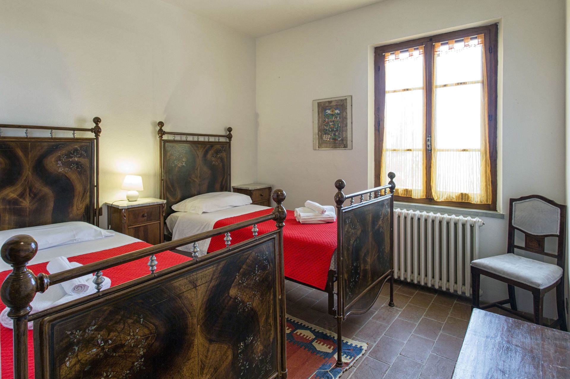 Soveværelse med bad 2: to enkeltsenge, WIFI internet, klimaanlæg, vask, wc, bidet, bruser, hårtørrer.