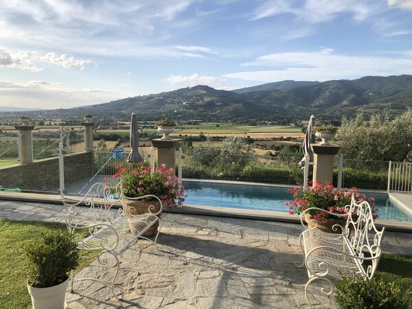 Had a wonderful week at this villa. Everything about the property is first class. Our host met us at the villa to give us the keys & explain all the features. This is a gated villa. The views are incredible as the villa is up high on a hill. You can see Cortona from the villa. All of the decorations were beautiful. The bathroom/showers were very clean & really nice. The beds were comfortable. Plenty of room everywhere to relax. The kitchen has all the things you need to cook with. There is a washing machine also. We sat by the pool in the sun. Very relaxing too. There are 2 TV’s and 2 areas with sofas to hang out in. The entire property is pretty spectacular.