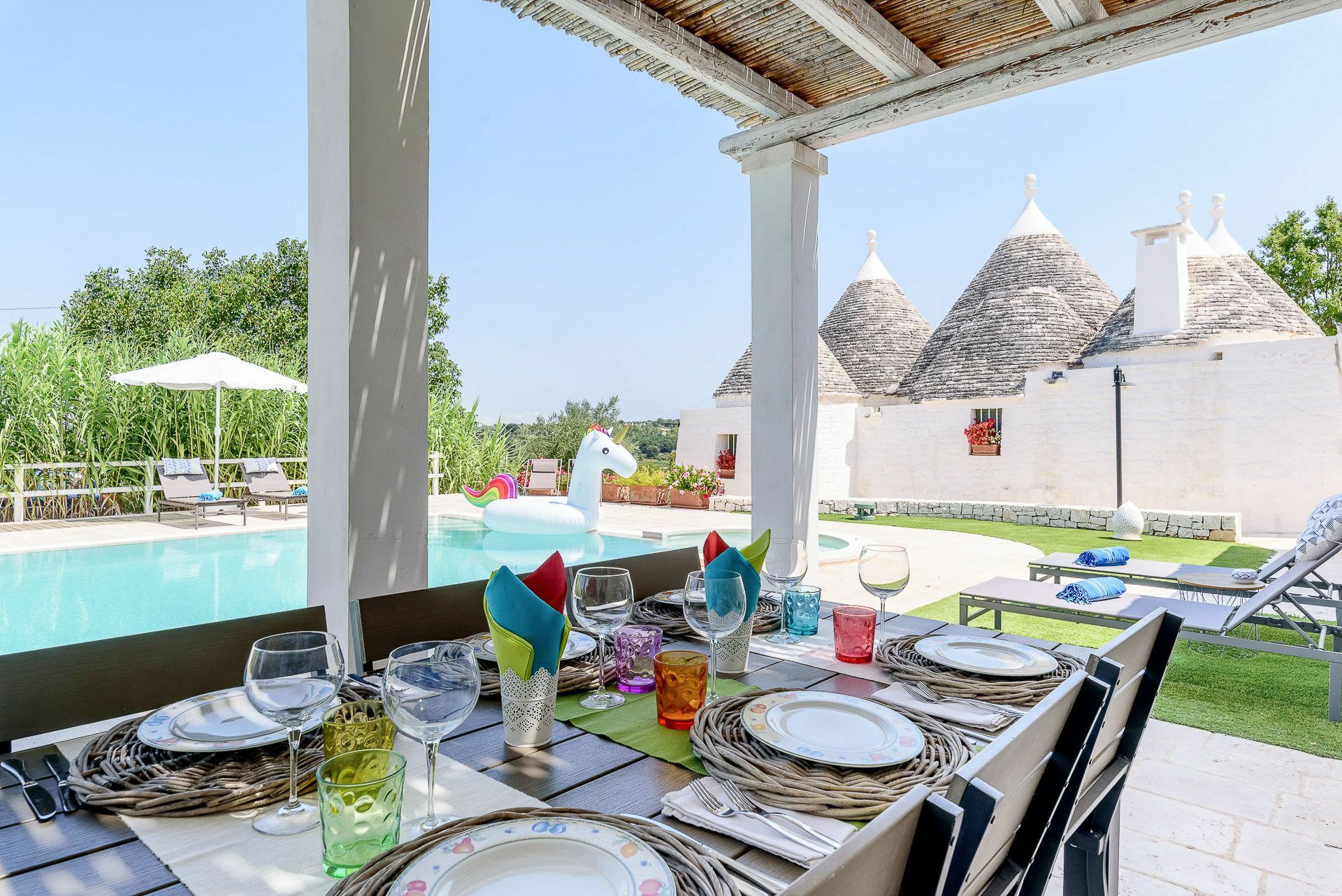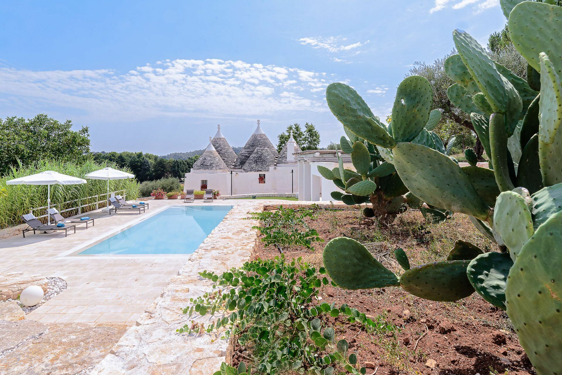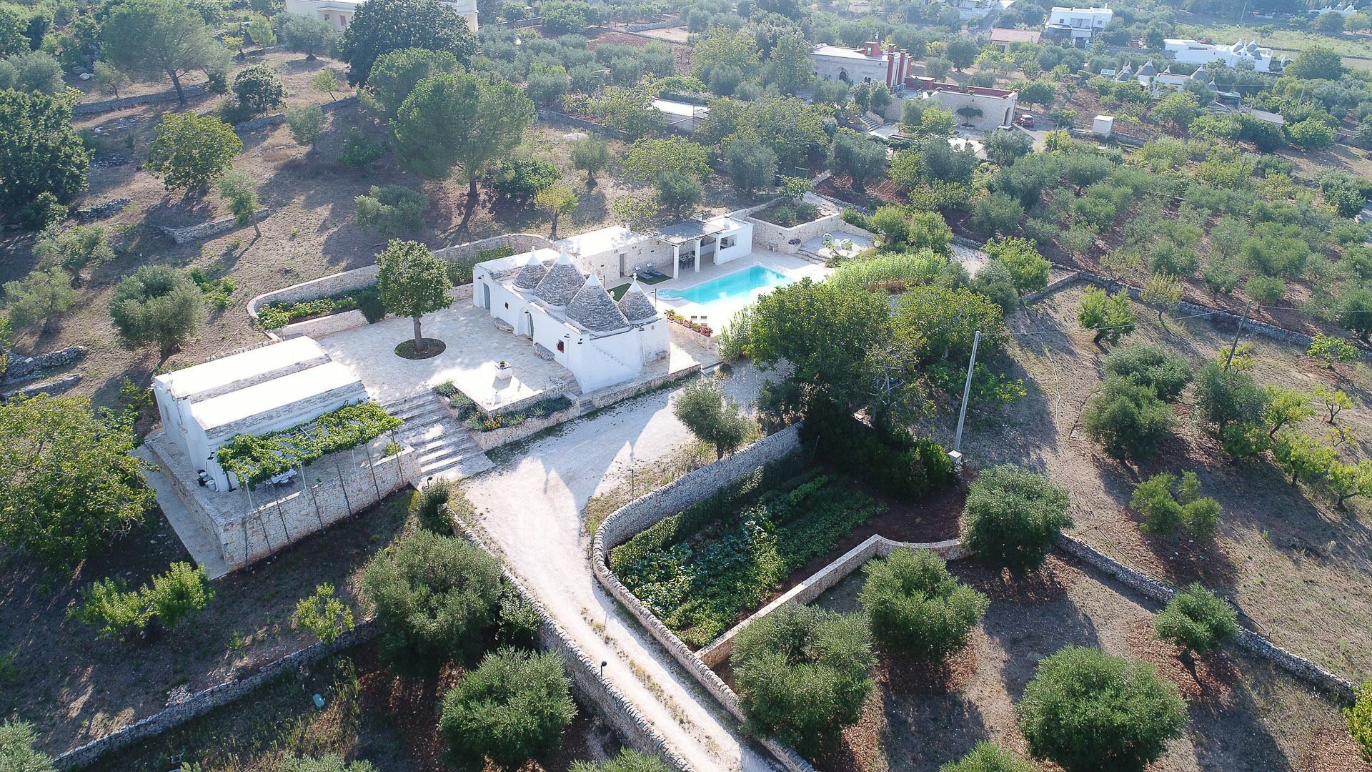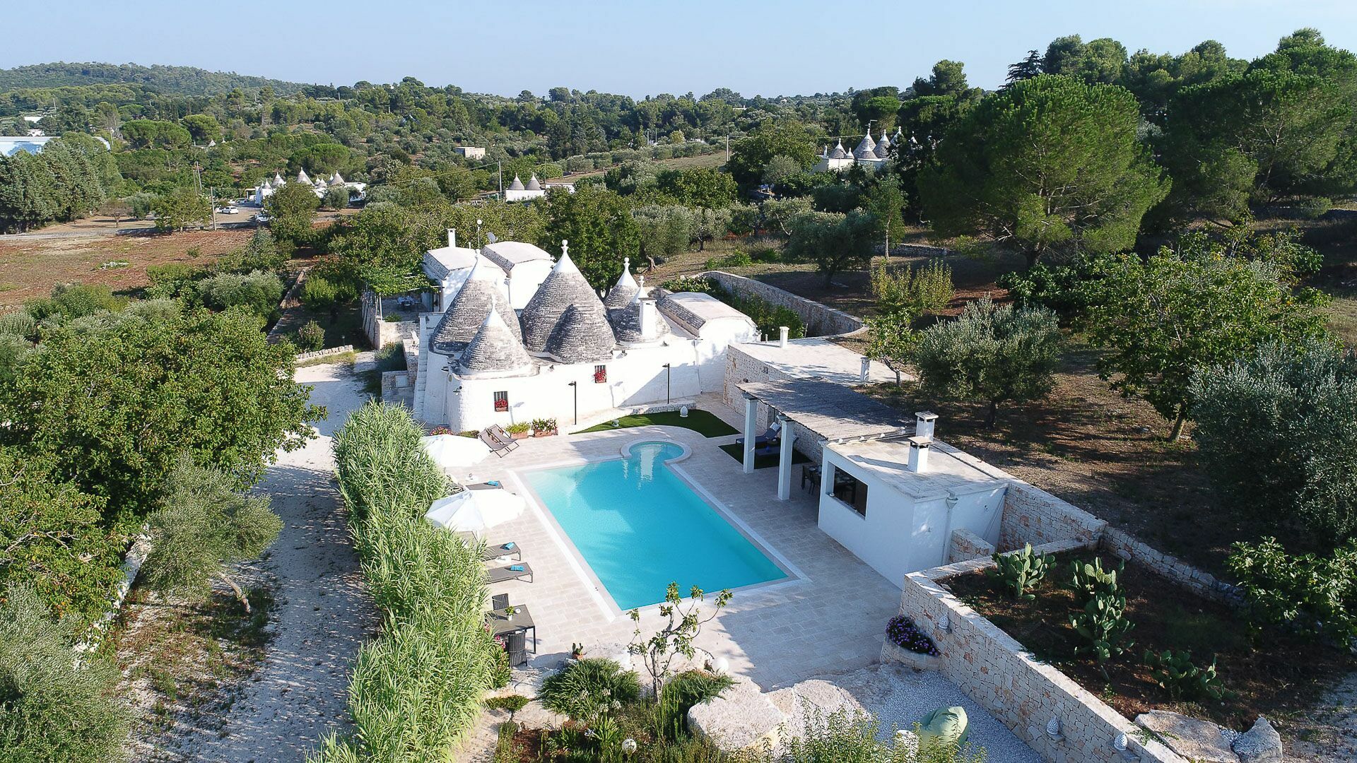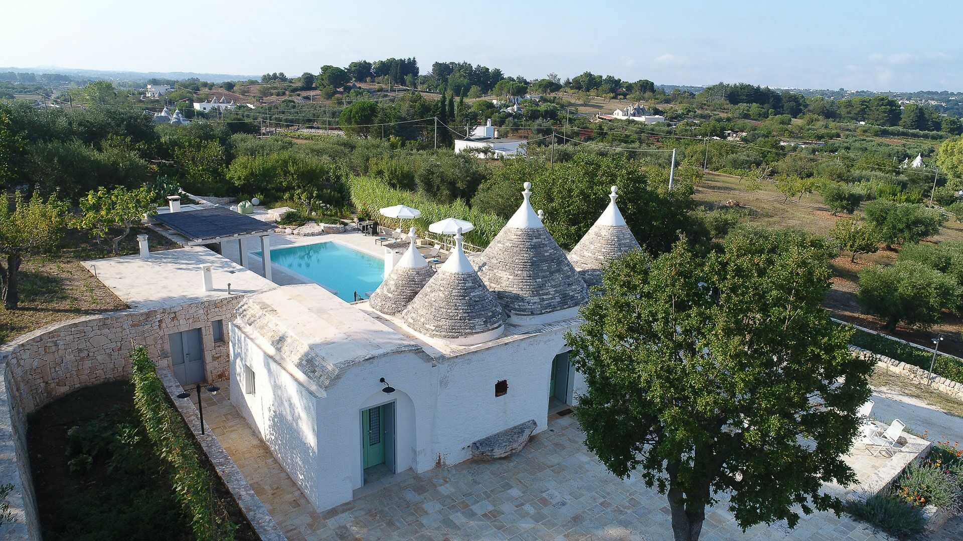 As soon as you arrive you can admire the splendid landscape, centuries-old olive trees all around the property and trulli scattered throughout the verdant valley. A landscape to take your breath away, a peace where you can enjoy your summer holidays in complete relaxation, in search of the beauties that this wonderful land can offer.