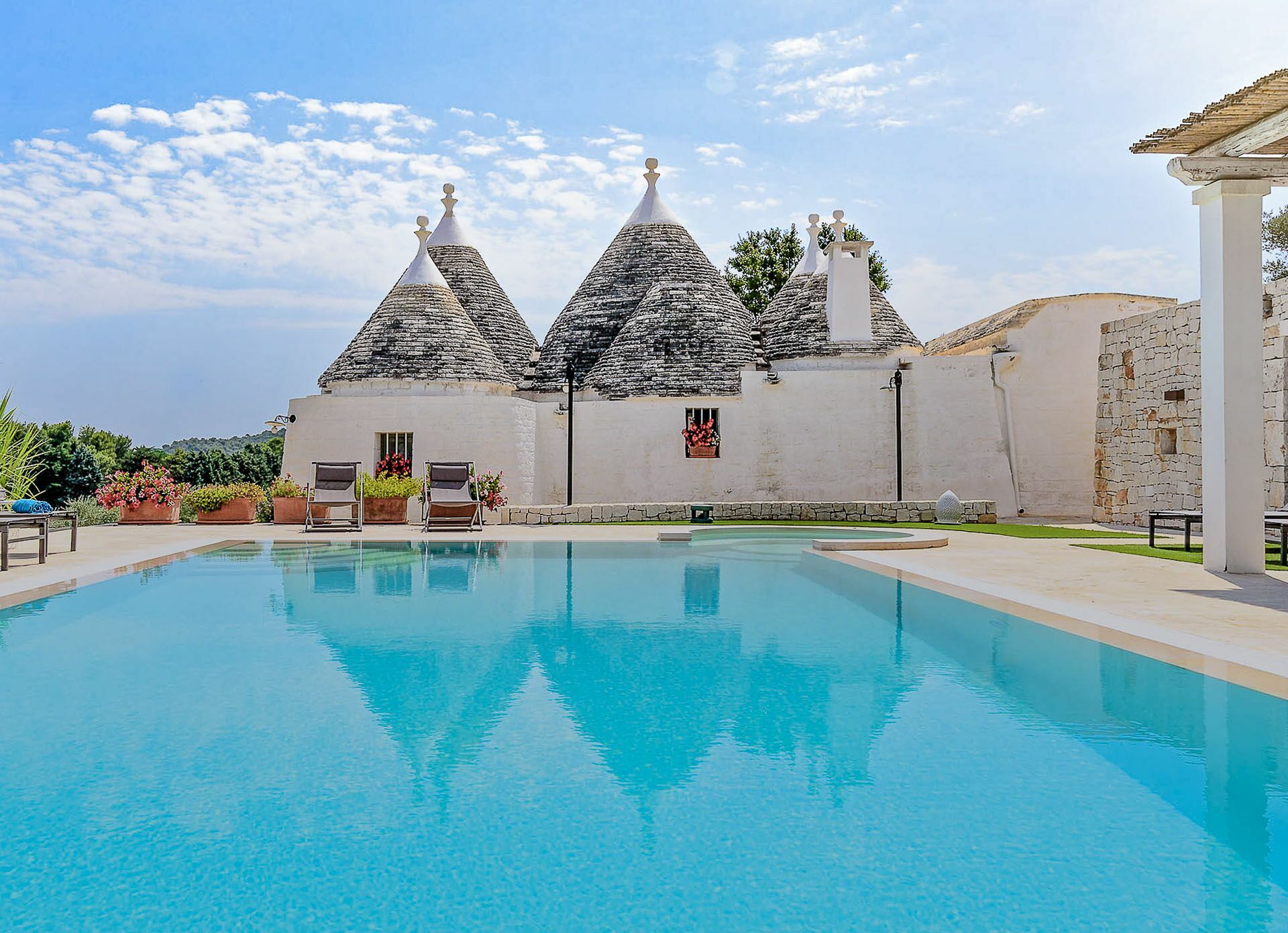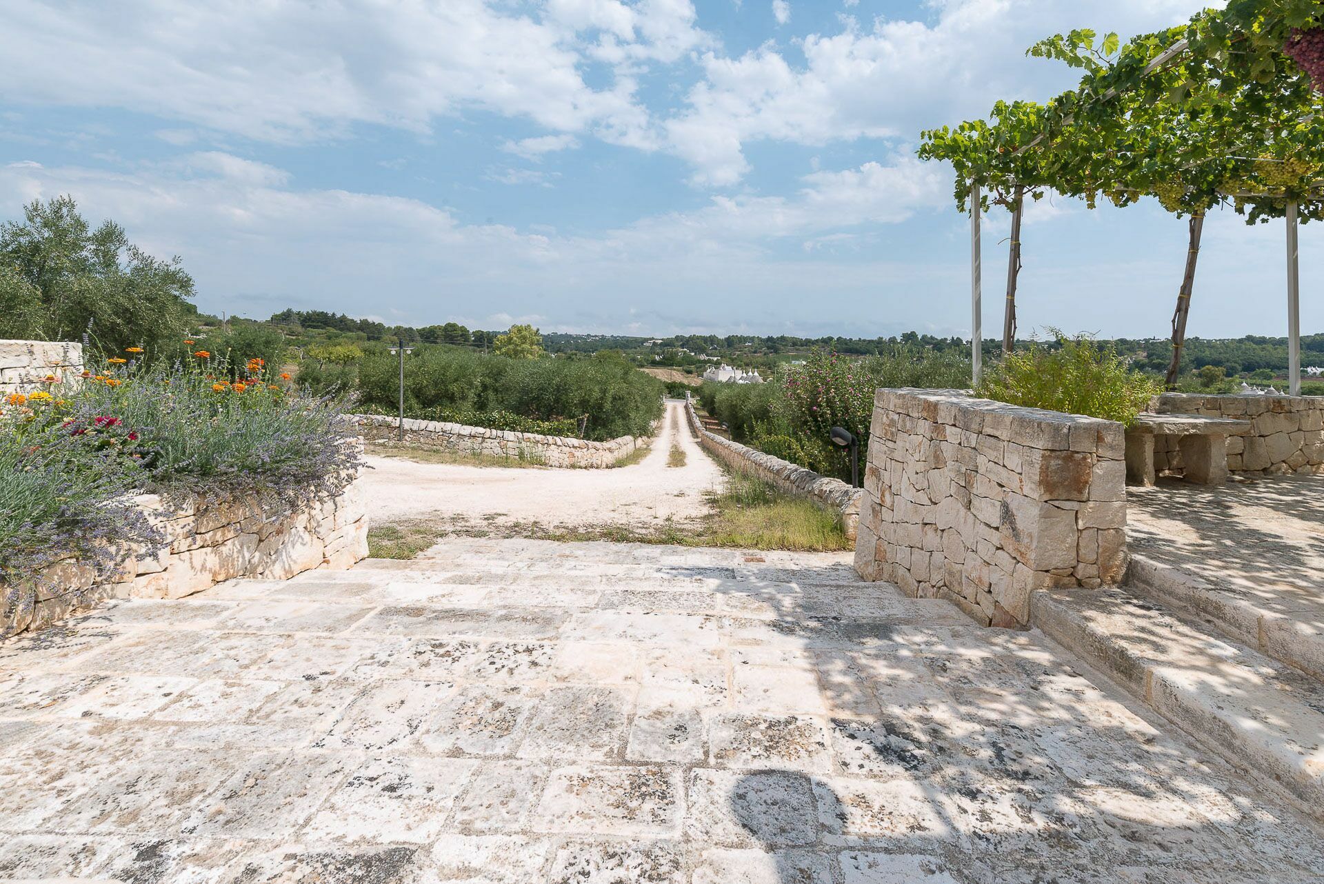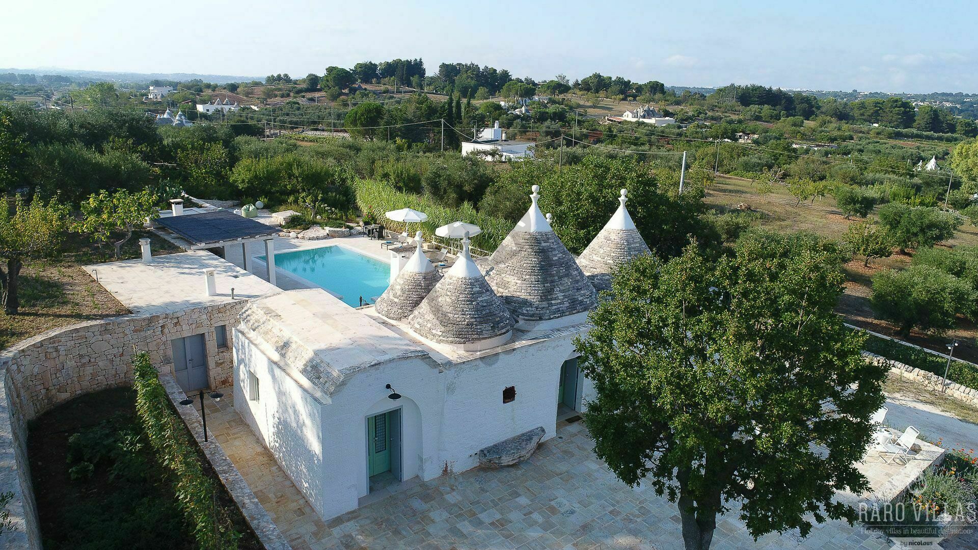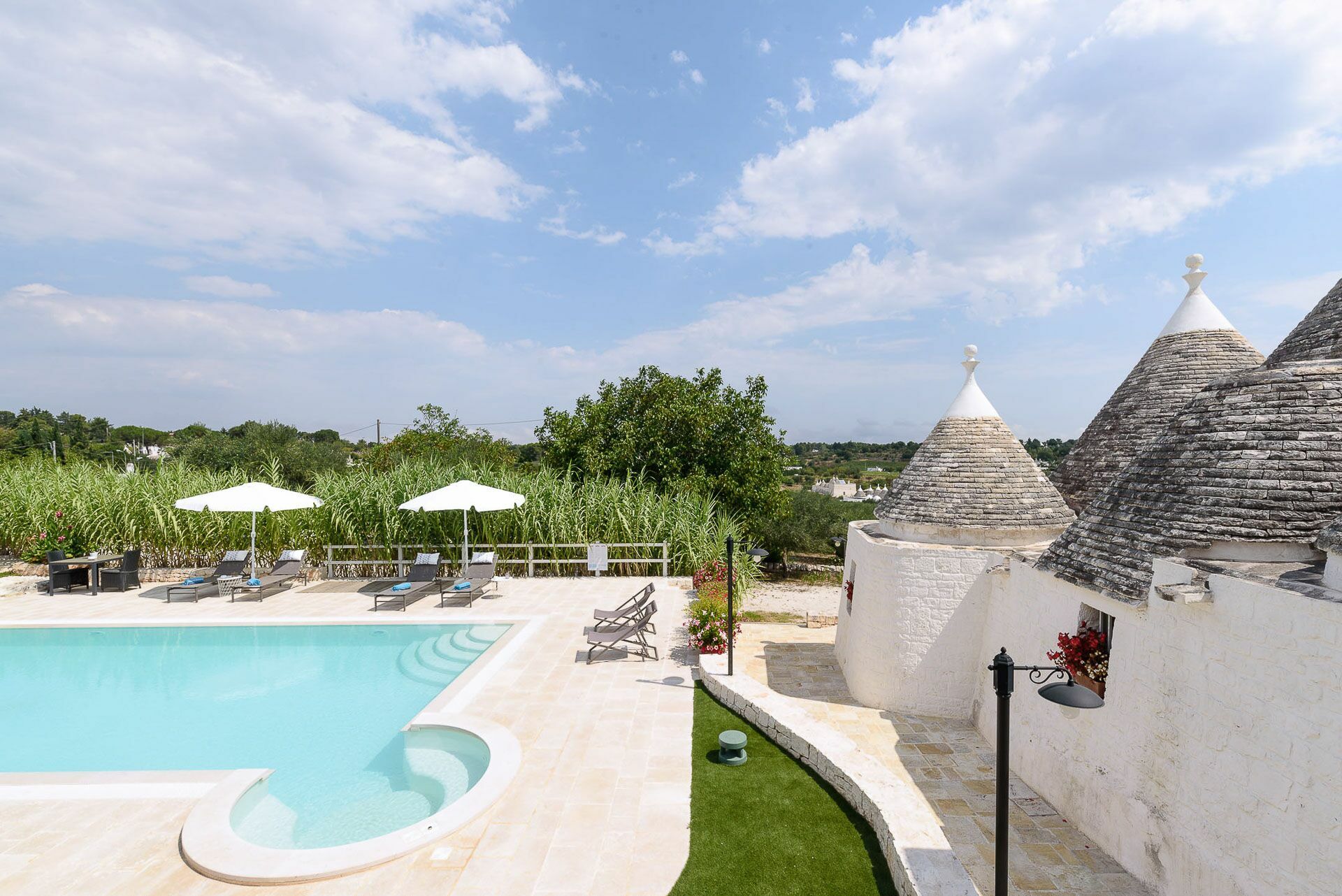 As soon as you arrive you can admire the splendid landscape, centuries-old olive trees all around the property and trulli scattered throughout the verdant valley. A landscape to take your breath away, a peace where you can enjoy your summer holidays in complete relaxation, in search of the beauties that this wonderful land can offer.