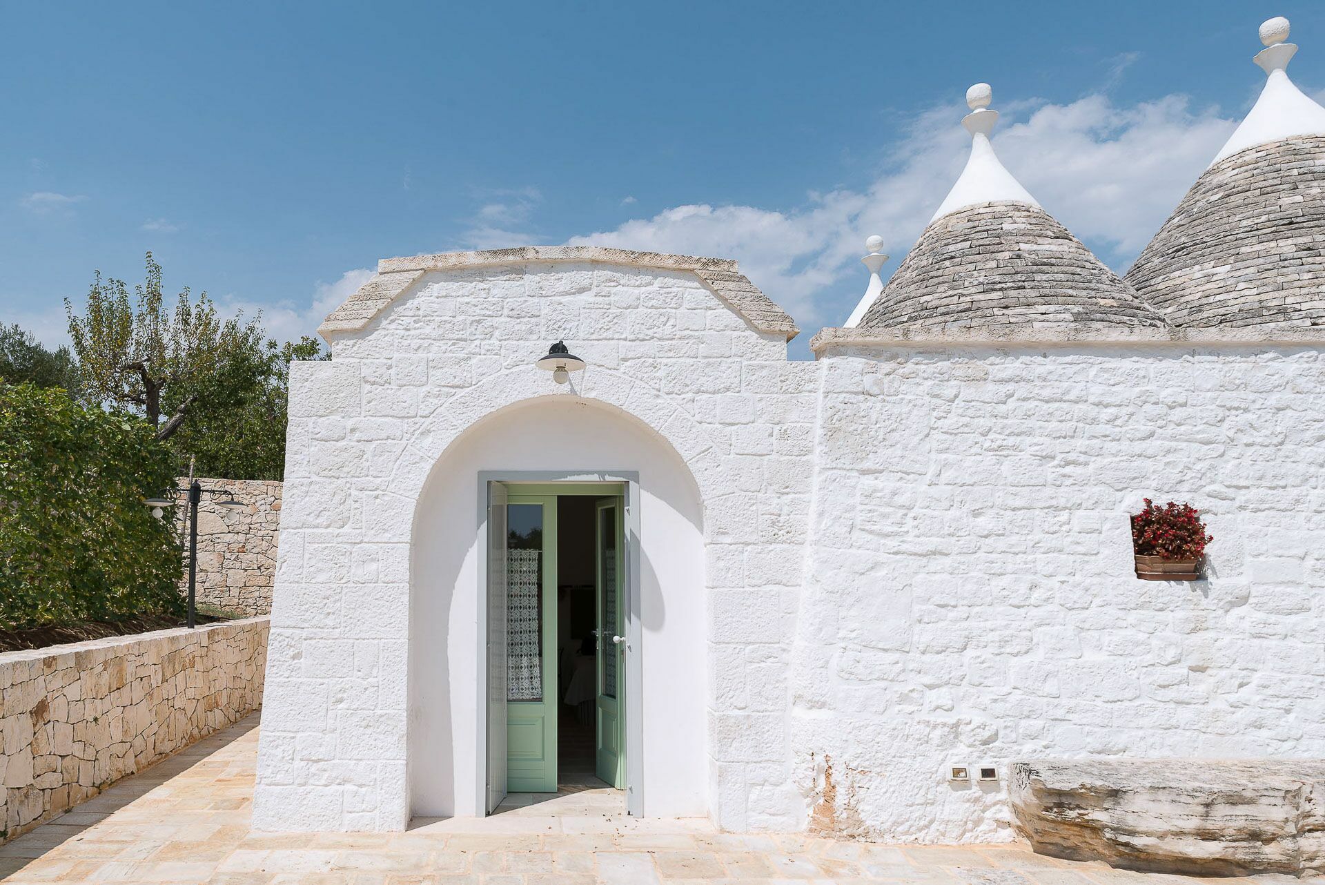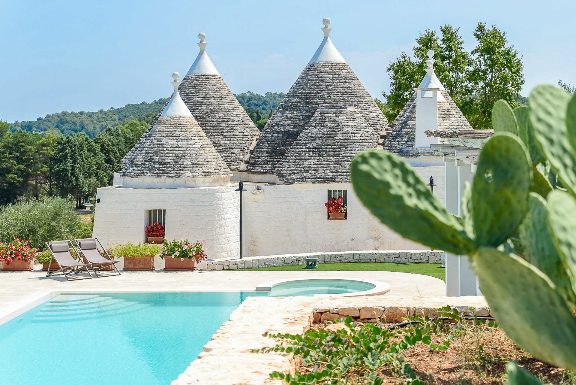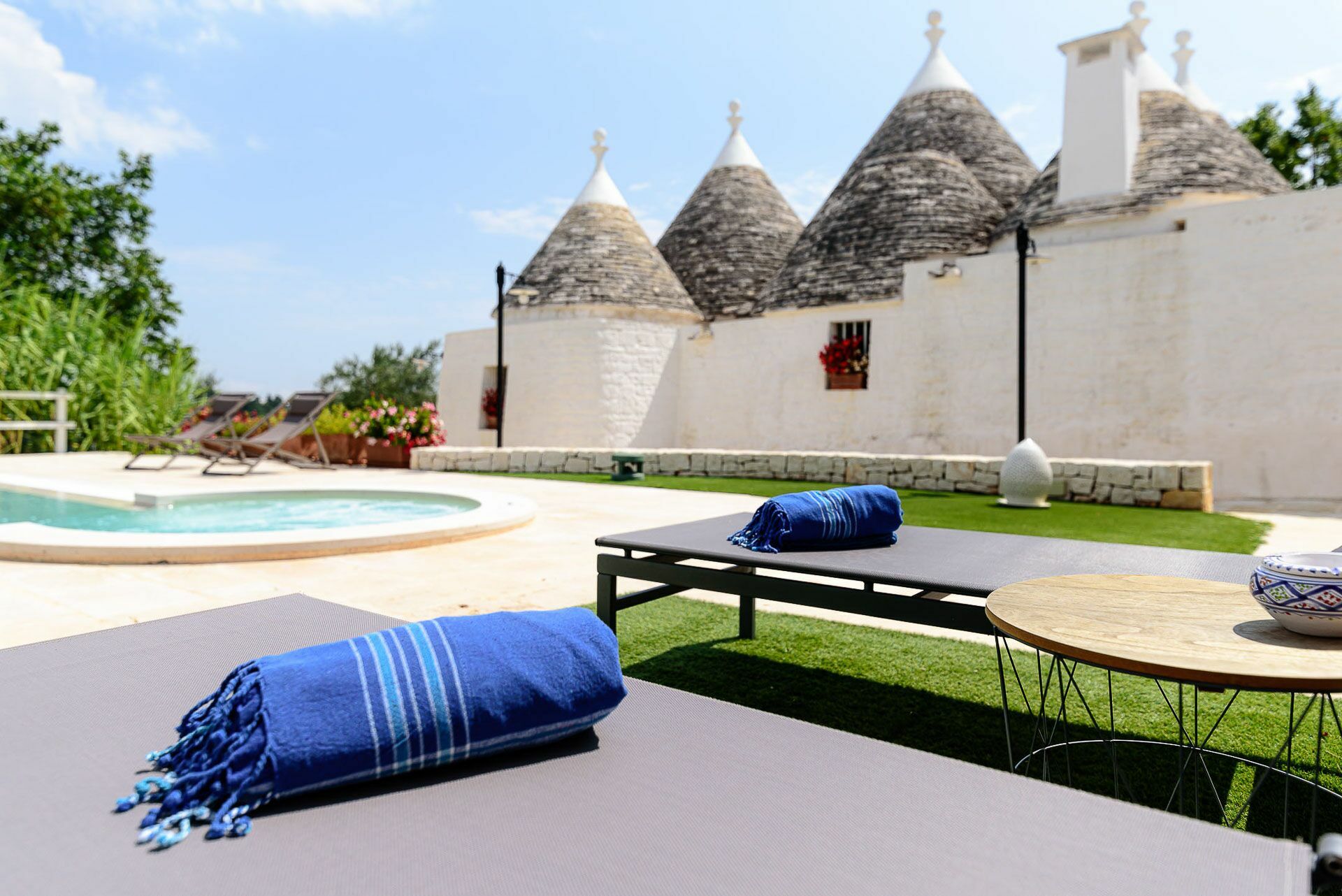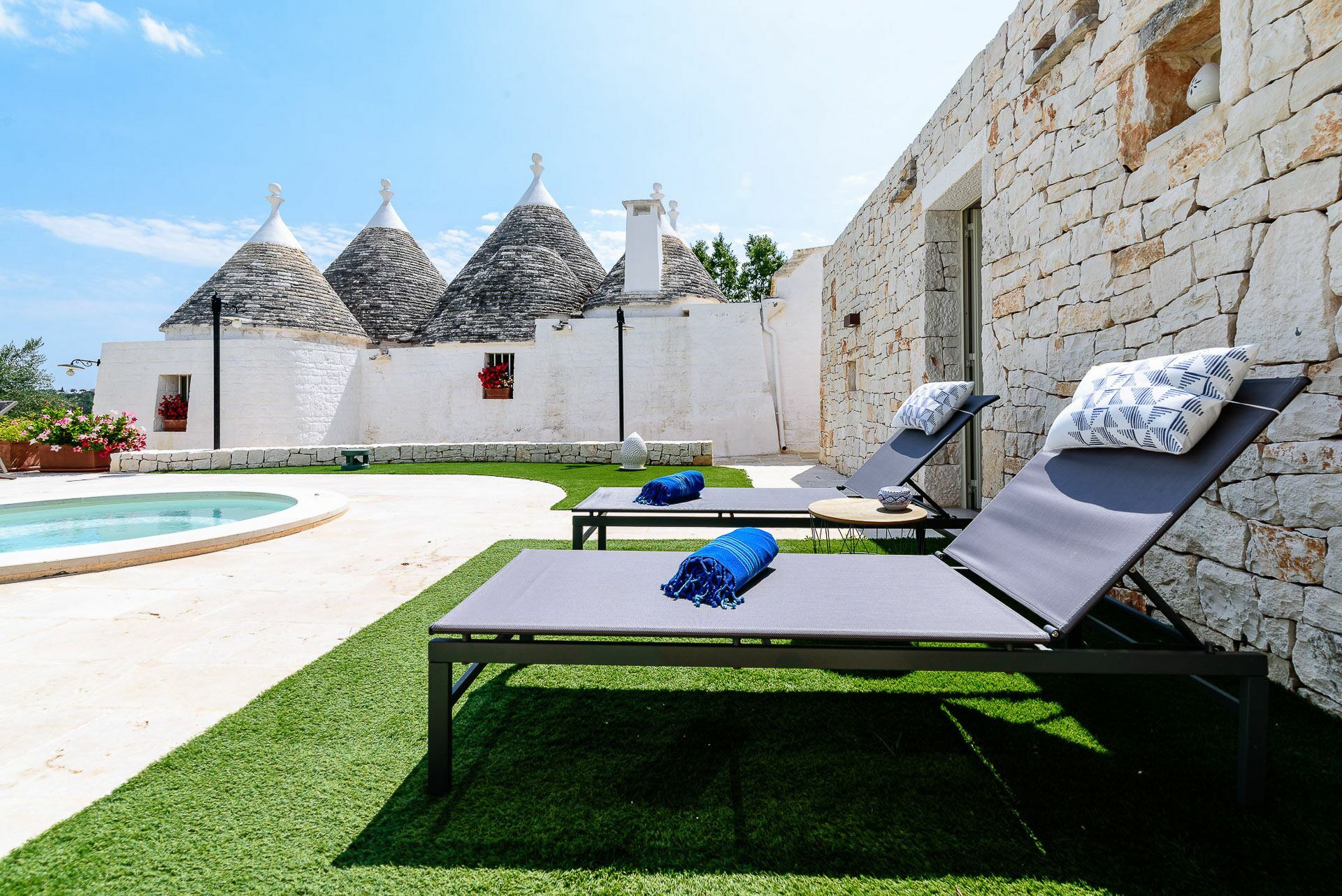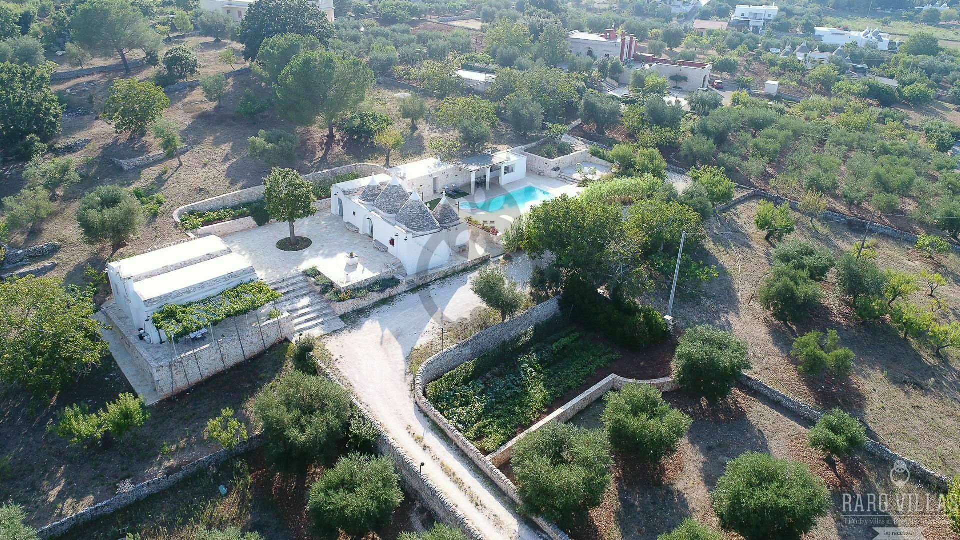 As soon as you arrive you can admire the splendid landscape, centuries-old olive trees all around the property and trulli scattered throughout the verdant valley. A landscape to take your breath away, a peace where you can enjoy your summer holidays in complete relaxation, in search of the beauties that this wonderful land can offer.
