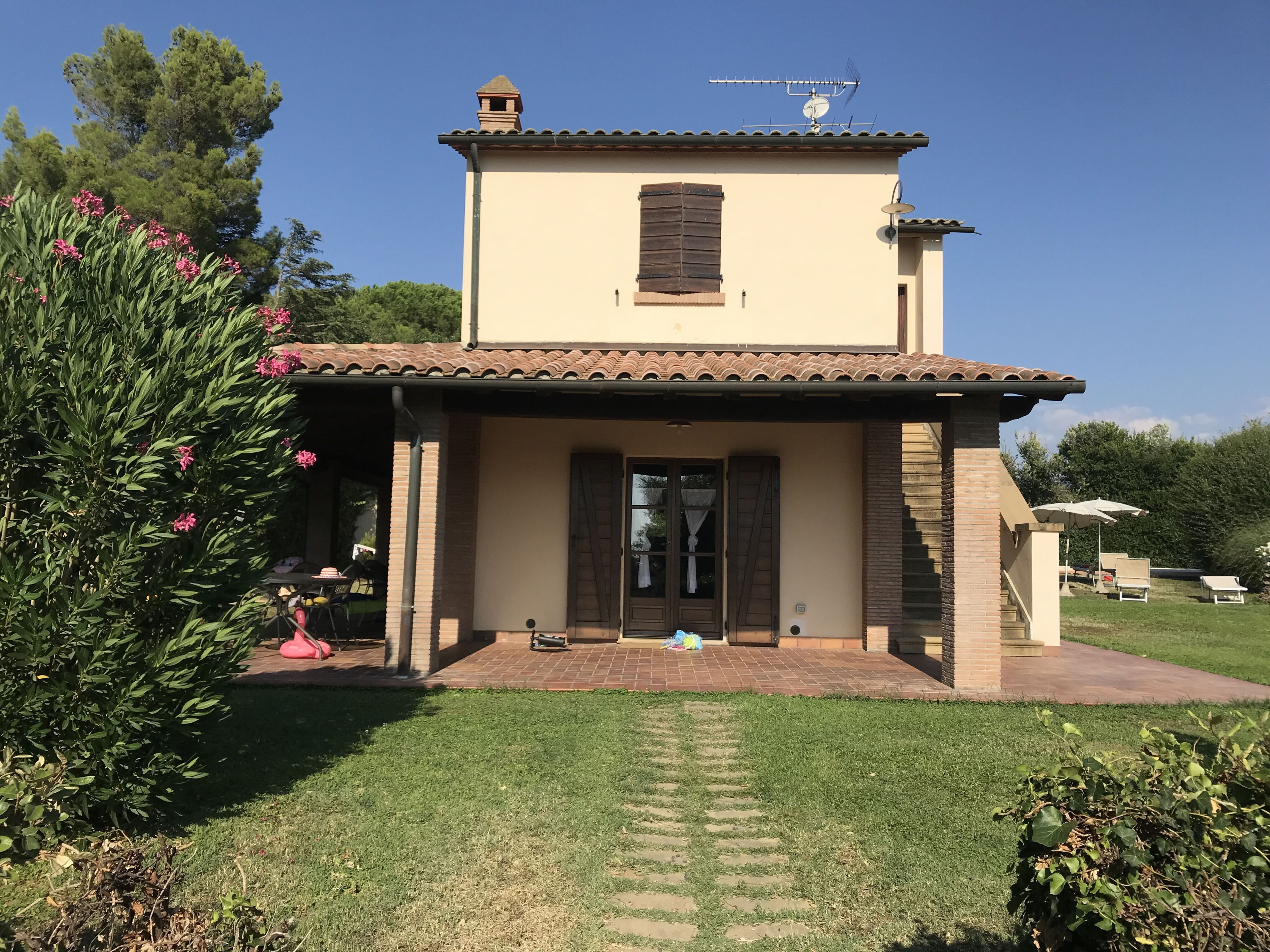Afstande: Bibbona med alle slags butikker 1,5 km, Cecina med fremragende restauranter 7 km, Bolgheri 5 km, den lille by Castagneto Carducci 10 km, Livorno 40 km, Volterra 50 km. De fine sandstrande i Marina di Bibbona ligger kun 5 km væk.