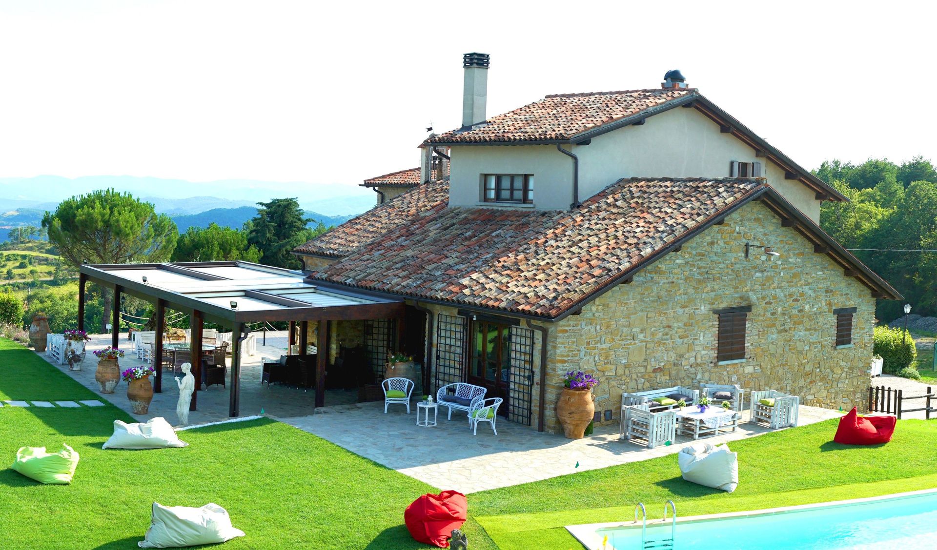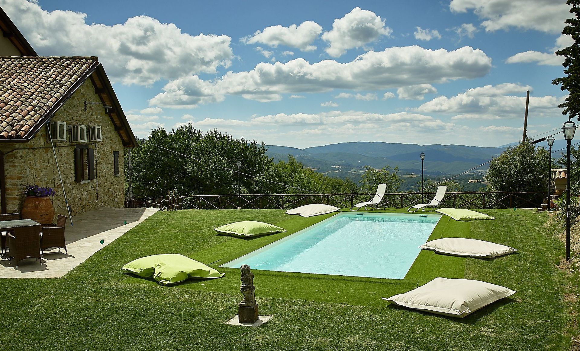Når I ankommer, vil I møde en skøn ren velholdt ejendom med udsigt over bakkerne perfekt til afslappende ferie i Umbrien. Uanset hvordan I tilbringer dagene - med shopping, sightseeing, museumsbesøg eller bare ved at køre rundt på landet, så kan I køle ned med familie og venner ved poolen, når I kommer hjem, hvilket er en perfekt måde at afslutte endnu en dejlig dag på i Umbrien. Udendørs vil I også finde barbecue og gårdhave. Hvis I nyder at lave mad til familie og venner så er der et veludstyret køkken inkluderet kaffemaskine, mikroovn, brødrister, komfur og køleskab, samt, , samt masser af service og bestik til op til 15 personer. Hvis I foretrækker at spise 'al fresco', er der en fuldt møbleret veranda, hvor I kan nyde vejret, mens I spiser udendørs.