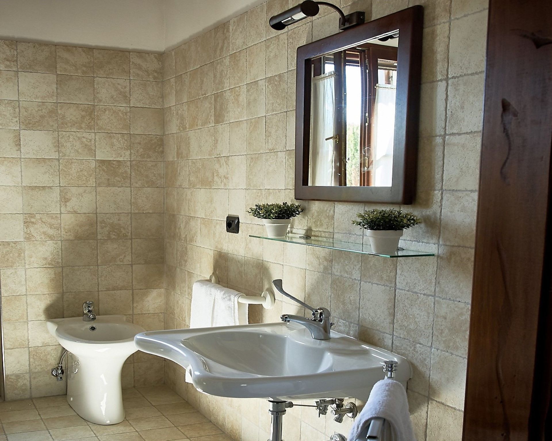 Badeværelse 2: vask, wc, bidet, bruser.