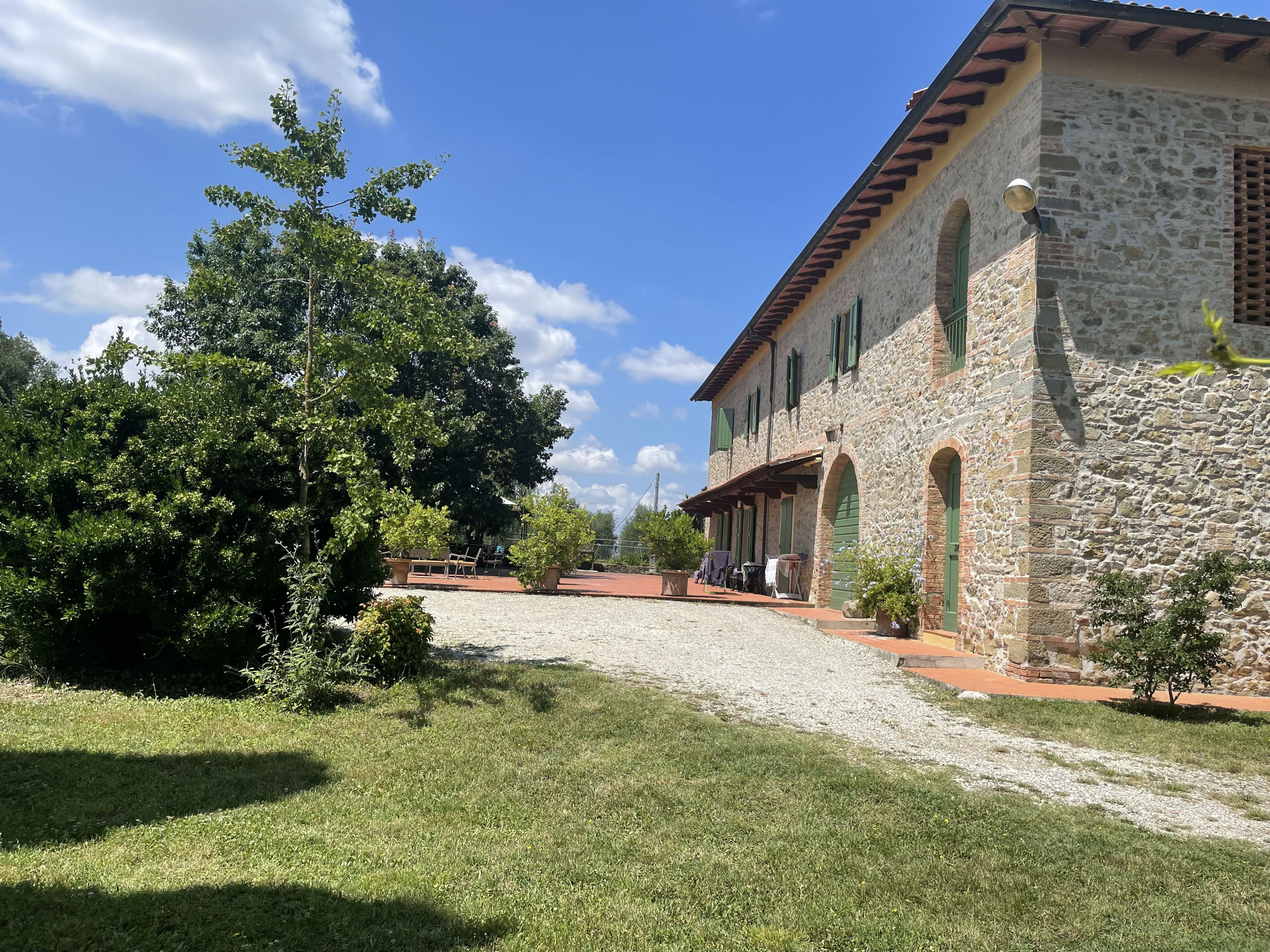 Udendørsarealerne på "Il Leccio" er blevet omhyggeligt arrangeret for at udnytte ejendommens højtliggende beliggenhed og naturlige omgivelser optimalt. Det sæsonbetingede svømmebassin på 6 x 12 meter med en dybde på 140 til 240 cm tilbyder en forfriskende flugt i de varmere måneder og fungerer som et naturligt midtpunkt for de ydre arealer. En hard tennisbane giver gæsterne en glimrende mulighed for at spille en aktiv kamp midt i det rolige landlige miljø. Pergola'en tilbyder et skyggerig og stemningsfuldt rum til afslapning, mens terrassen er møbleret med havestole og grill, hvilket gør det til et ideelt sted for spisning under åben himmel og afslappede sammenkomster. De omfattende arealer på 2 hektar, dækket af frodigt grønt, inviterer gæsterne til at udforske og slappe af i fuldstændig privatliv, med vidtstrakte udsigter over de toscanske bakker, der giver en konstant inspirerende baggrund.