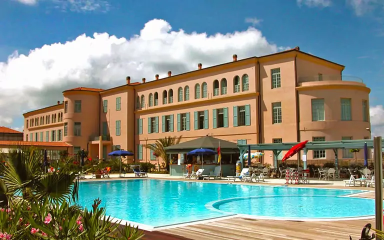 Denne fredede ferieboligen er blevet totalt renoveret og er berømt for sin fly-formede udseende. Det er en elegant, marmor-dekoreret bygning, der har en eksklusiv beliggenhed på stranden mellem sandbanker og buske. Komfortabelt residens "Suite 48". 2 km fra bymidten af Tirrenia, direkte ved havet, direkte adgang til stranden. Til medbenyttelse: pool indhegnet (15 x 20 m, 120 - 220 cm dyb, Sæsonbestemt tilgængelighed: 01.Jun. - 30.Sep., ekstra). Børnepool, privat strand. I huset: restaurant, bar, elevator. Parkeringsplads på grunden. Fødevarebutik, supermarked, restaurant, bar 150 m, busstoppested 170 m, sandstrand 50 m. Golfbane (9 hul) 2 km. Nærliggende attraktioner: Livorno 10 km, Pisa 20 km, Castiglioncello 35 km, Viareggio 41 km, Lucca 50 km, Firenze 90 km. Bemærk venligst: residence med elektriske porte. Hovedvej i nærheden. Servicekortet (ekstra) inkluderer: Brug af swimmingpool med 1 parasol og 2 solsenge ved poolen og privat strand. Der er en restaurant på stranden, der er åben til frokost og middag i sommersæsonen. Der er et wellnesscenter 500 meter væk. Åbningsdage og tidspunkter for swimmingpool og restaurant kan variere, hvis der ikke er nok gæster eller hvis vejret er dårligt.