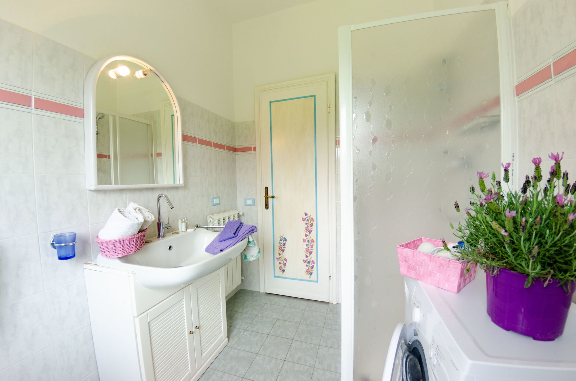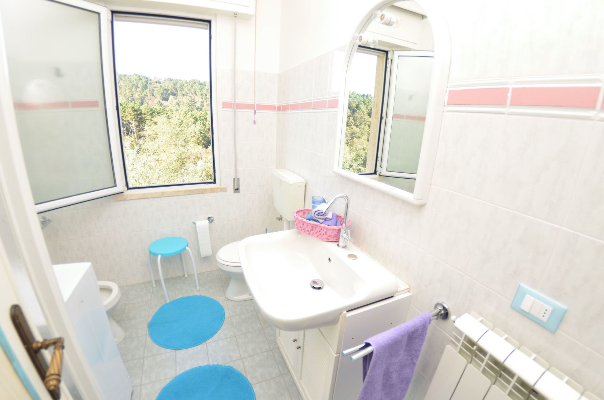 Badeværelse: vask, wc, bidet, bruser, vaskemaskine.