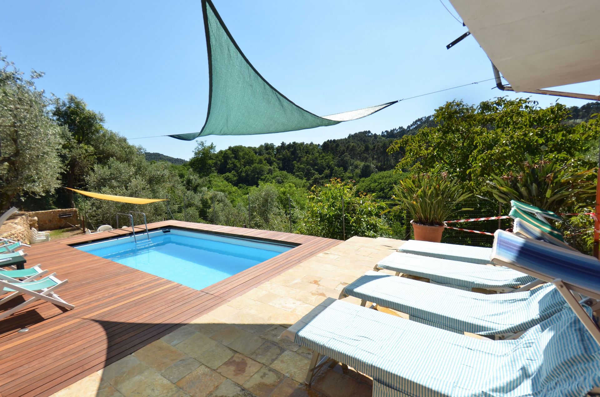 Ved ankomst vil I blive modtaget af ejeren eller repræsentanten og I vil finde en fin ren og velholdt ejendom med udsigt over bjergene perfekt til en afslappende ferie i Toscana. Til jeres store glæde vil I finde en privat pool, hvor I kan køle ned, mens I nyder en dejlig kold drik efter en travl dag med museumsbesøg. Udendørs vil I også finde legeplads og grill. Der er et køkken inkluderet kaffemaskine, komfur og køleskab, samt, , samt masser af service og bestik til op til ni personer. Hvis I foretrækker at spise 'al fresco', er der en fuldt møbleret terrasse, hvor I kan nyde vejret, mens I spiser udendørs.