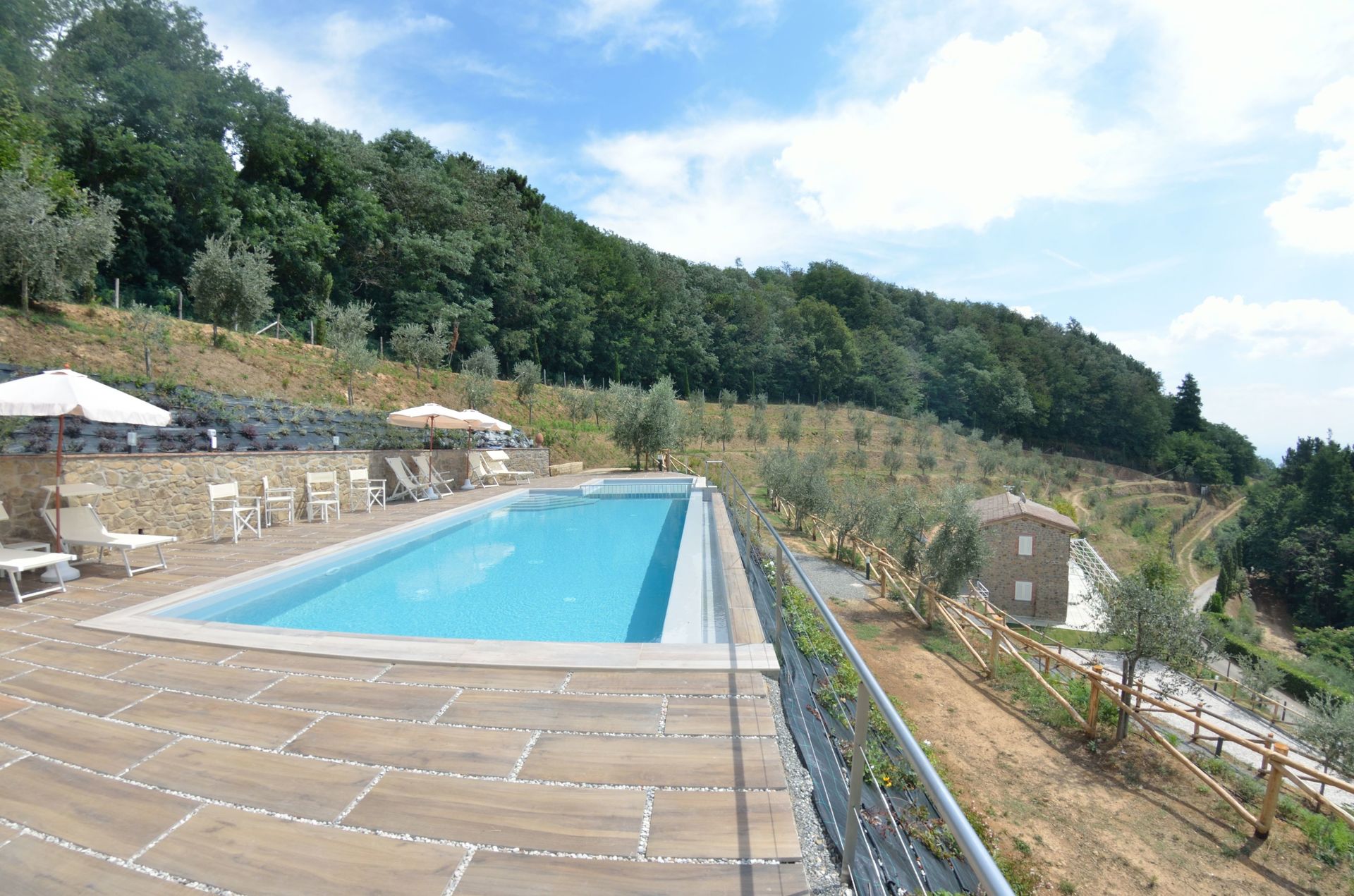 Ved ankomst vil I møde en flot ren velholdt ejendom med udsigt over bakkerne ideel til fredelig ferie i Toscana. Efter en hektisk dag med sightseeing, er det dejligt at nyde lidt tid med venner og familie ved kanten af poolen med et glas vin - det er en perfekt måde at slappe af på sidst på dagen. Udendørs vil I finde barbecue og legeplads. At nyde et måltid med venner og familie er en kæmpe del af den toskanske kultur. Benyt køkkenet til madlavning med lokale produkter, når du er på ferie. Køkkenet indeholder kaffemaskine, komfur og køleskab, samt, masser af service og bestik til op til otte personer. Spis 'al fresco' som en ægte toskaner. Den fuldt møblerede veranda er det ideele sted for at nyde sit måltid, familien og det fine toskanske vejr.