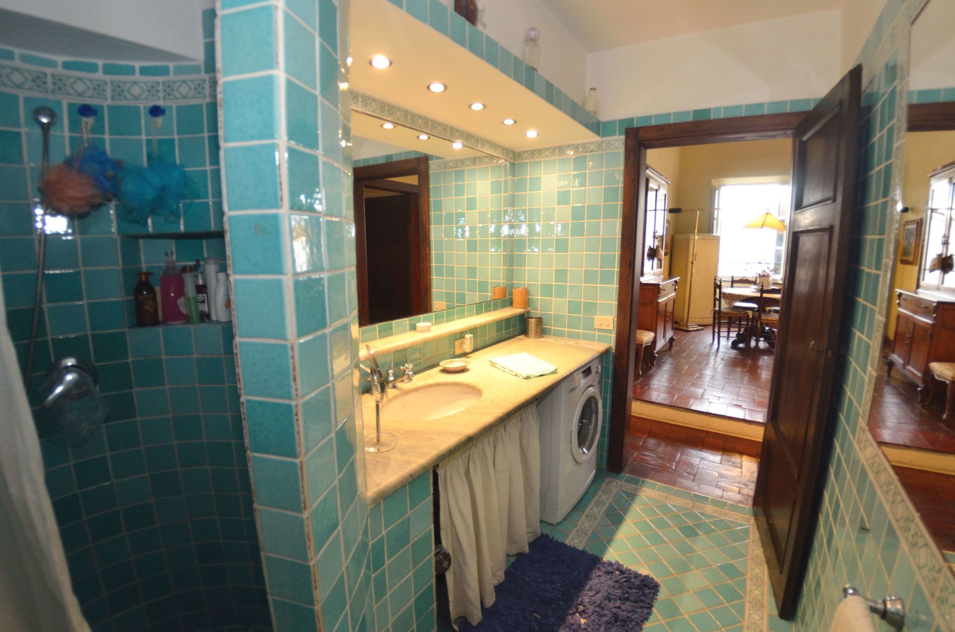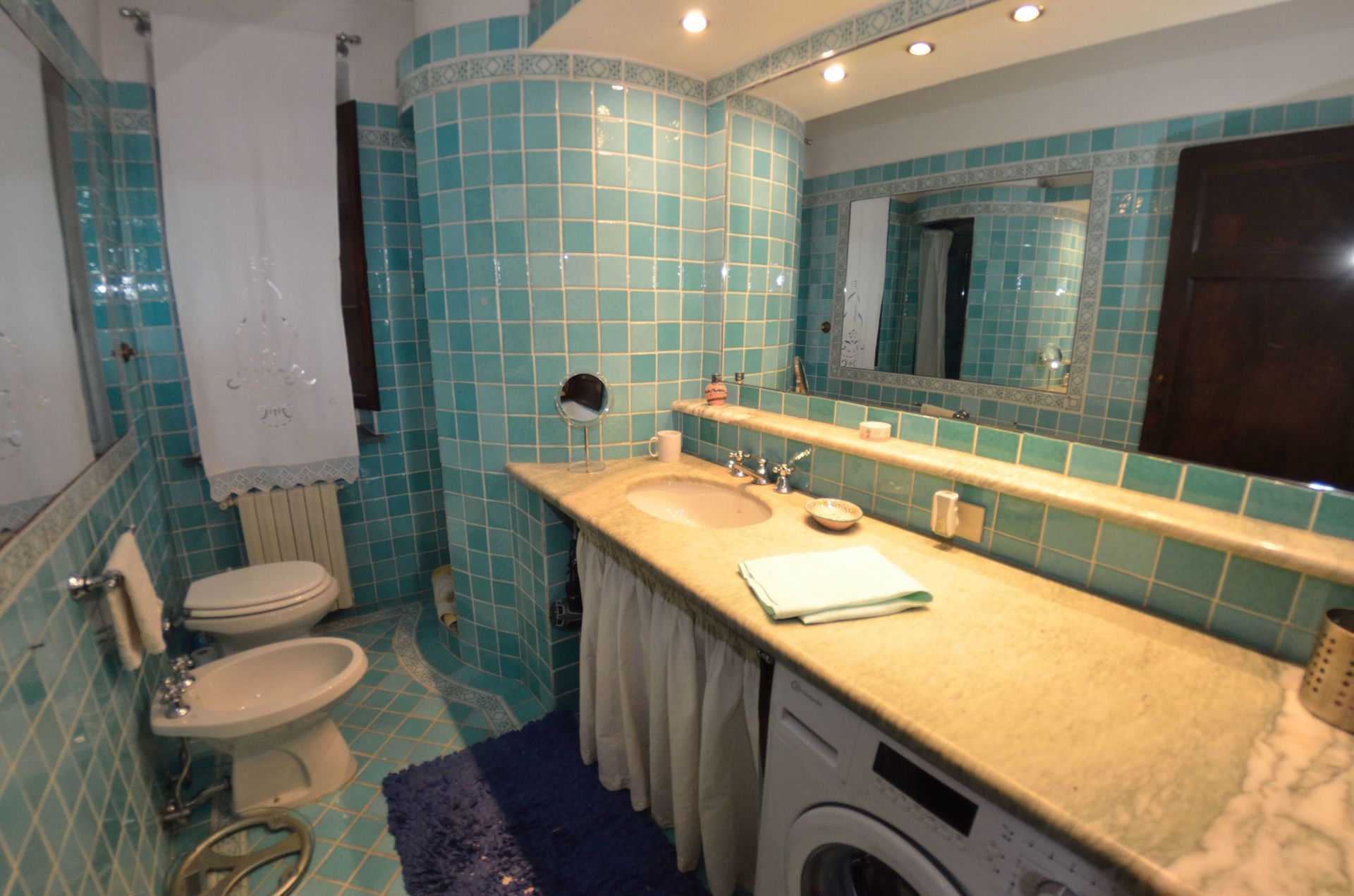Badeværelse: vask, wc, bidet, bruser, vaskemaskine.