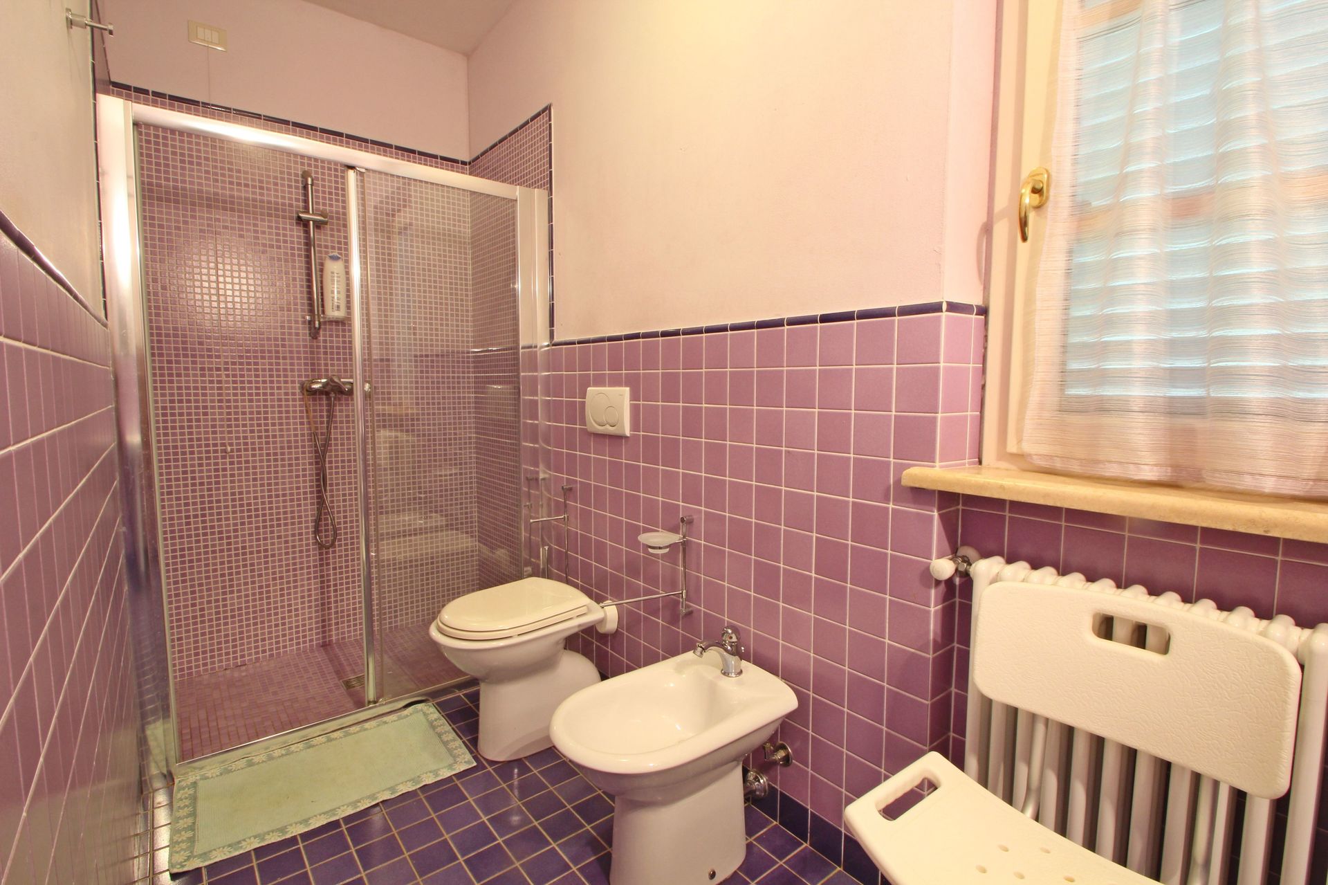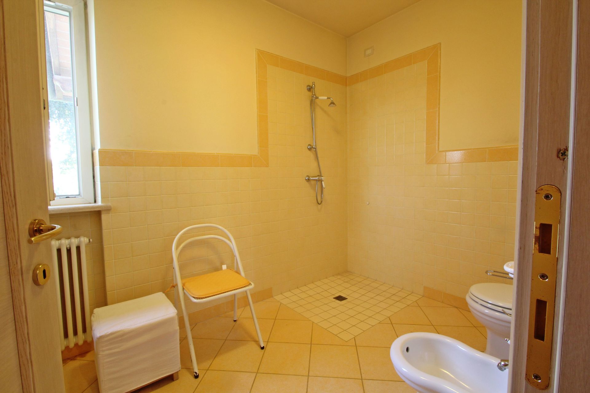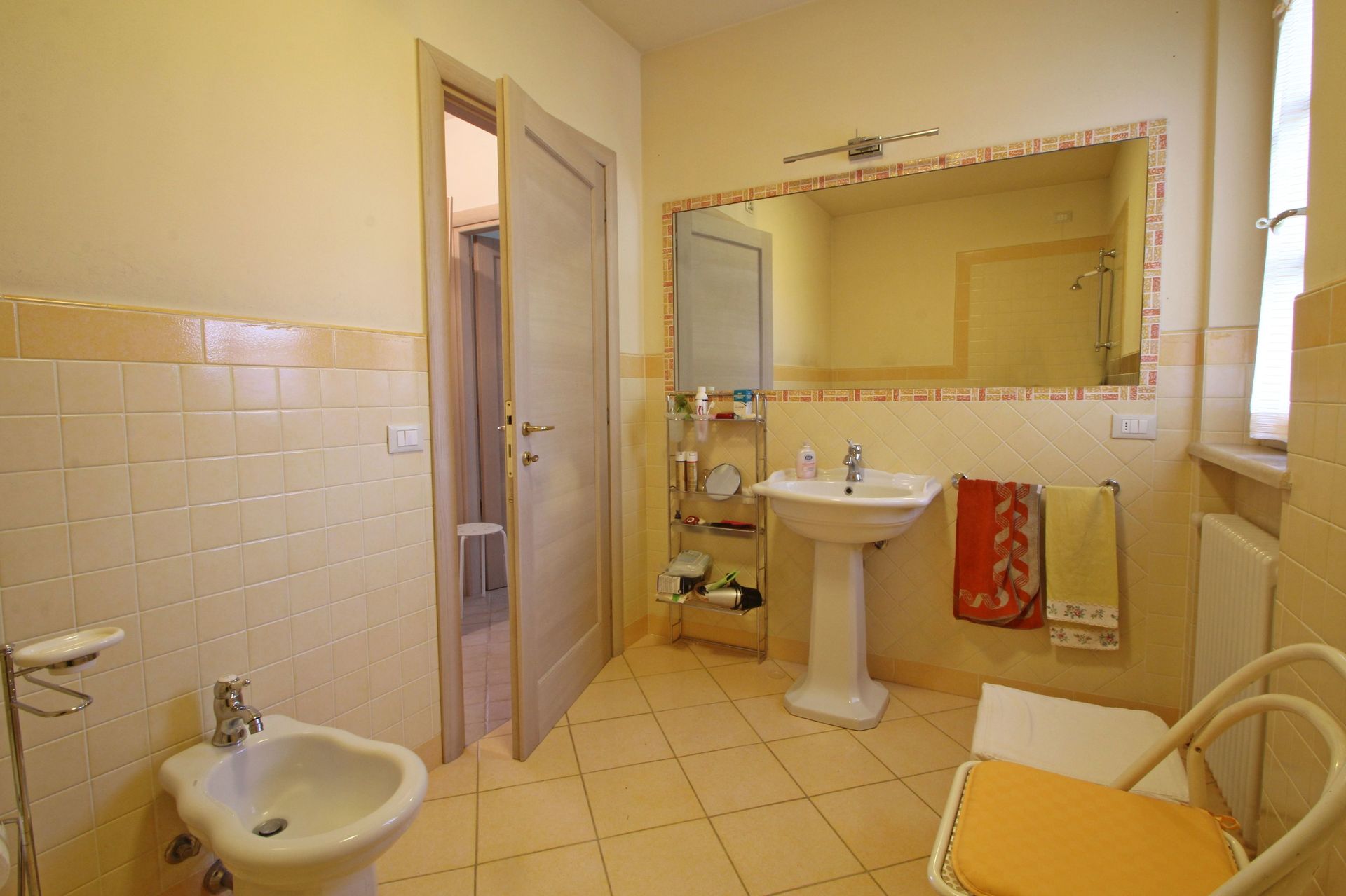 Bathroom: basin, bidet, shower, WC, mosquito net.