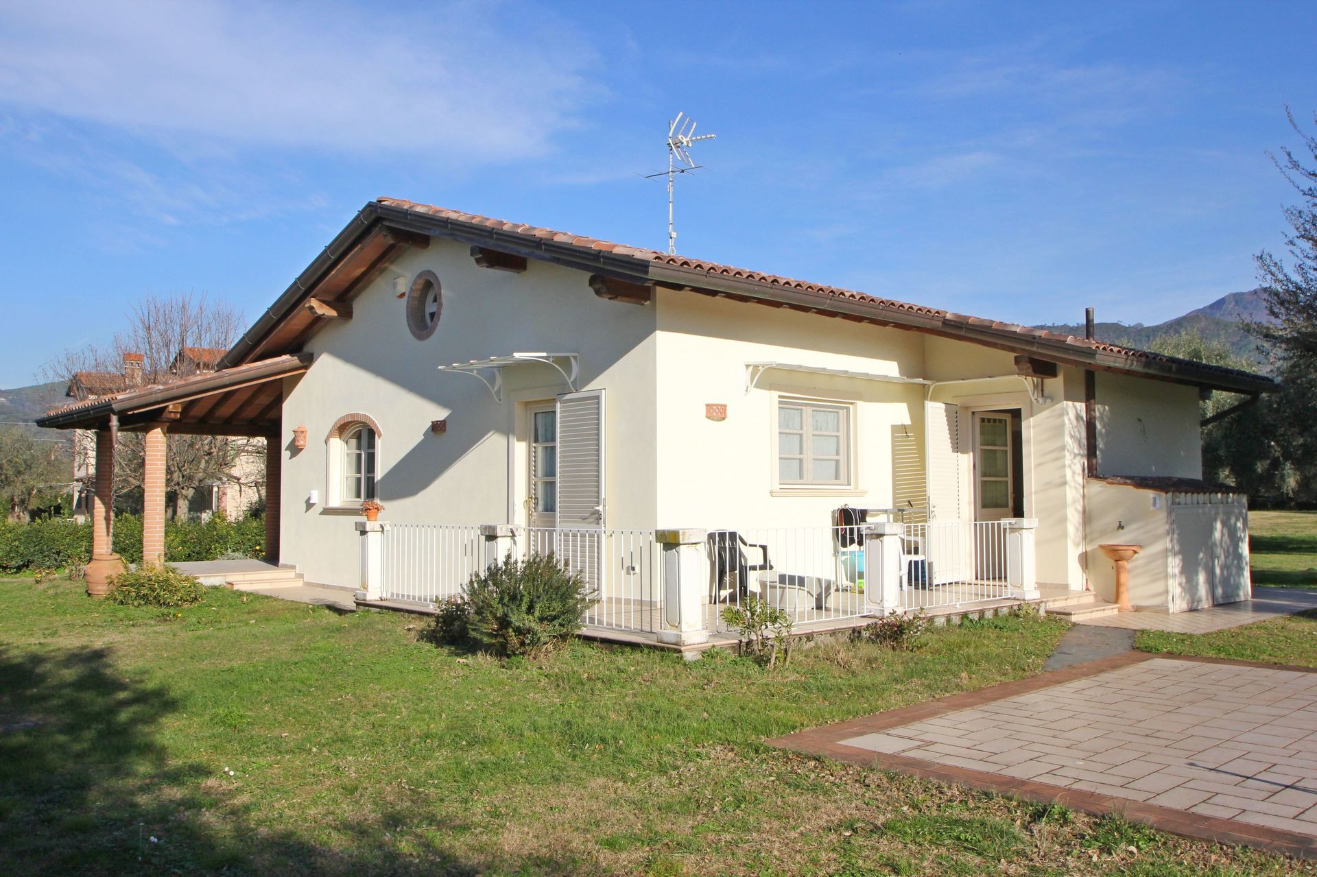 The holiday home in Querceta is located on the same property as the owners who live in the neighboring house. You will have a private automatic gate which leads you to the house where you can park your car. The garden, on 4 sides, is private but not fenced. Behind the house there is a small vegetable garden managed by the owners.