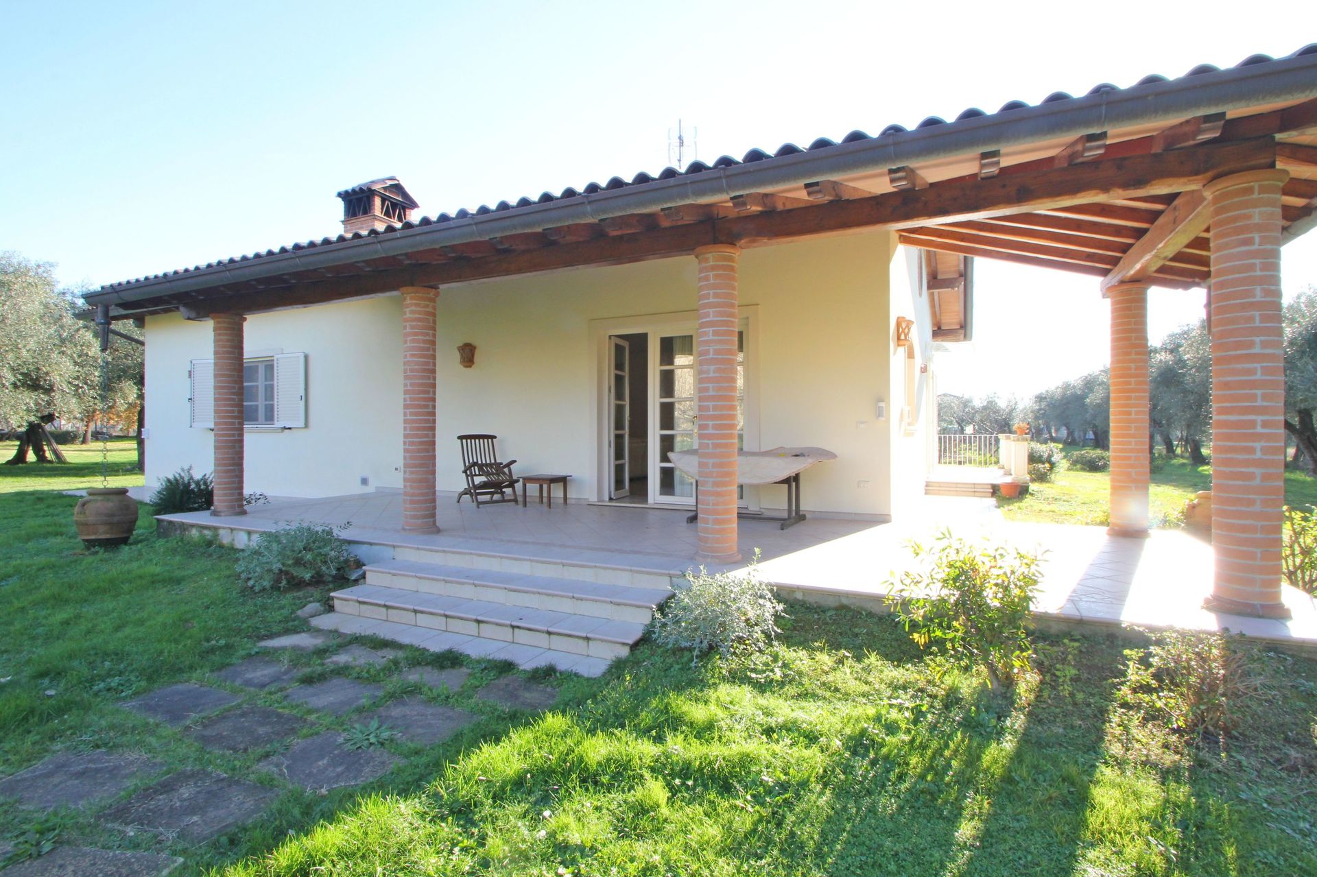The exterior is very nice and furnished with table, chairs, deck chairs and umbrella to spend beautiful summer days outdoors.