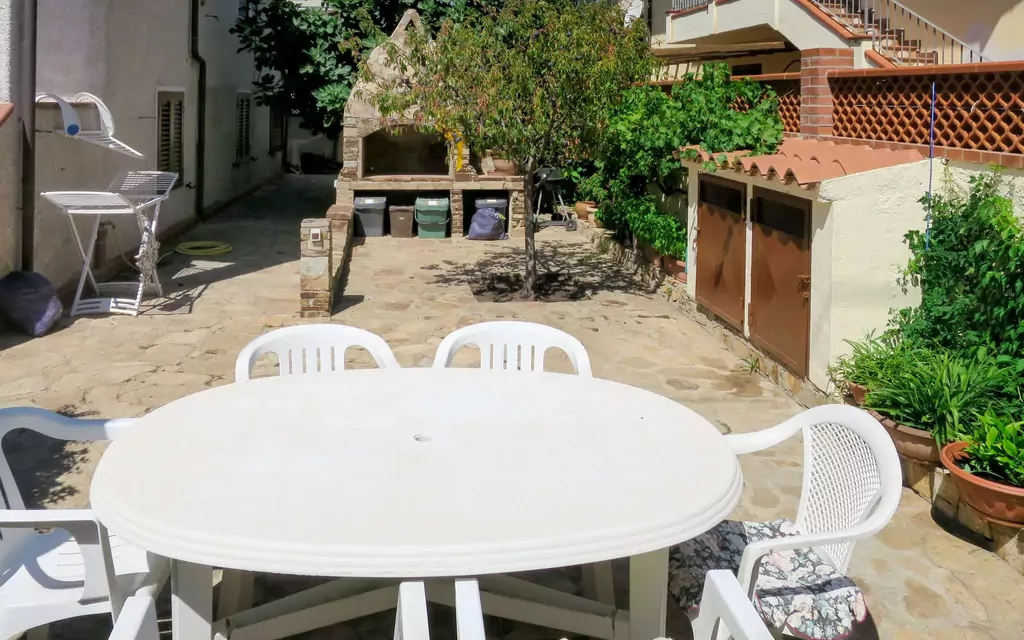 "Lia", 4-værelse-halvt dobbelthus 110 m2, på forhøjet stueetage. Enkelt og hensigtsmæssig indrettet: stue/spisestue med spisebord, TV og ventilator. 1 dobbeltværelse med brus/bidet/WC og klimaanlæg. 1 dobbeltværelse med klimaanlæg. 1 værelse med 3 senge og klimaanlæg. Køkken (4 gasblus, mikroovn) med spisebord. Brus/bidet/WC. Varmluftsopvarming. Opvarmning er ikke tilgængelig i alle værelser. Have. Grill, siddeplads. Til benyttelse: vaskemaskine, barneseng. Bemærk venligst: ikke-ryger hus. Brandalarm, brandslukker. IT091073C2000T1592