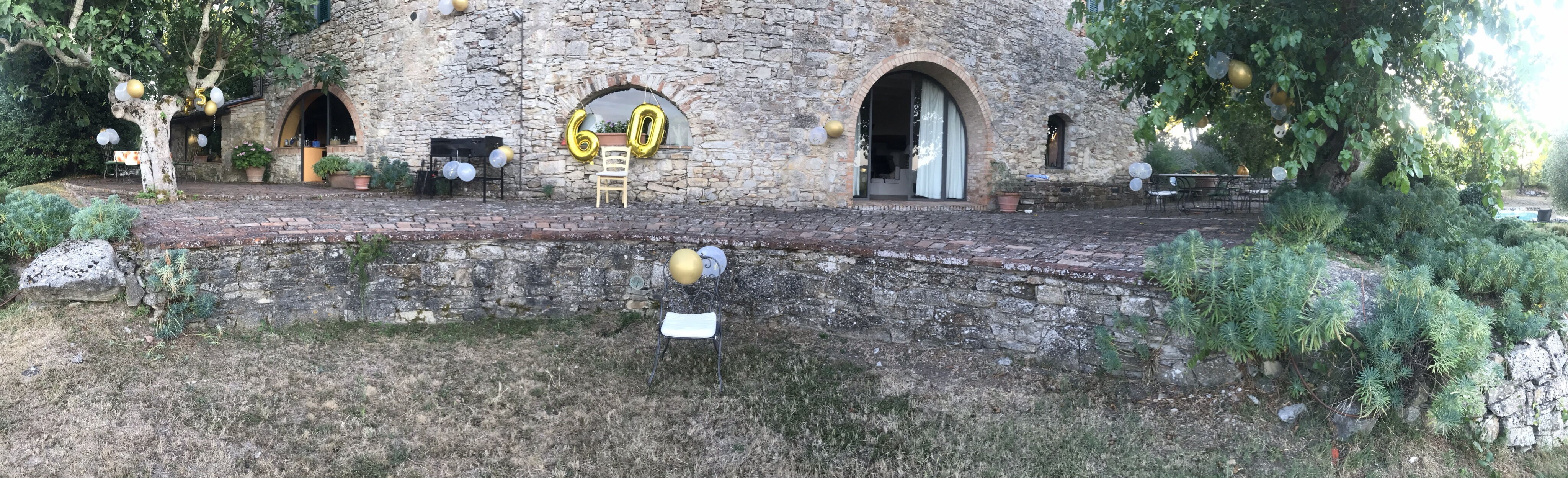 Fra denne afsondrede position er udsigten helt fantastisk, med alle vinduerne, der indrammer billeder af det dejlige Chianti-landskab. Der fører en vej til den smukke swimmingpool med overløbseffekt, som er beliggende med en særdeles panoramisk udsigt. Poolen har en stor lavvandet side for børn. På bagsiden af ejendommen er der en ombygget lade, hvor husholdersken bor.