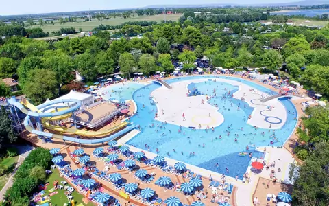 Grado: Meget stor, børnevenligt ferieanlæg "Camping Europa 4*". 5 km fra bymidten af Grado, 50 km fra centrum af Trieste, 130 km fra bymidten af Venezia, 20 m fra havet, direkte adgang til stranden. Til medbenyttelse: grund 22 ha (indhegnet) med planter og træer, pool (1'500 m2, Sæsonbestemt tilgængelighed: 23.Apr. - 27.Sep.). Toilet i poolområdet, børnepool, rutschebane, udendørs brus, tennis (1 x hartplads), belyset (ekstra), bordtennis, strandvolleyboll, legeplads. I anlægget: restaurant, bar, bistro, adgang til internet, trådløs LAN [WLAN], indkøbsmulighed, kiosk, vaskemaskine, tørretumbler (til medbenyttelse, ekstra). Busstoppested 500 m, banegård "Airport Station Trieste" 20 km. Nærliggende attraktioner: Castello di Duino 25 km, Riserva Naturale della Foce dell'Isonzo 14 km, Aquileia 16 km, Castello Miramare 40 km, Redipuglia 20 km, Collio 35 km. Bemærk venligst: animation. Velegnet for familier. Bemærk venligst: Fra 29.09.2025 - 12.10.2025 vil kun én restaurant være åben. Alle andre faciliteter forbliver lukkede.