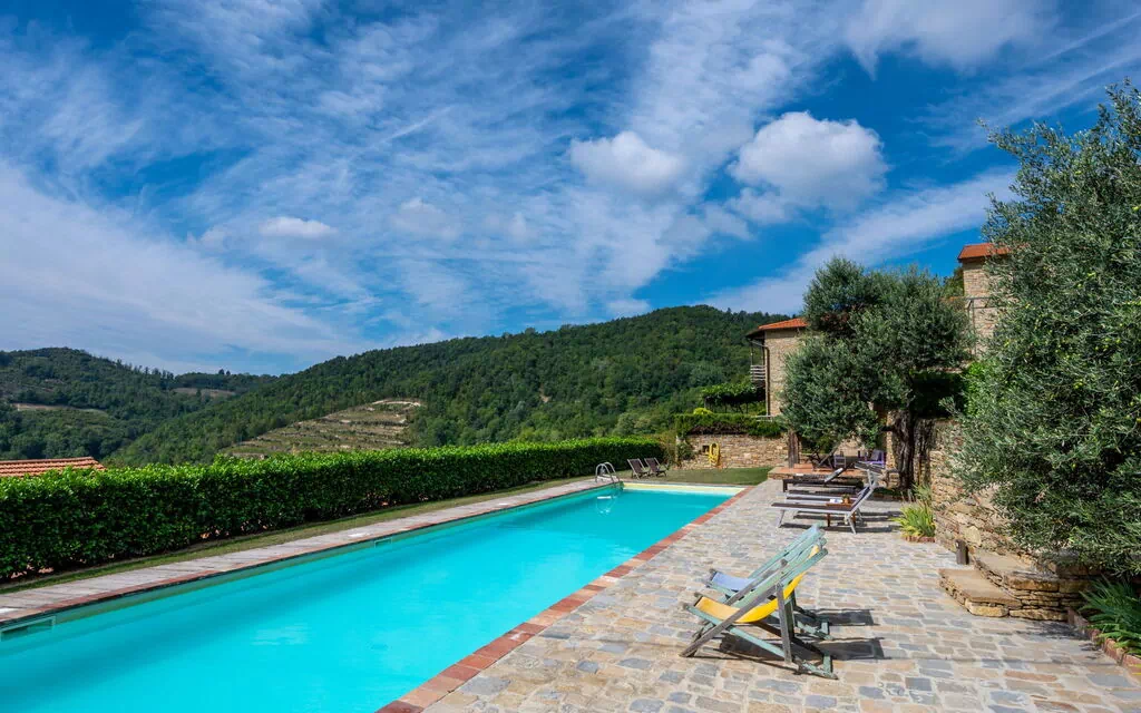 Rustikt hus på landet "Cascina Barroero", 650 meter over havets overflade, på 3 etager. 5 lejligheder i bygningen. 5 km fra bymidten af Cortemilia, 30 km fra centrum af Alba, 35 km fra bymidten af Acqui Terme, 55 km fra havet, i det grønne, i skoven. Til medbenyttelse: grund 10'000 m2 med græsplæne og træer, græsmark, liggeplæne, pool (19 x 4 m, 120 - 180 cm dyb, Sæsonbestemt tilgængelighed: 01.Maj. - 31.Okt.). Udendørs brus, pergola, havemøbler. I anlægget: restaurant. 4 km lang, meget smal tilkørsel. Parkeringsplads ved huset på grunden. E-ladestation. Indkøbsforretning 5 km, supermarked 5 km, busstoppested 26 km, banegård "Alba" 30 km. Salg af lokale gårdprodukter. Bemærk venligst: ejer bor på sammen grund. Dyr i området.