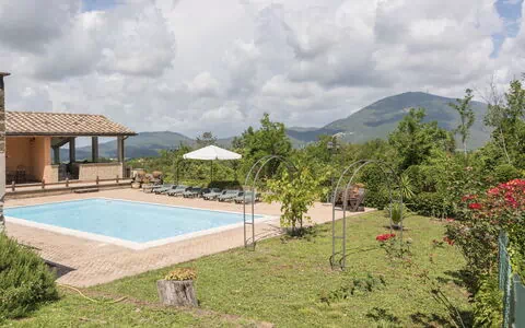 Hus på landet "Colleflaviano". 3 km fra bymidten af Casperia, 8 km fra centrum af Torri in Sabina, 63 km fra bymidten af Roma. Til alene benyttelse: grund 800 m2 med græsplane, pool (10 x 5 m, Sæsonbestemt tilgængelighed: 15.Apr. - 15.Okt.). Poolhus med bruser, bordtennis. I huset: bordfodbold. Parkeringsplads (for 3 biler) på grunden. Indkøbsforretning 1 km, supermarked 3 km, busstoppested 1.2 km, banegård "Poggio Mirteto" 14 km. Nærliggende attraktioner: Cascata delle Marmore 39 km, Cammino di San Francesco 20 km, Fonte Colombo 29 km, Abbazia di Farfa 29 km, Tivoli 45 km, Monte Terminillo 52 km. Kendte skiområder nås nemt: Lago del Turano 62 km. Bemærk venligst: bil anbefales. Babyudstyr. Unge grupper kun på forespørgsel. Salg af lokale gårdprodukter. Ejer bor på sammen grund. Ejeren har en hund.