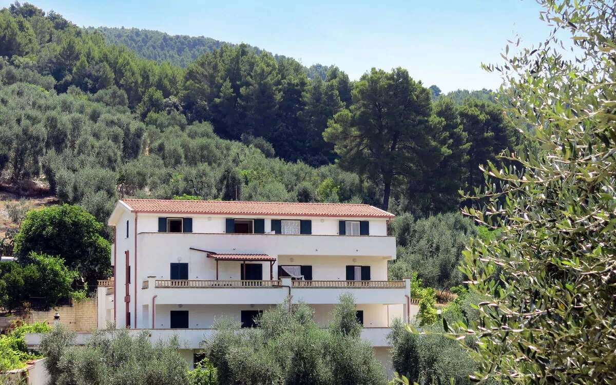 Residens "Villa Tavaglione", omgivet af træer og marker. 10 lejligheder i bygningen. 3.5 km fra bymidten af Peschici, 15 km fra centrum af Rodi Garganico, 23 km fra bymidten af Vieste, rolig beliggenhed, 3 km fra havet, i det grønne. Til medbenyttelse: grund 80'000 m2, have i forskellige niveauer, frugthave. Legeplads. Skift af linned (yderlige ekstras). Udskiftning af håndklæder (yderlige ekstras). Parkeringsplads på grunden. Supermarked 3.5 km, restaurant 3.5 km, busstoppested 6 km, banegård "Peschici Calenella" 6 km, sandstrand 3 km. Bemærk venligst: bil anbefales. Salg af lokale gårdprodukter.